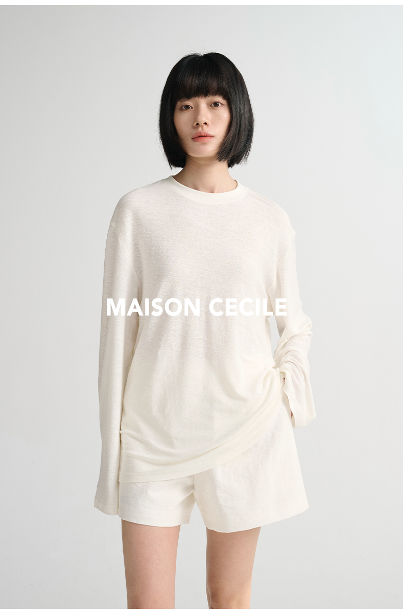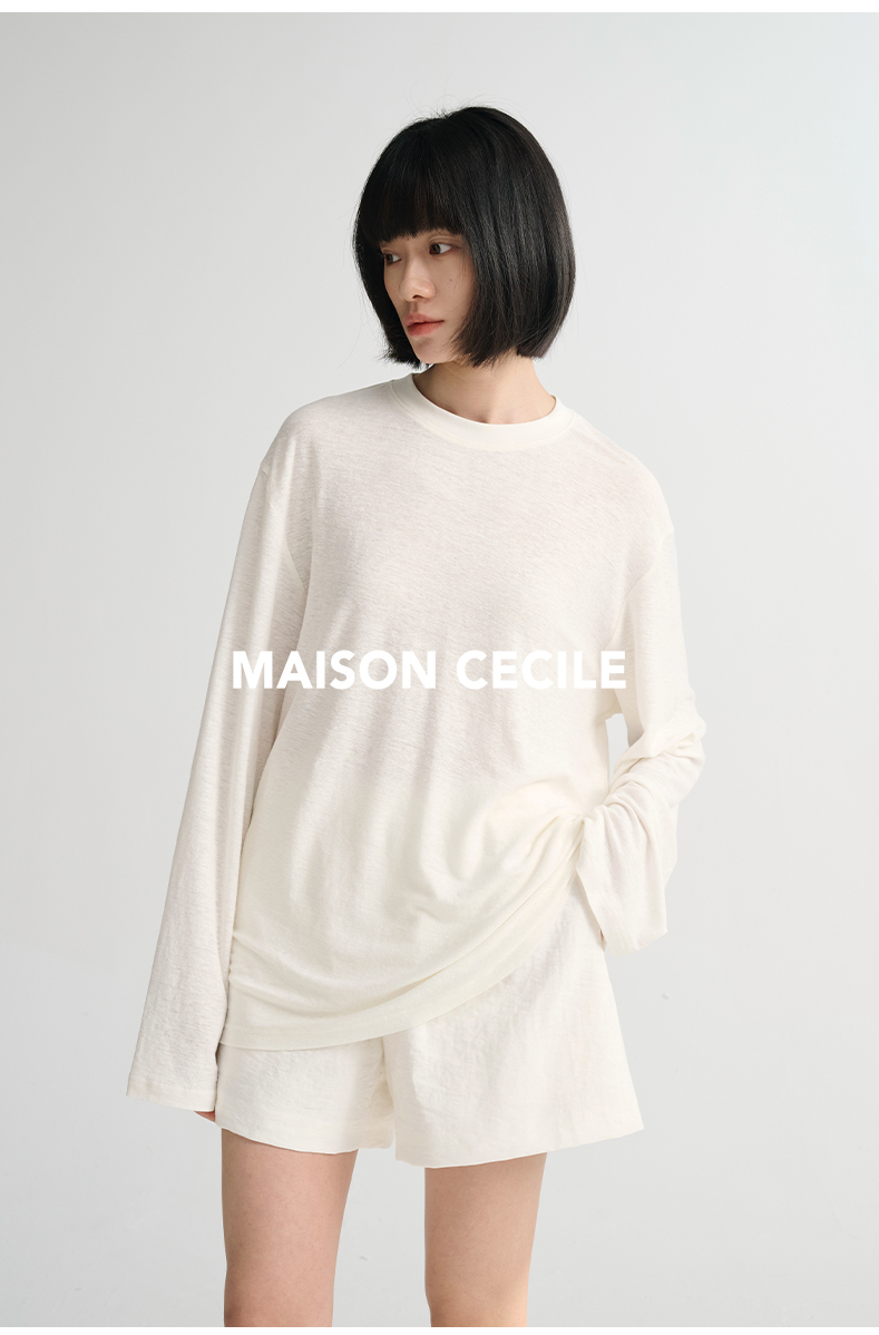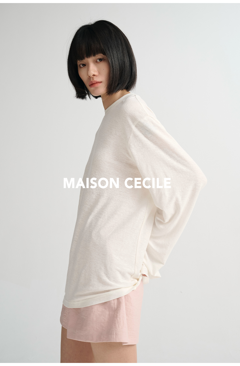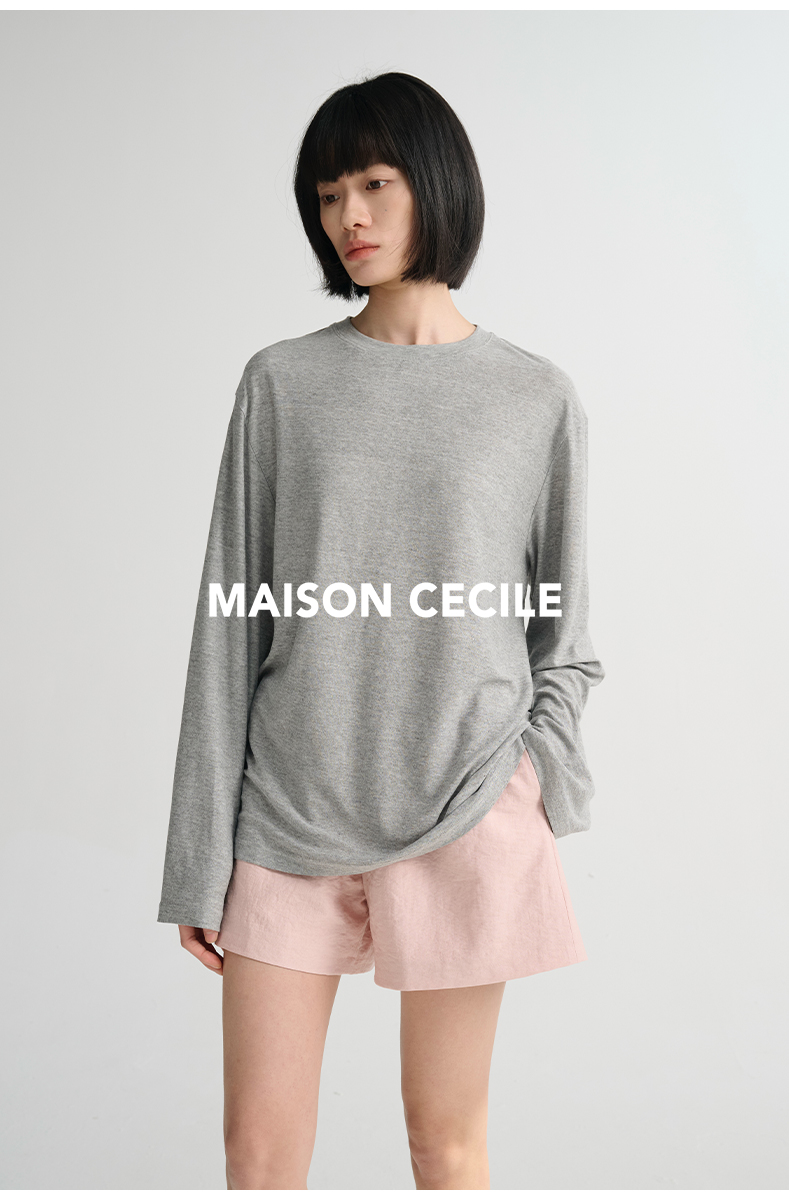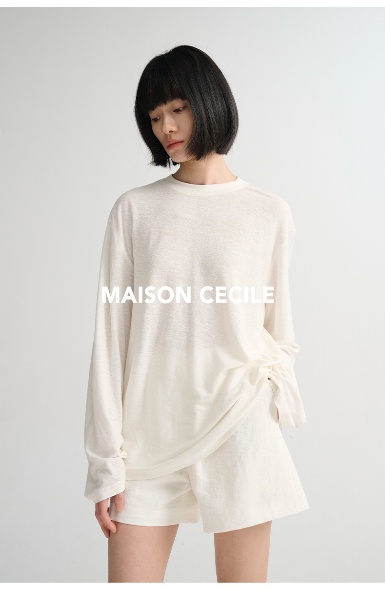 MAISON CECILE必入/真丝羊毛棉经典三色合身显比例好版型T恤上衣