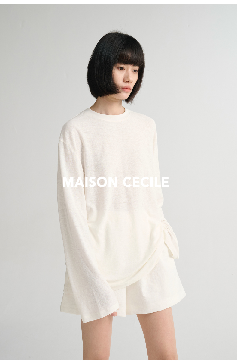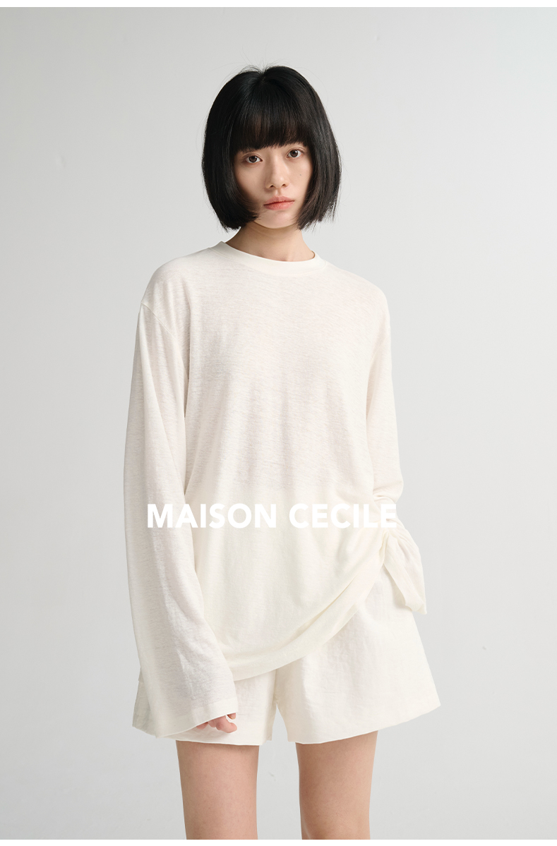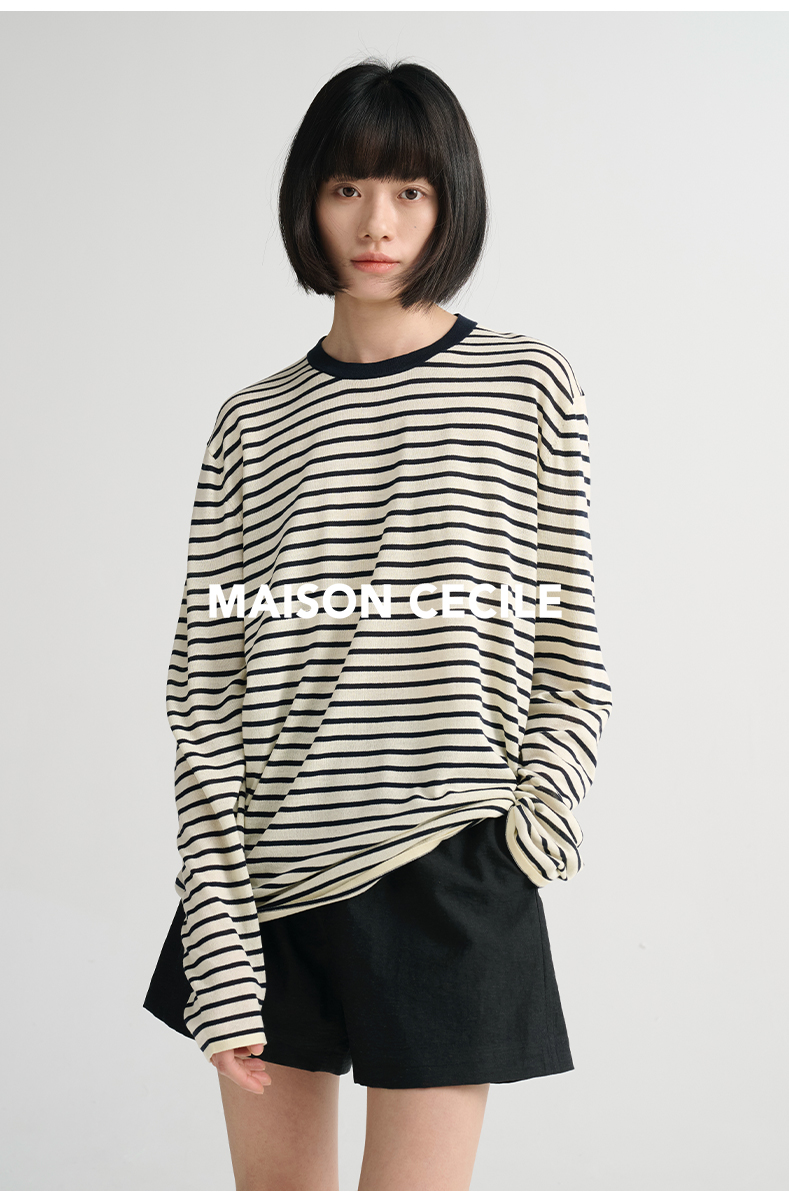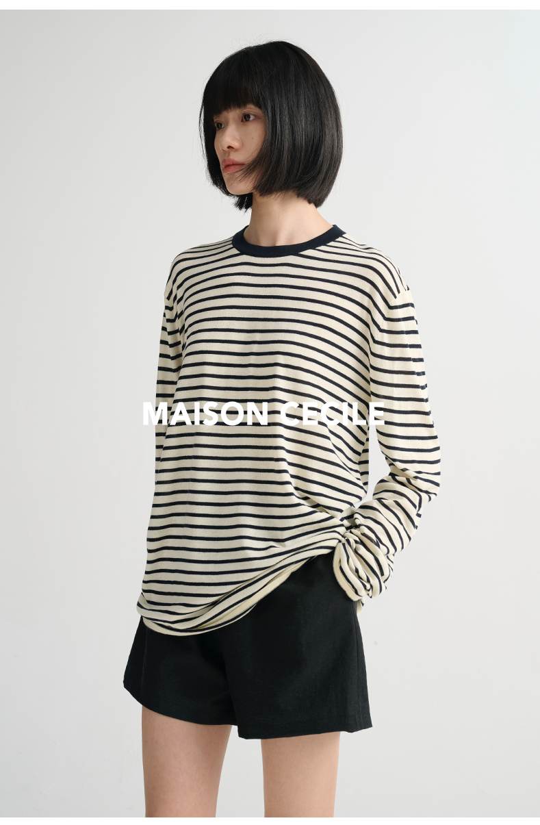 MAISON CECILE必入/真丝羊毛棉经典三色合身显比例好版型T恤上衣