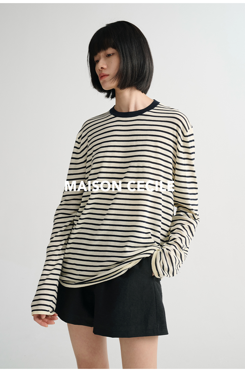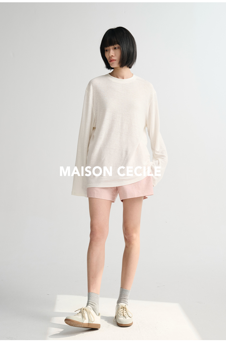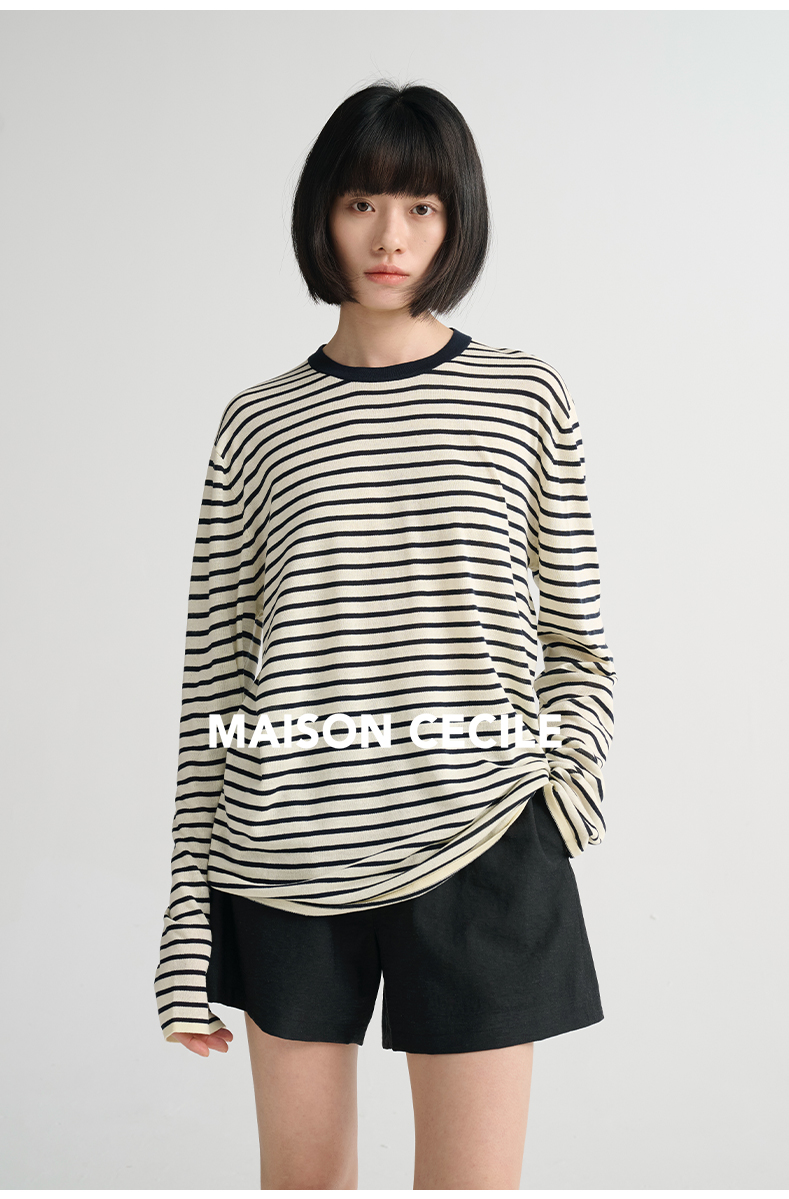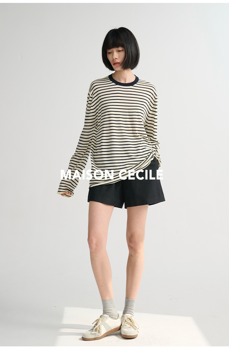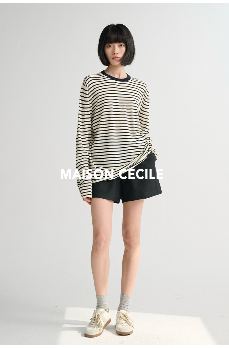 MAISON CECILE必入/真丝羊毛棉经典三色合身显比例好版型T恤上衣