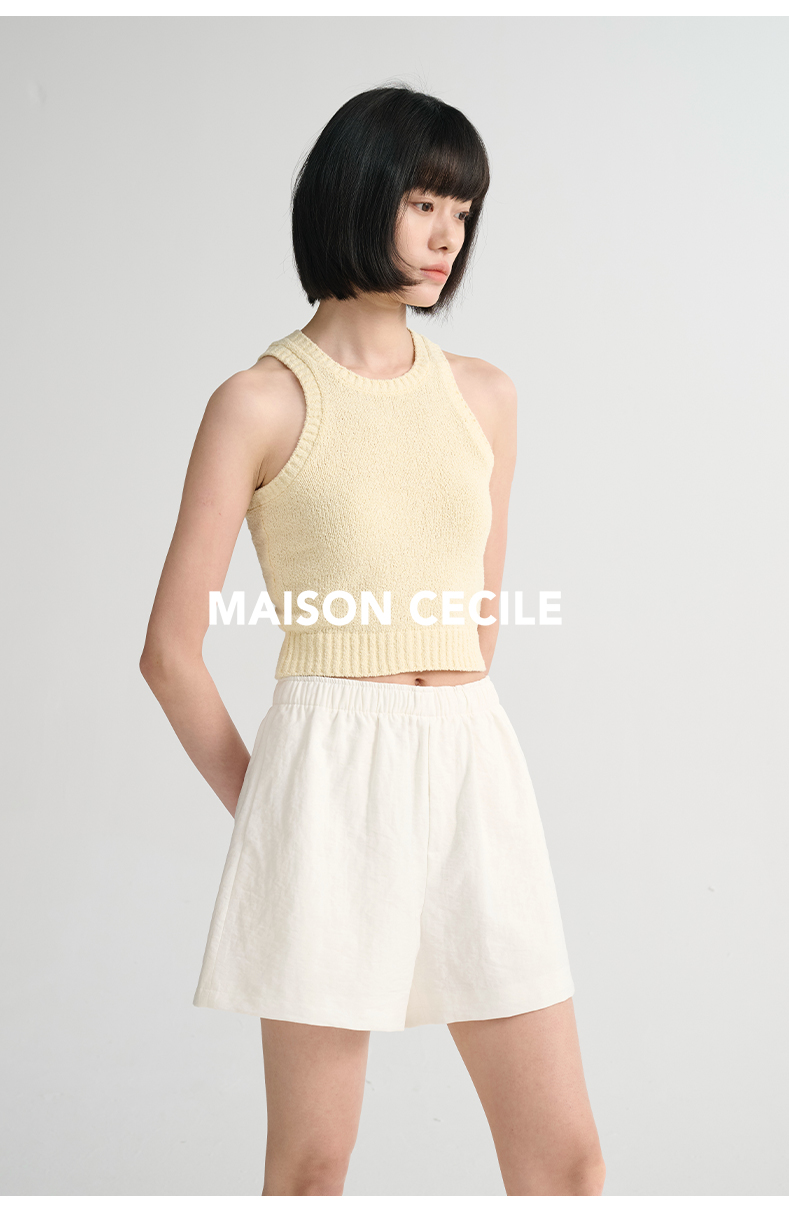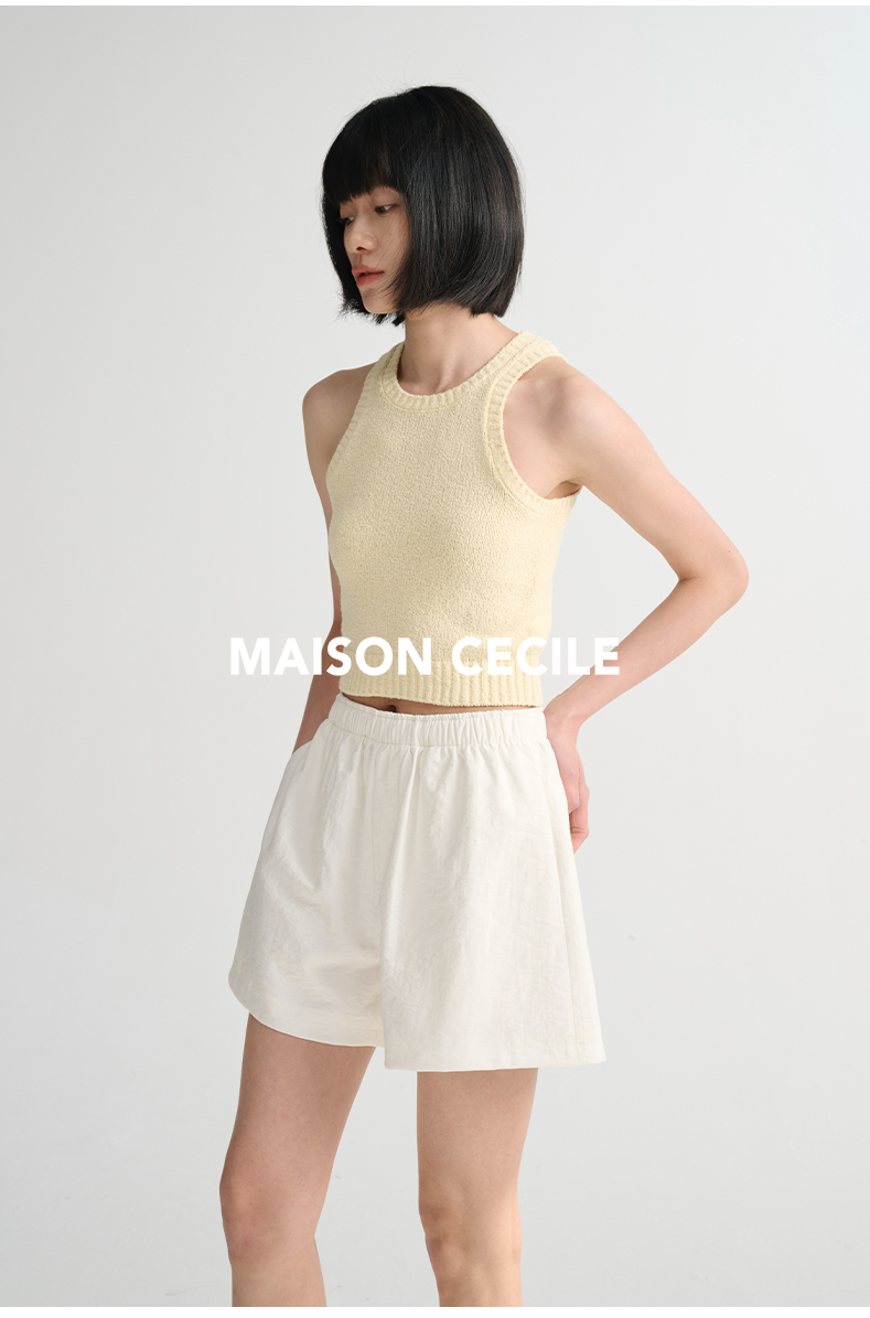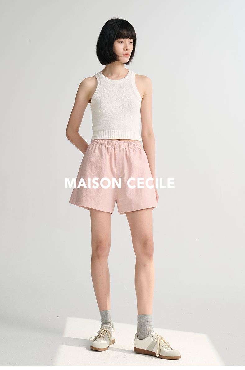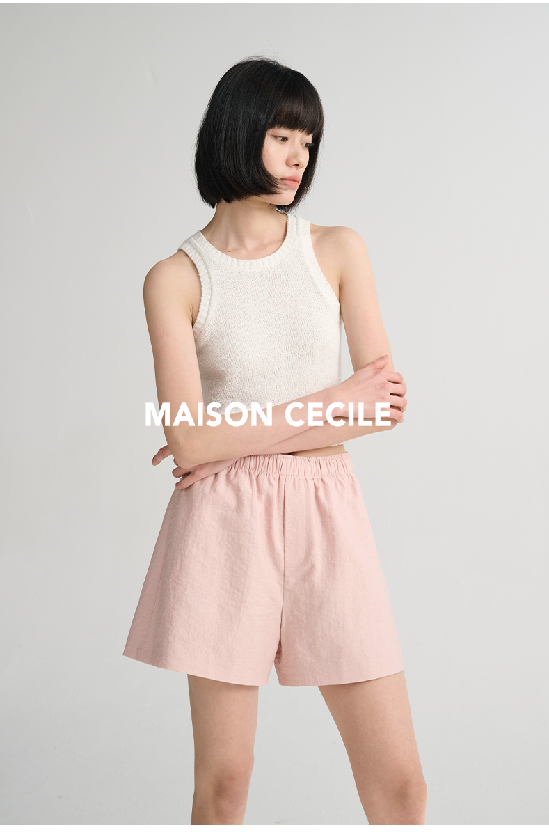MAISON CECILE 三色/夏日亚麻宽松日常百搭松紧腰短裤