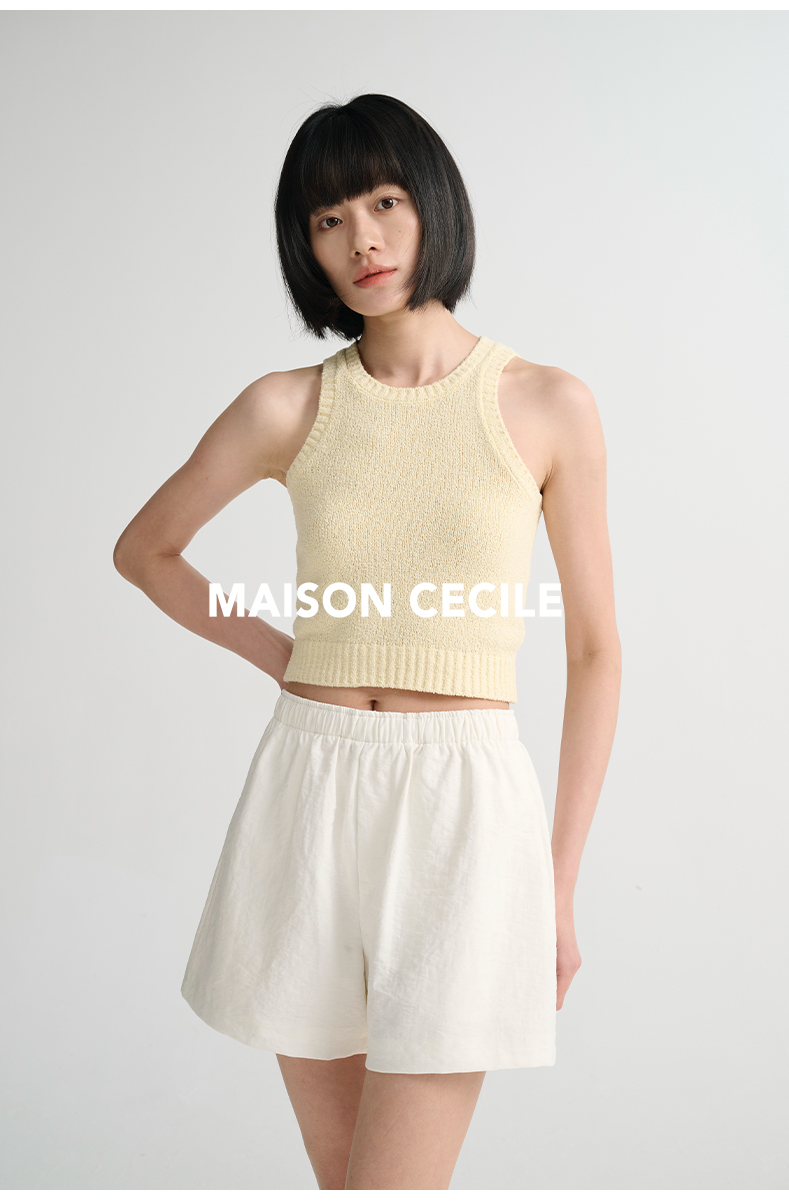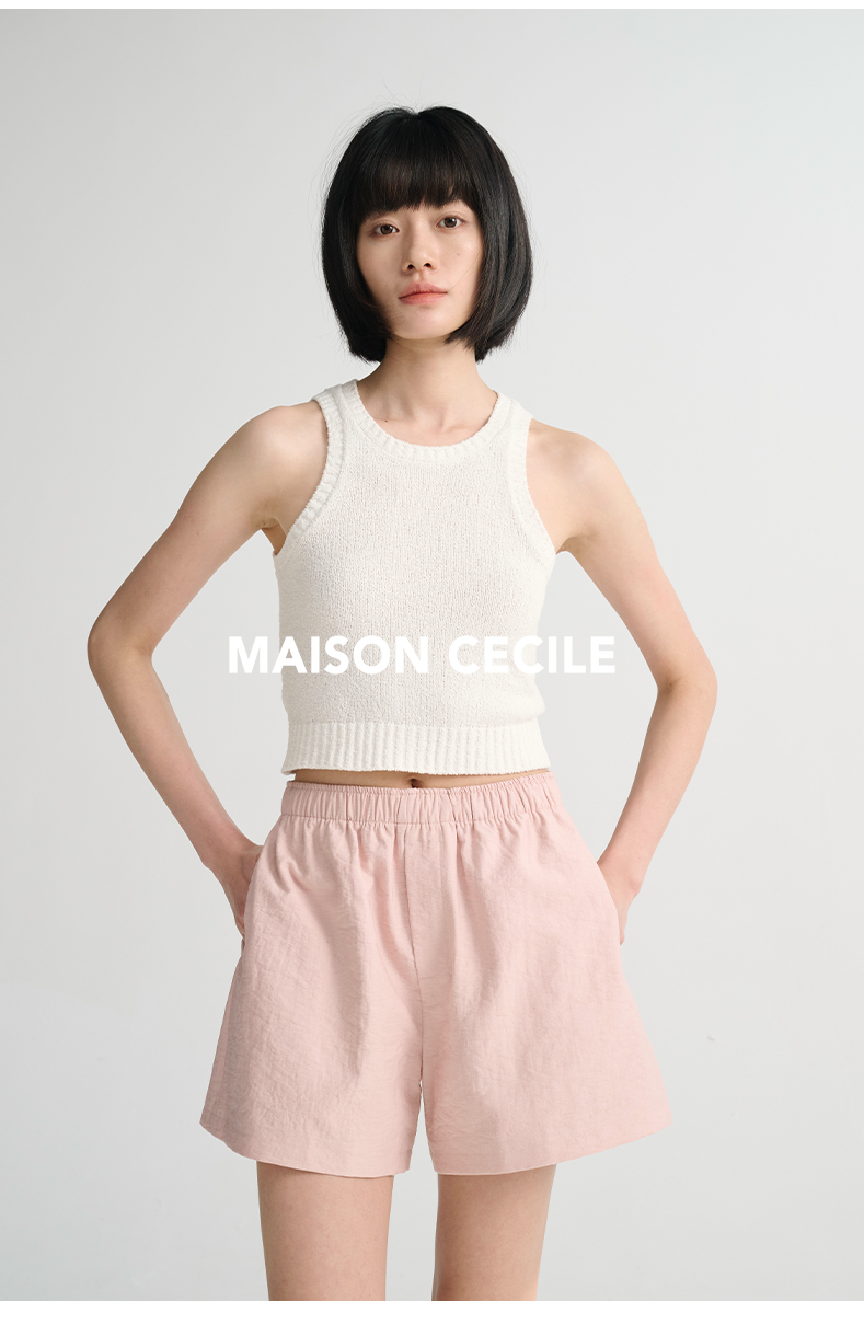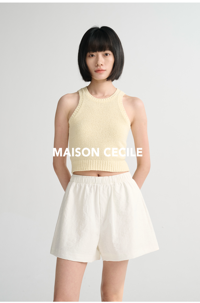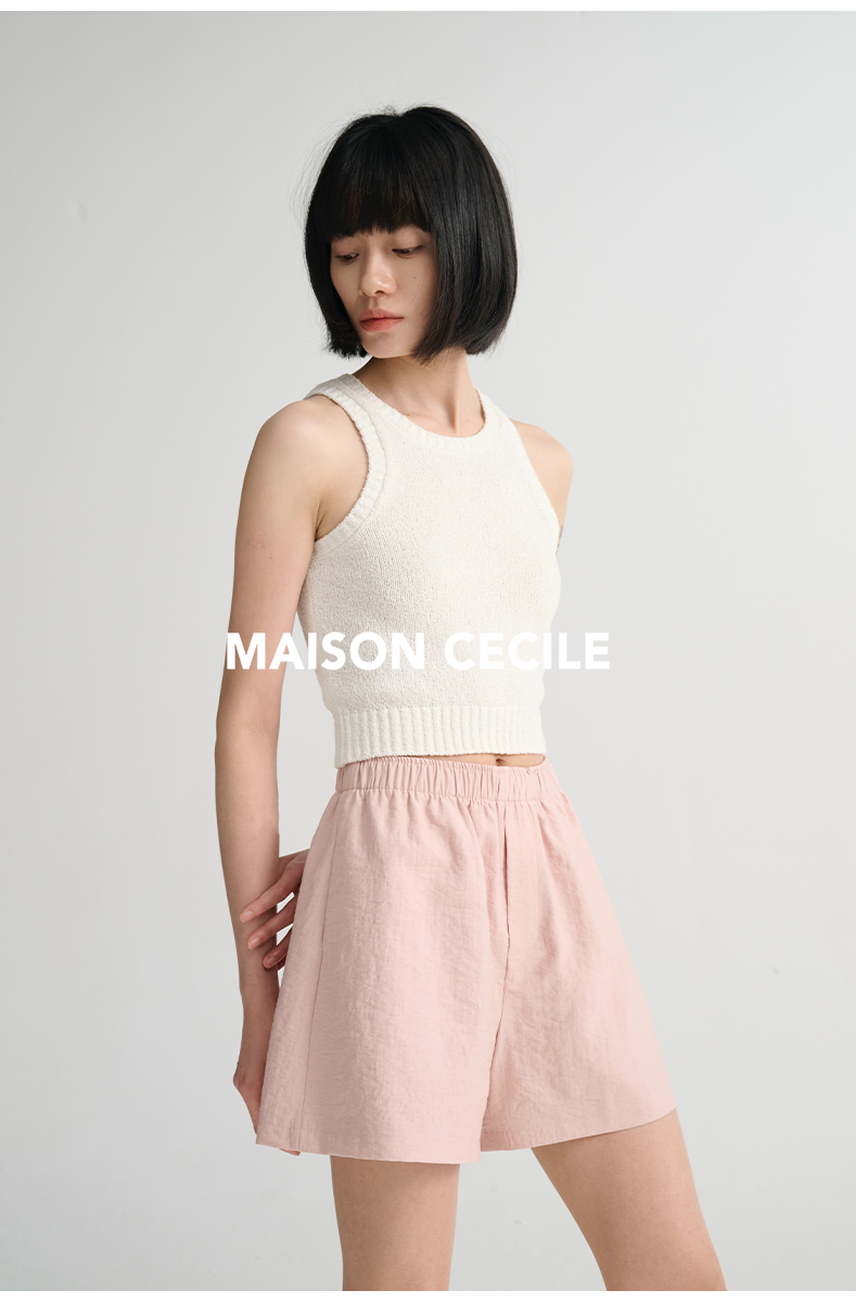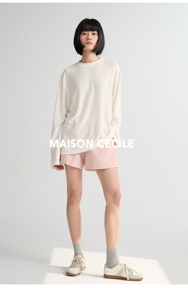 MAISON CECILE 三色/夏日亚麻宽松日常百搭松紧腰短裤