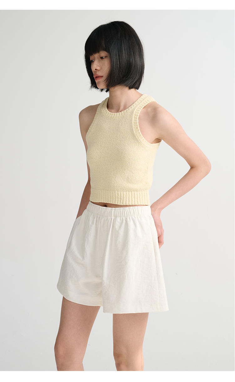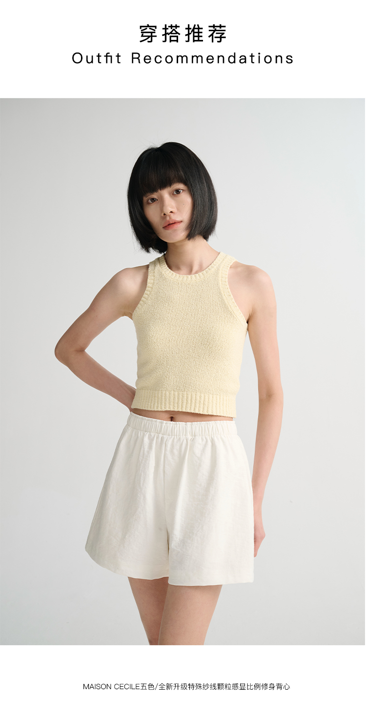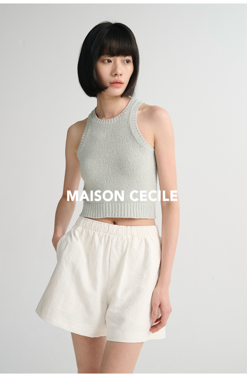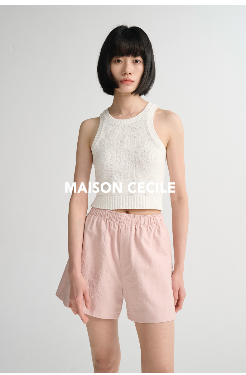 MAISON CECILE 三色/夏日亚麻宽松日常百搭松紧腰短裤