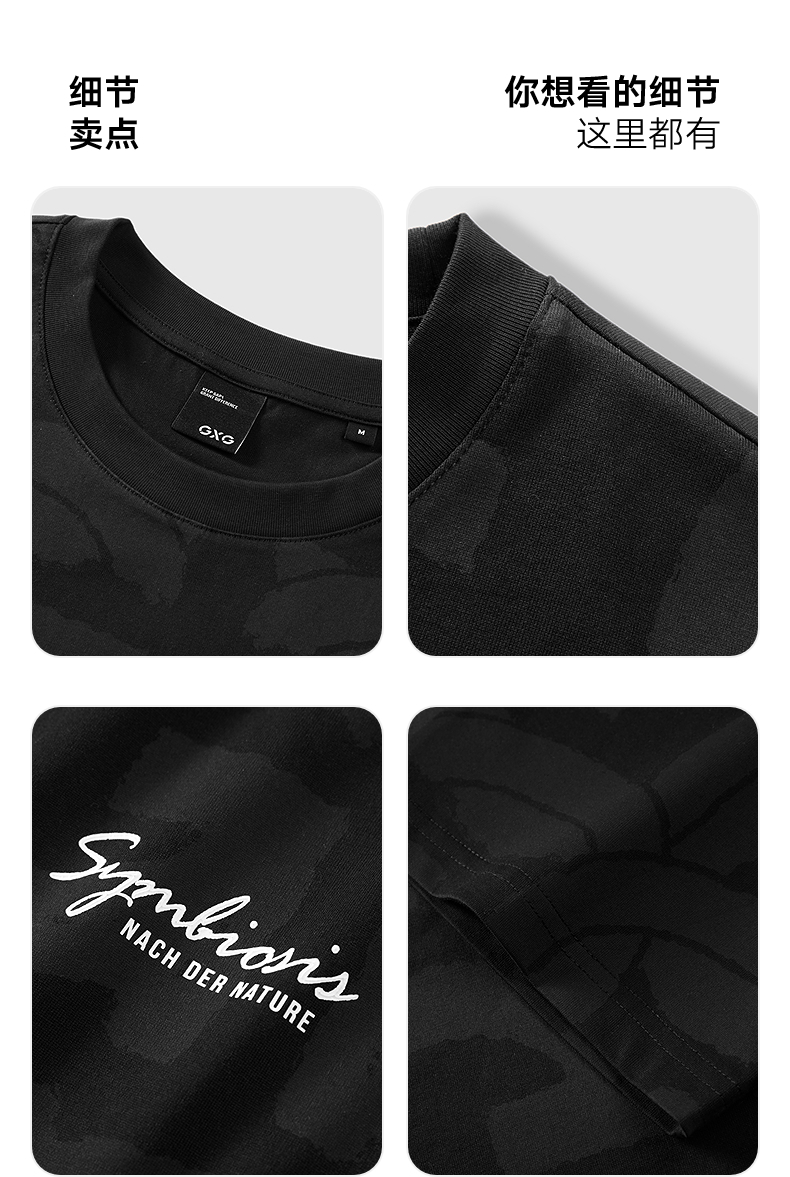 GXG男装 圆领T恤暗满印上衣短袖针织 2025夏季热卖