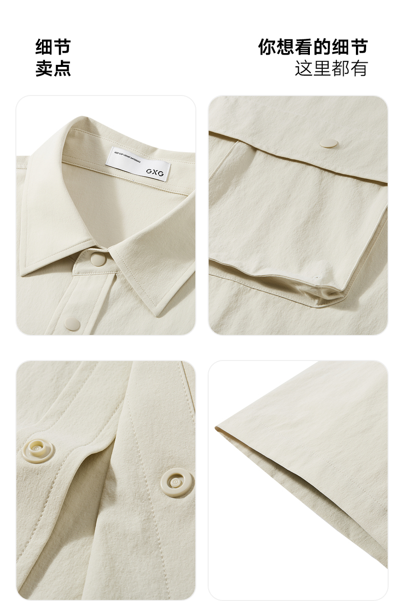 GXG男装 双色口袋设计简约休闲短袖衬衫男24年秋季热卖G24X233033