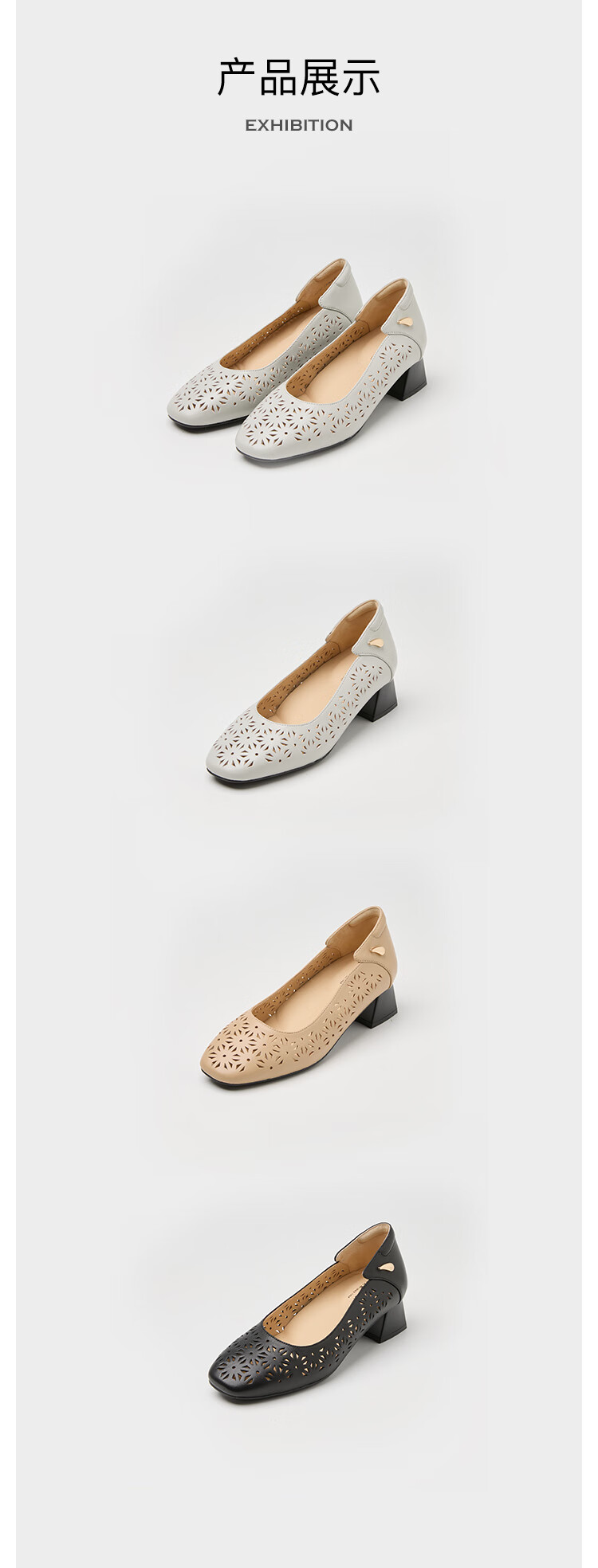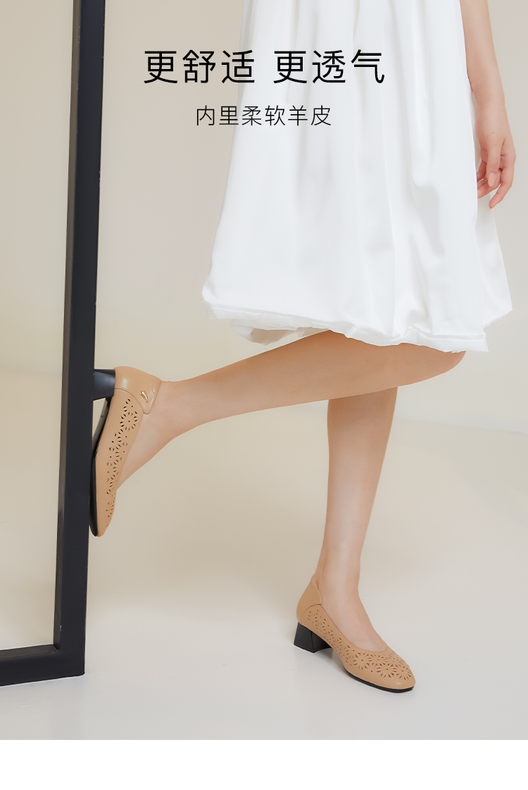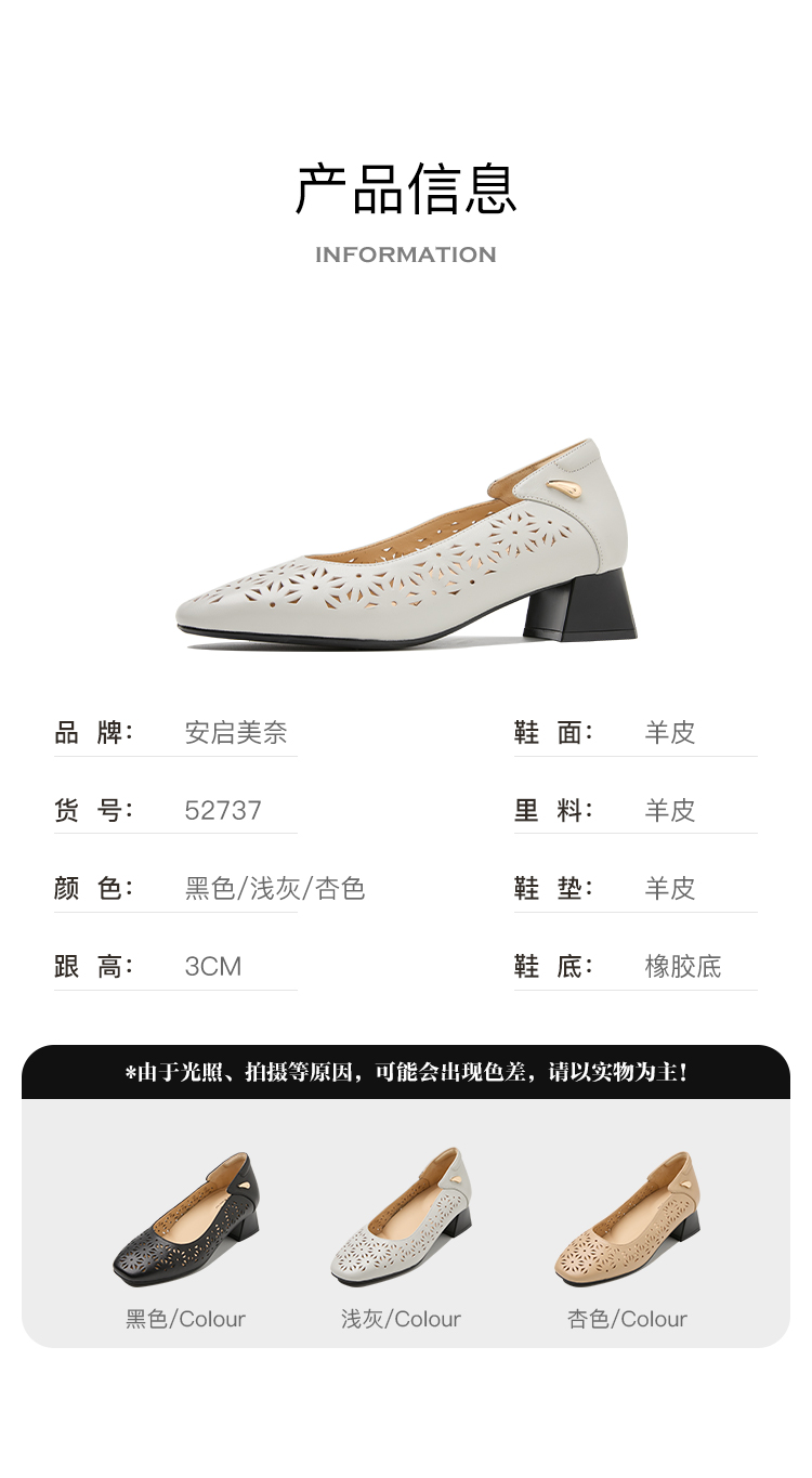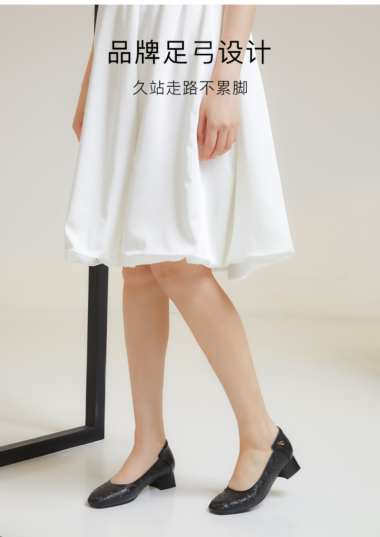 ARCHCONTACT安启美奈花纹镂空粗跟单鞋52737