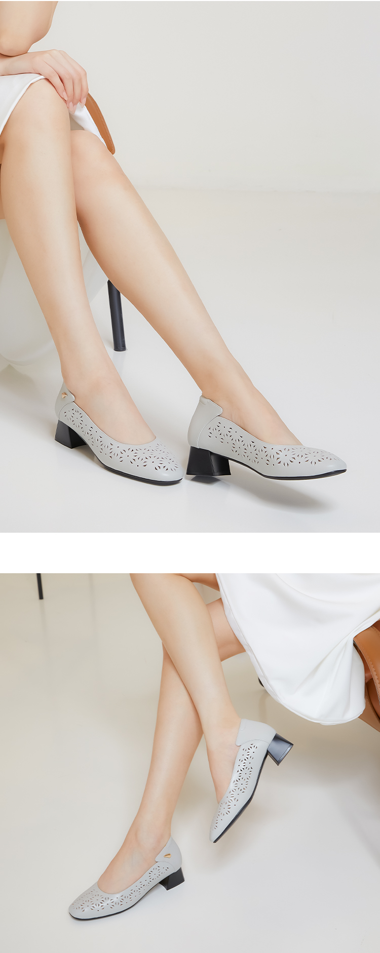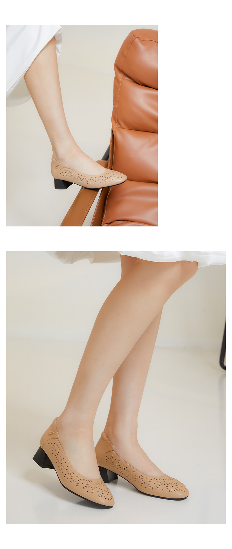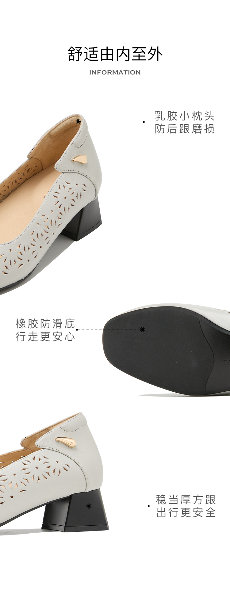 ARCHCONTACT安启美奈花纹镂空粗跟单鞋52737