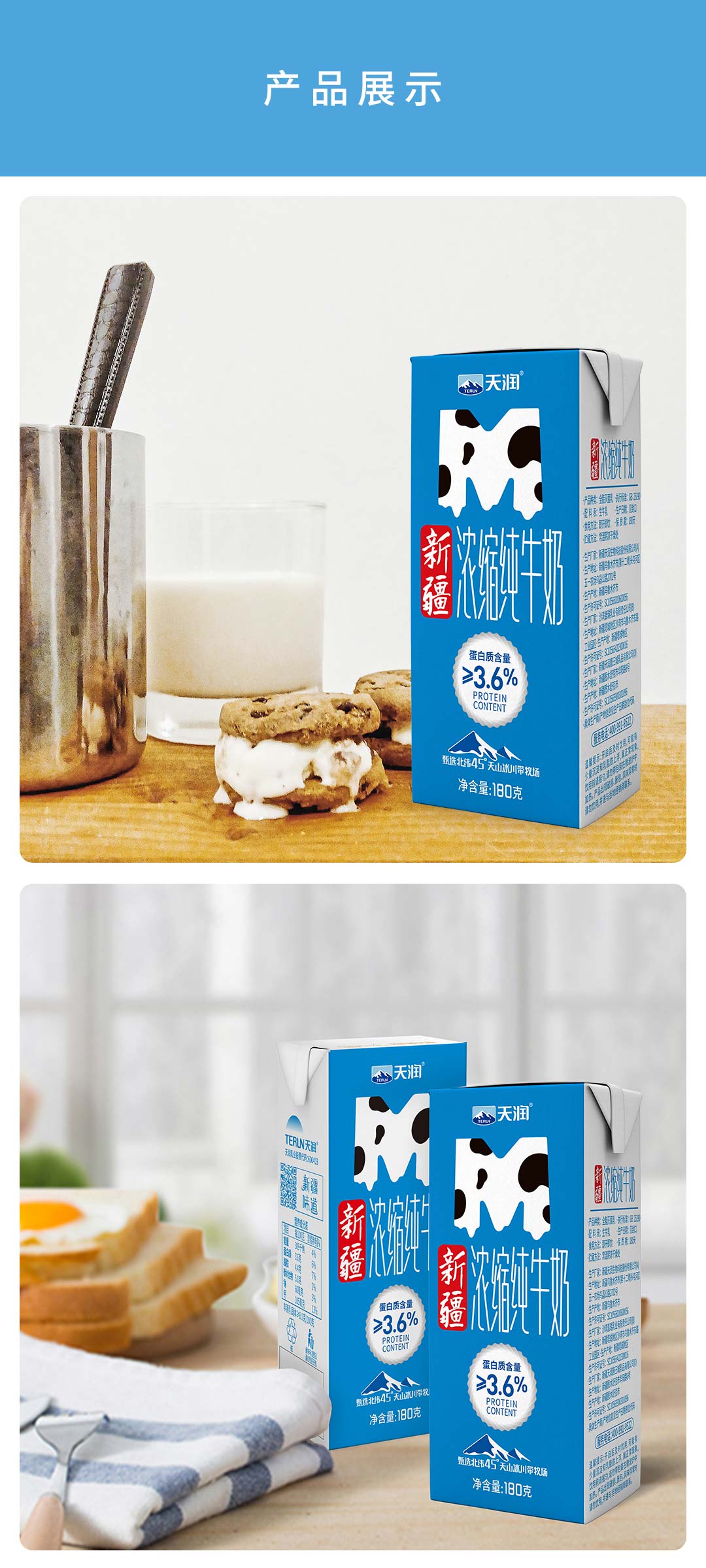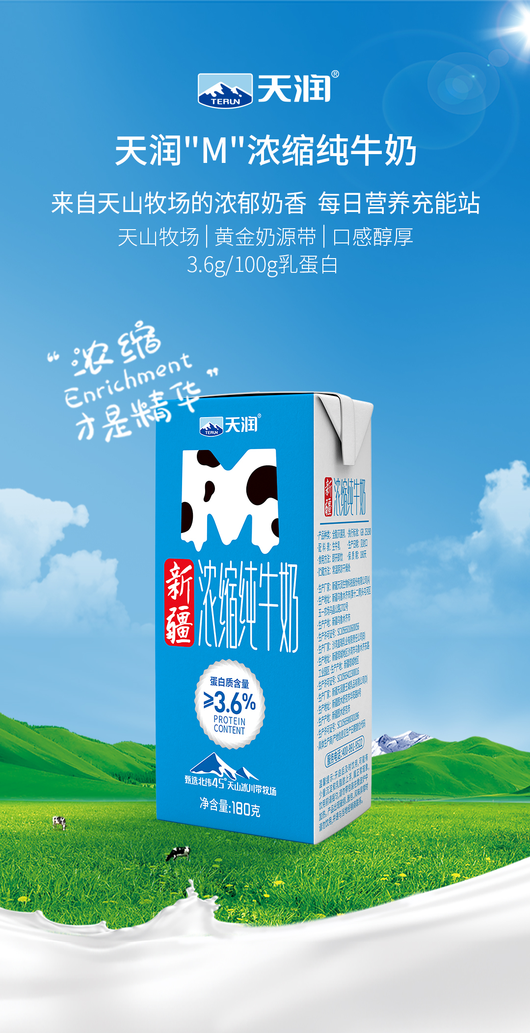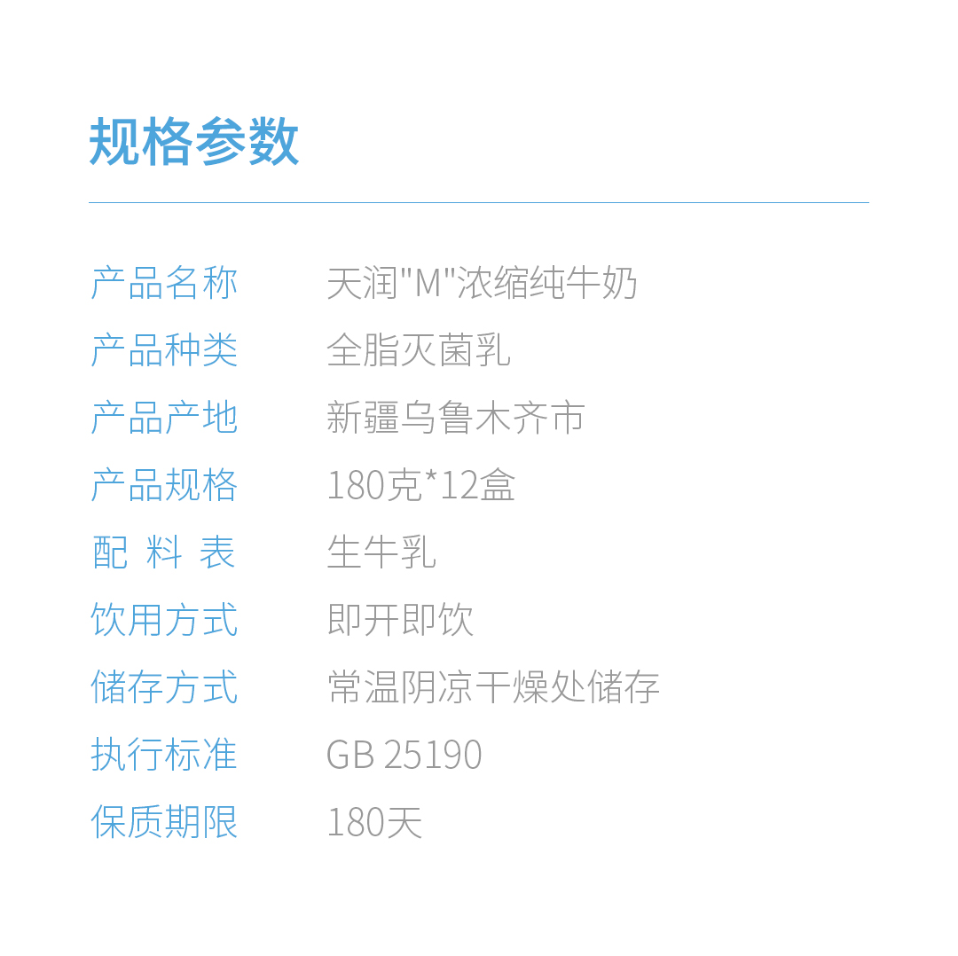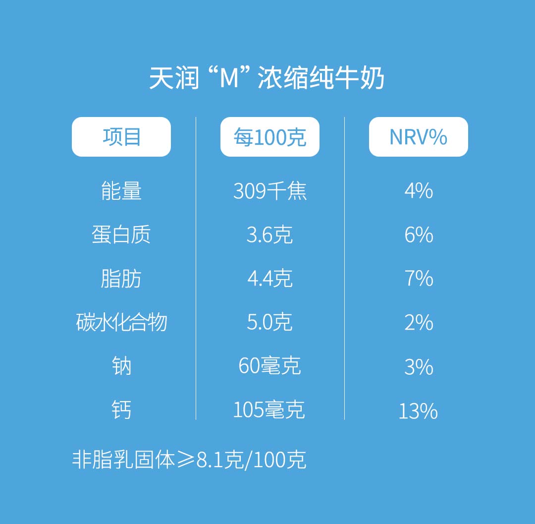 天润浓缩纯牛奶(M版康美砖180g)