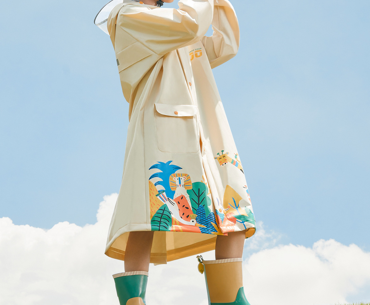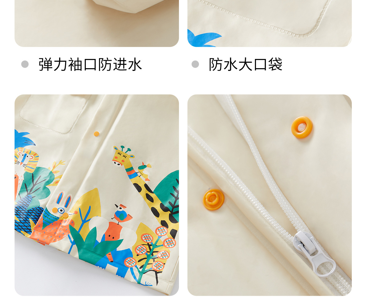 【专柜同款 暴雨级防水面料! 赠收纳袋】Kk.儿童雨衣萌趣动物森林系列 百变天气从容应对 挡雨不湿脸 雨天出行0负担