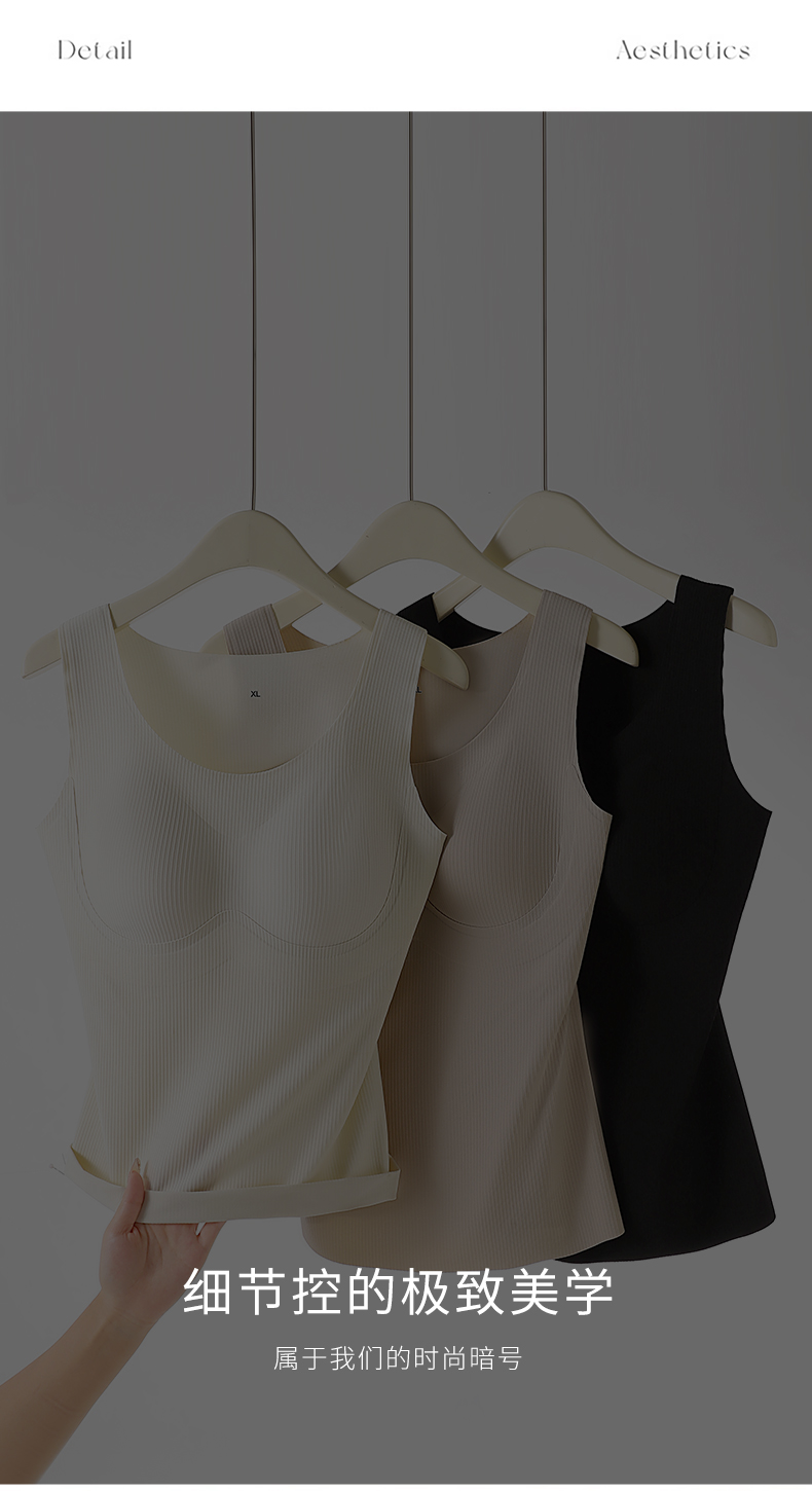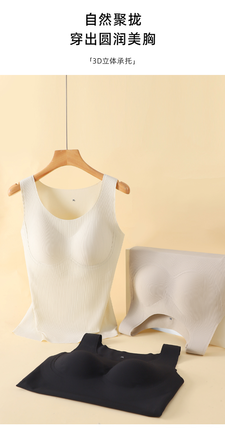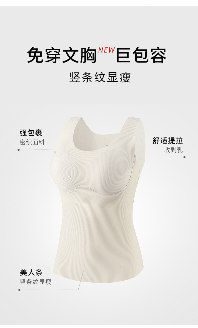 W2506#免穿文胸竖条纹显瘦背心 四季款 可拆卸杯垫