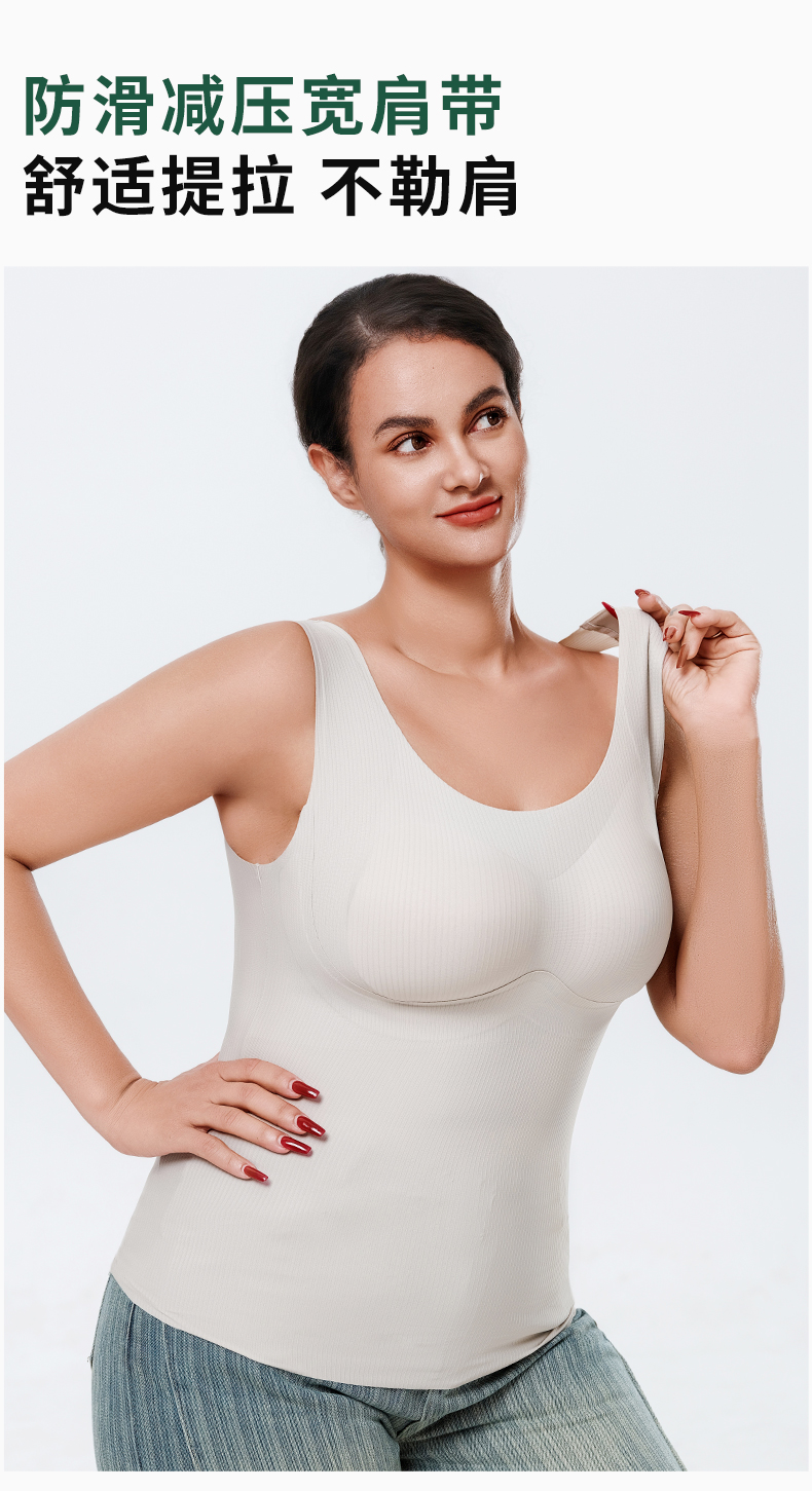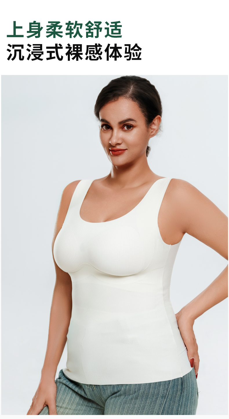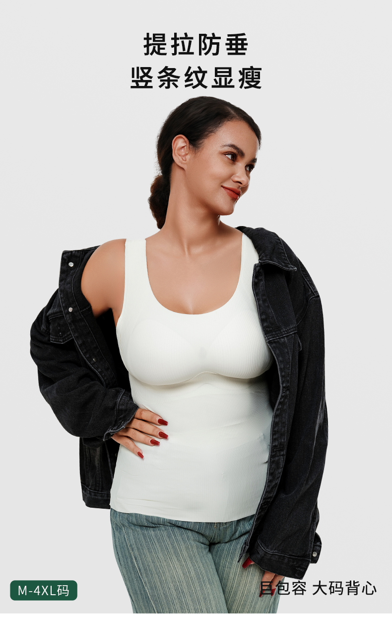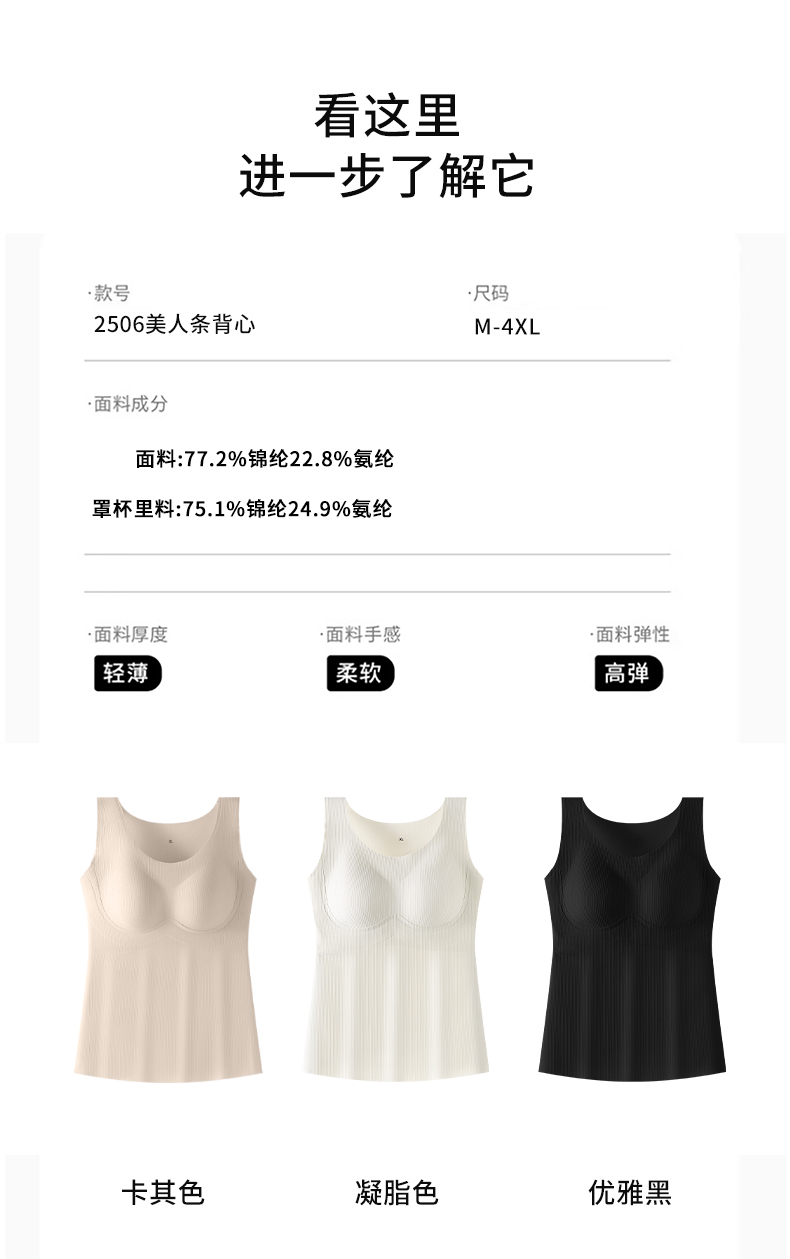 W2506#免穿文胸竖条纹显瘦背心 四季款 可拆卸杯垫
