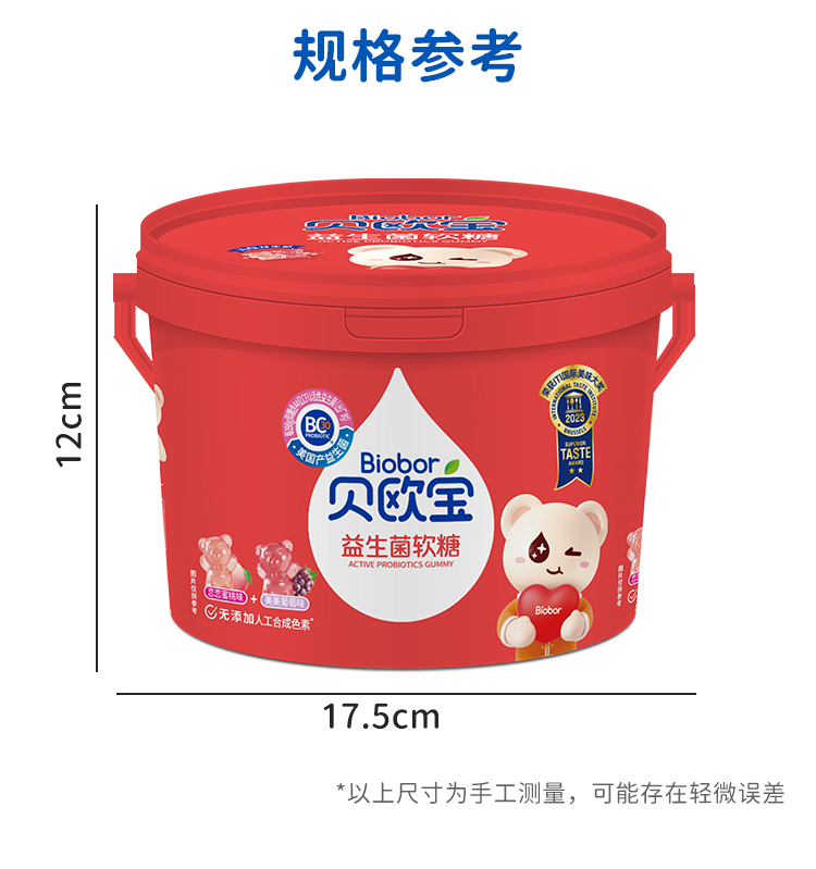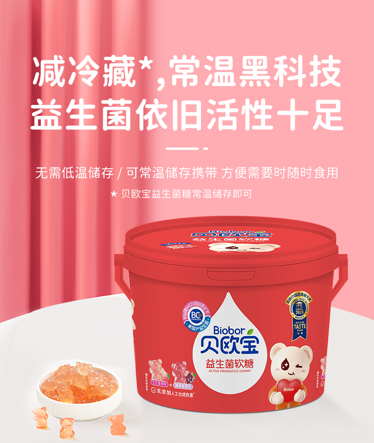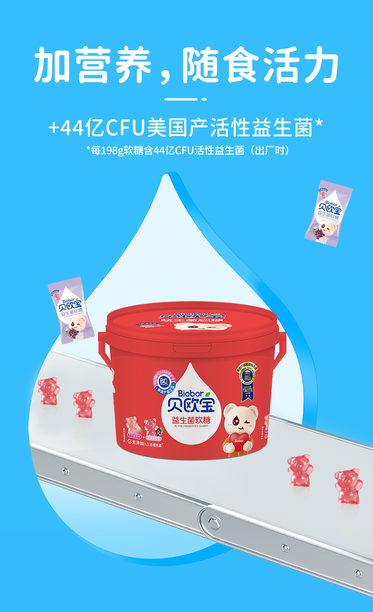 贝欧宝益生菌软糖小熊糖桶装糖果营养儿童qq糖休闲零食198g