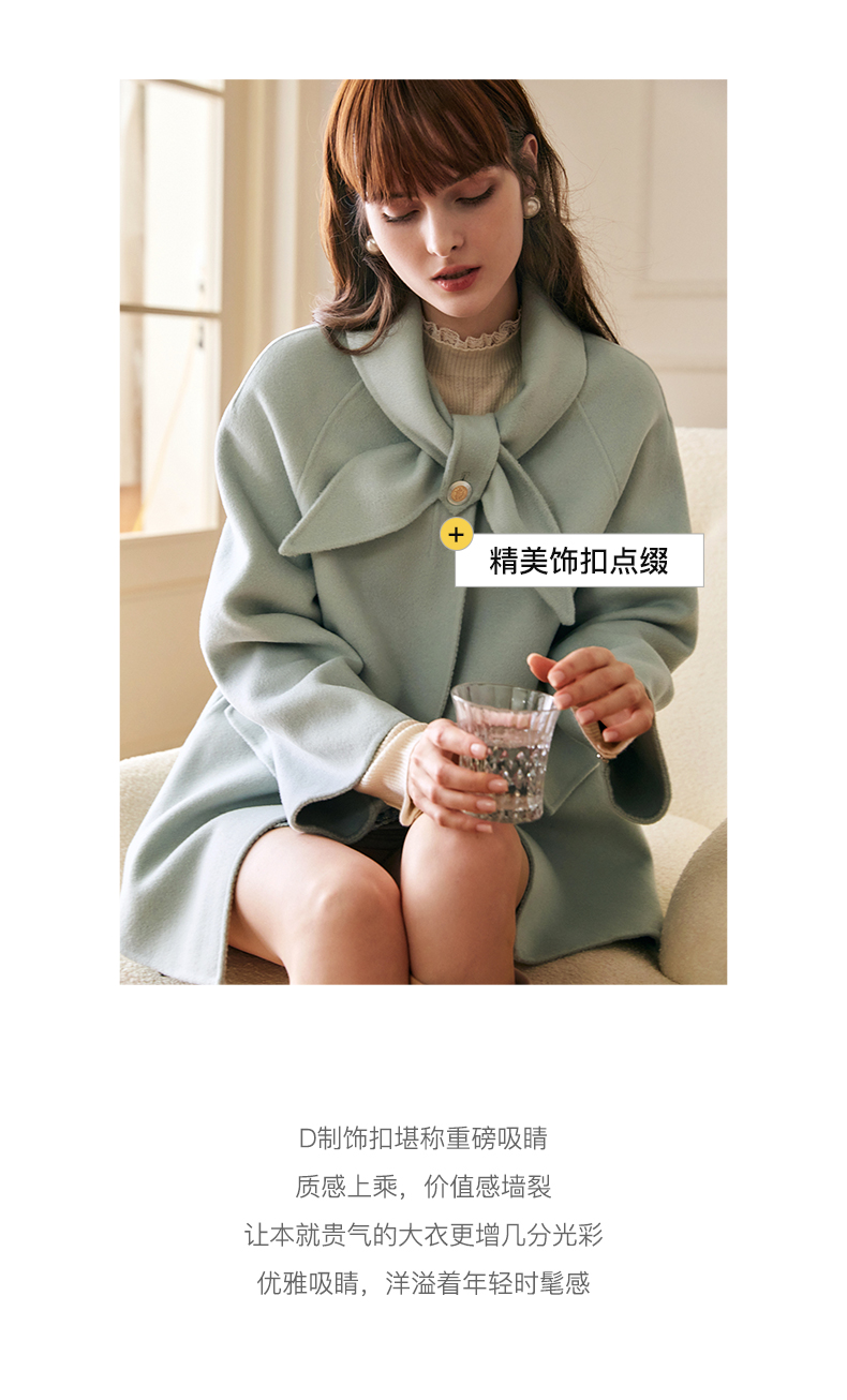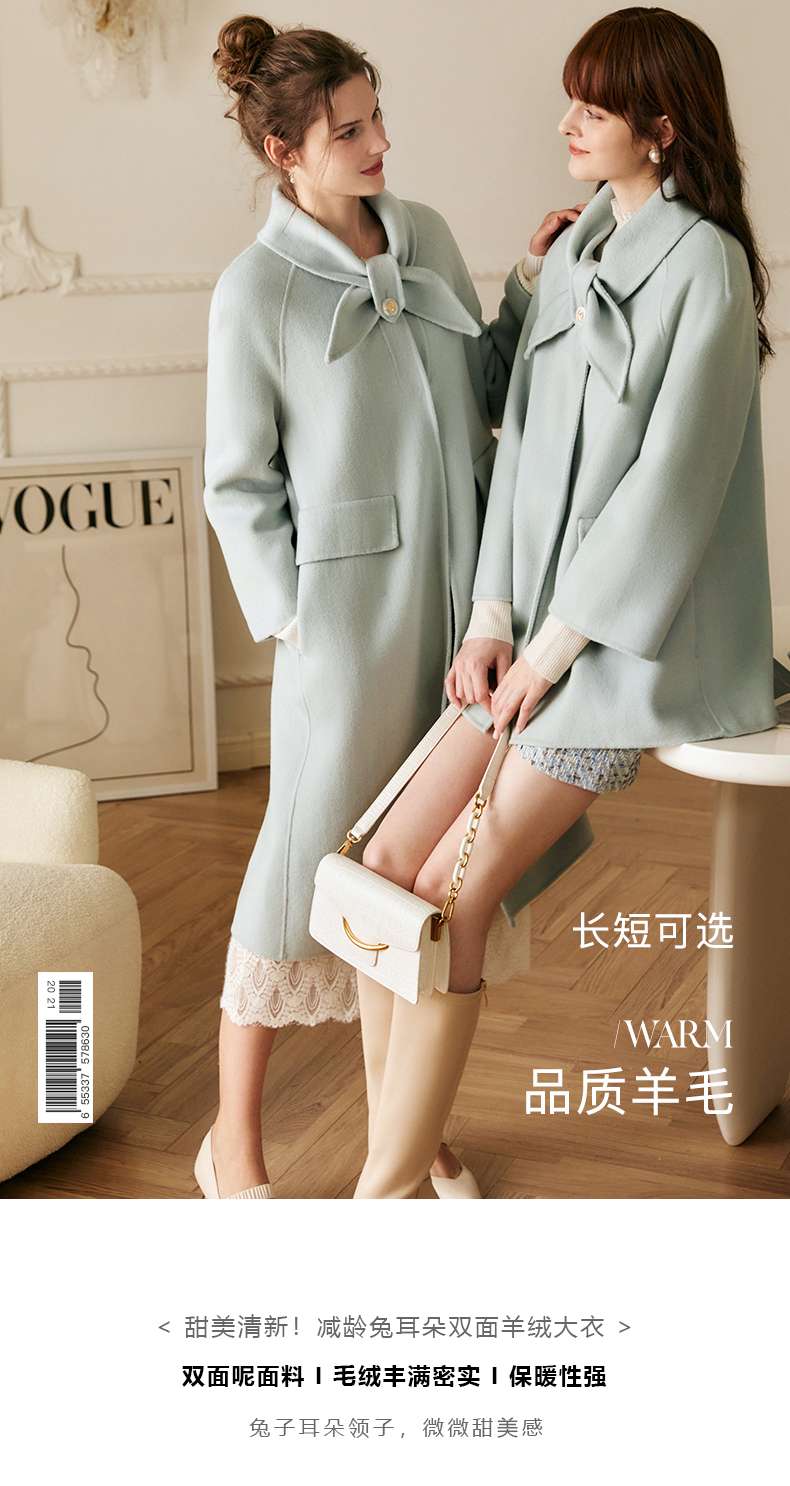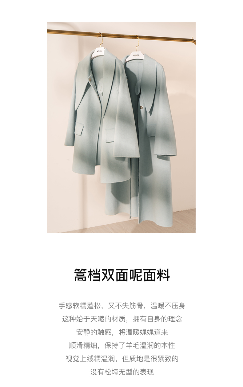 欧芮儿双面毛呢外套女秋冬2021新款宽松显瘦高端气质羊绒中长大衣