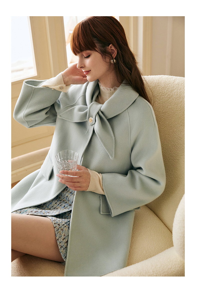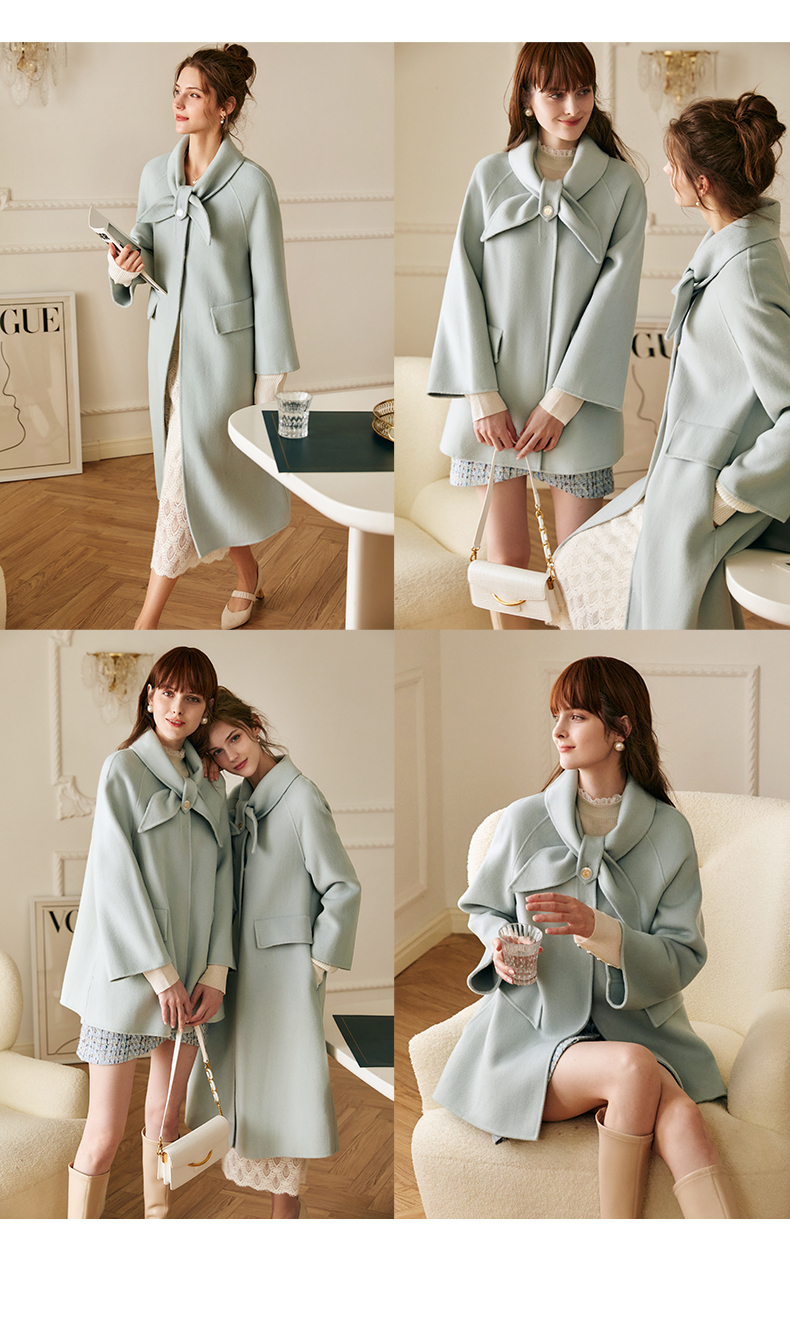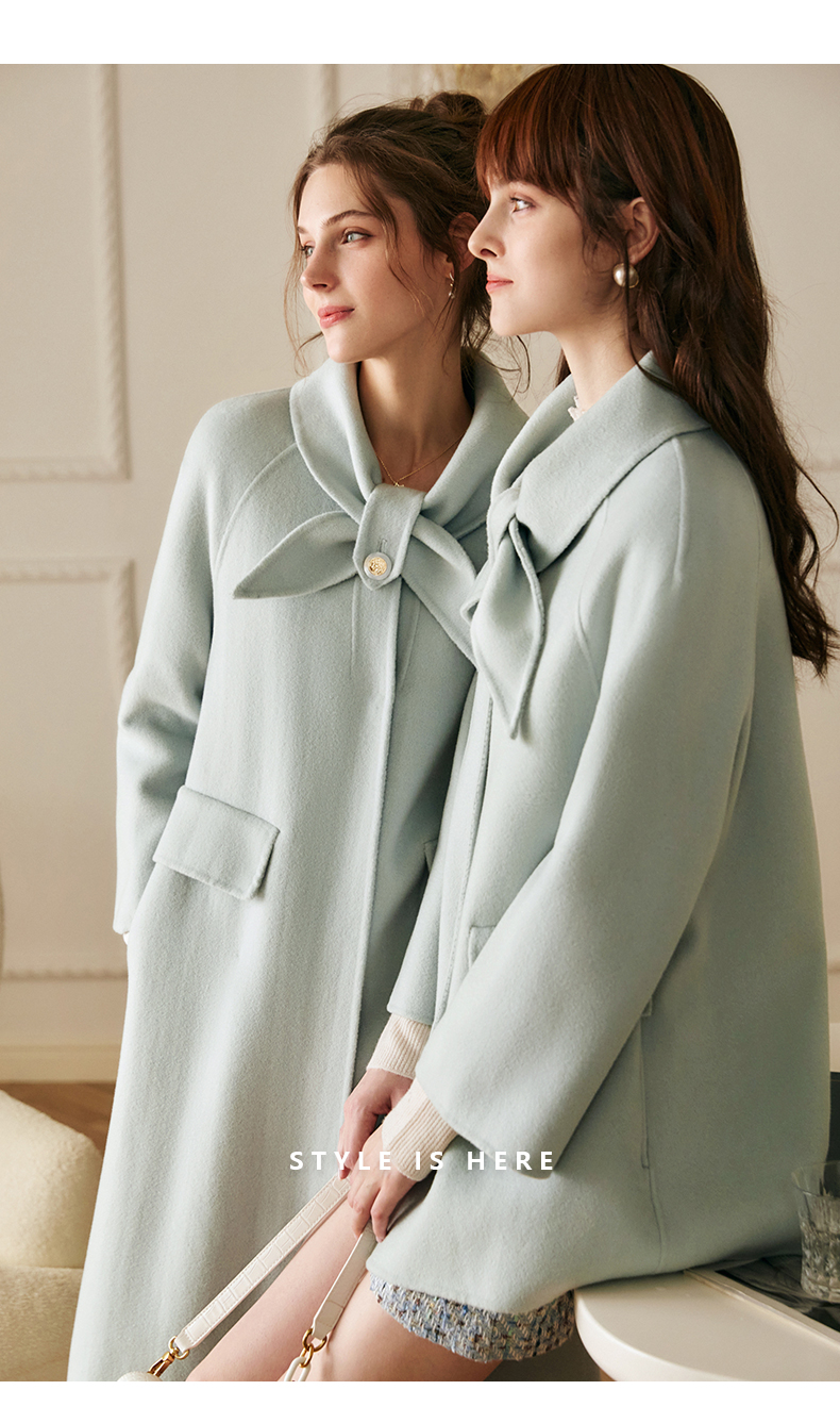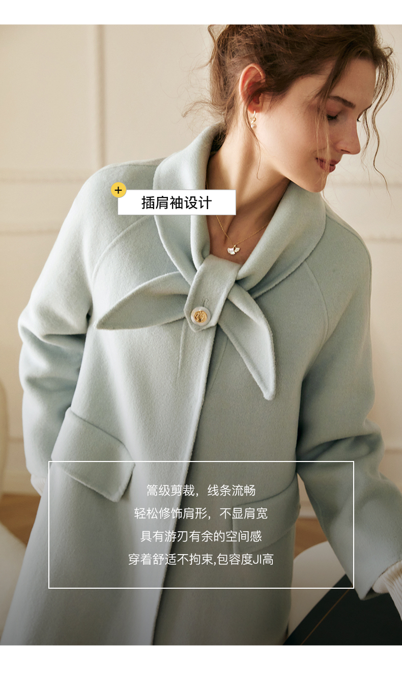欧芮儿双面毛呢外套女秋冬2021新款宽松显瘦高端气质羊绒中长大衣