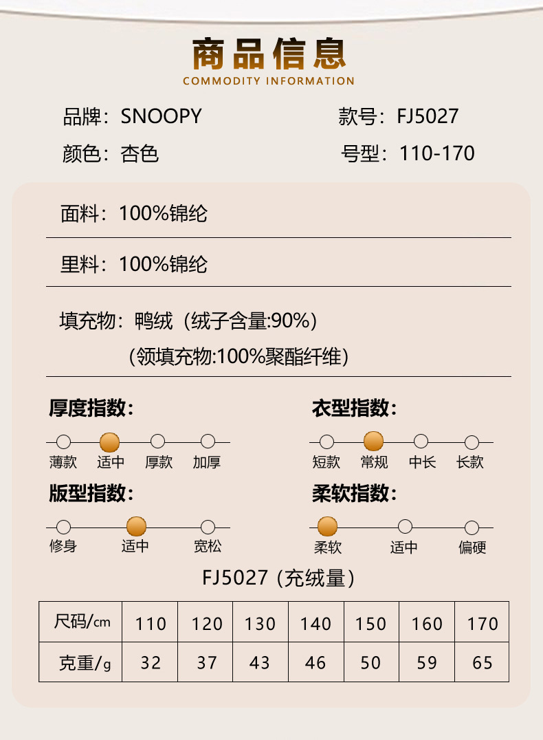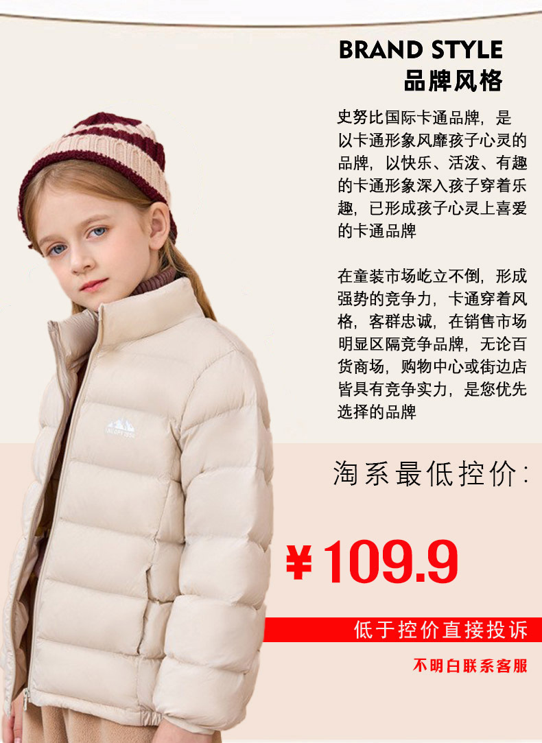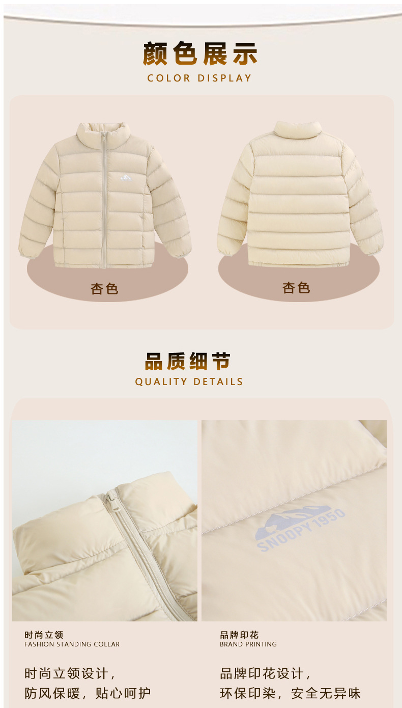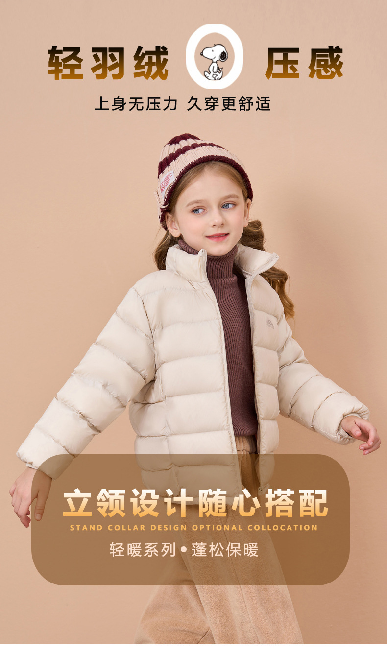 史努比新款秋冬儿童立领轻薄羽绒服内胆保暖男童女童外套