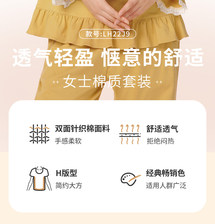 都市丽人生活家居女士特价棉质套装40支TC65/35中家居服长袖睡衣LH22J9