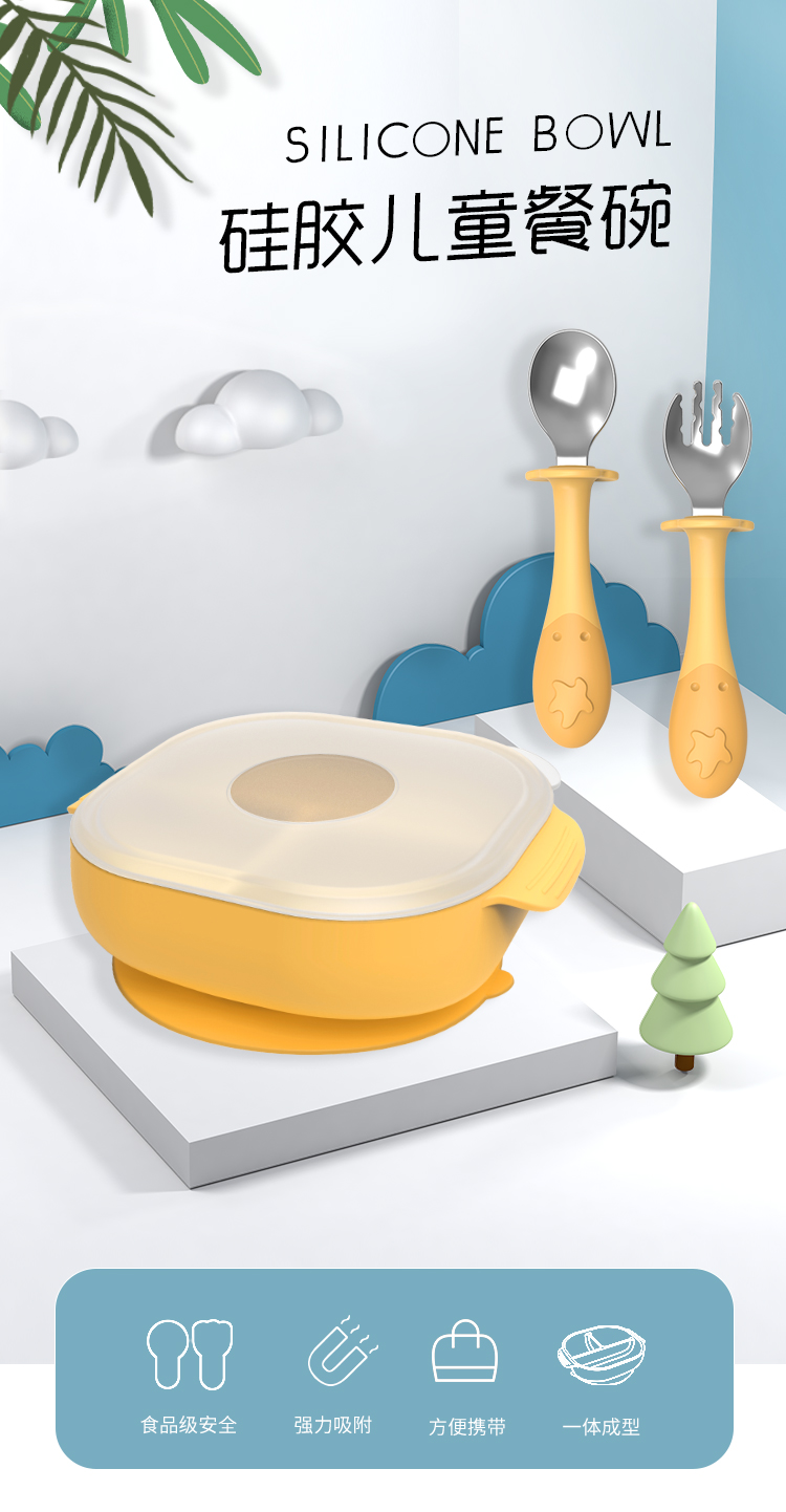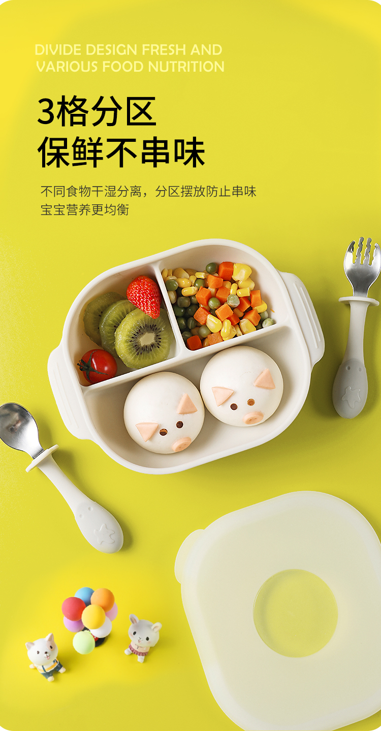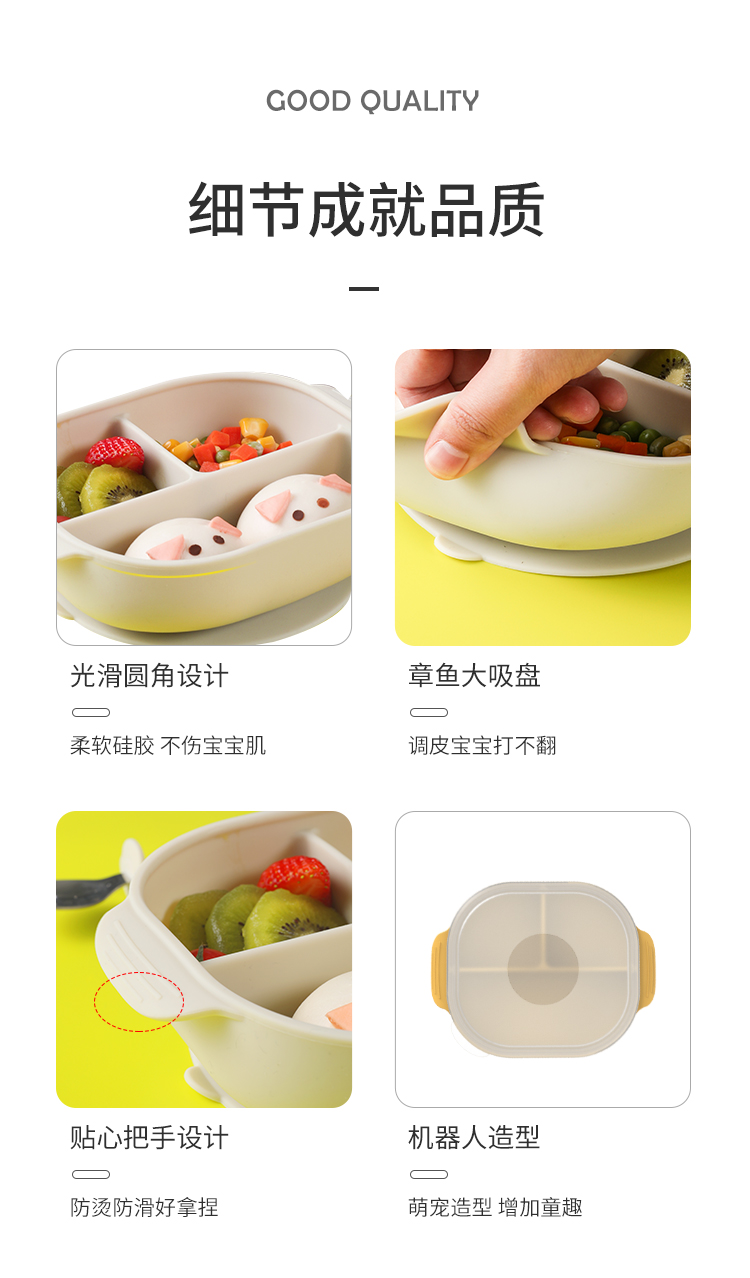 *Partita食品级硅胶机器人餐盘叉勺套装