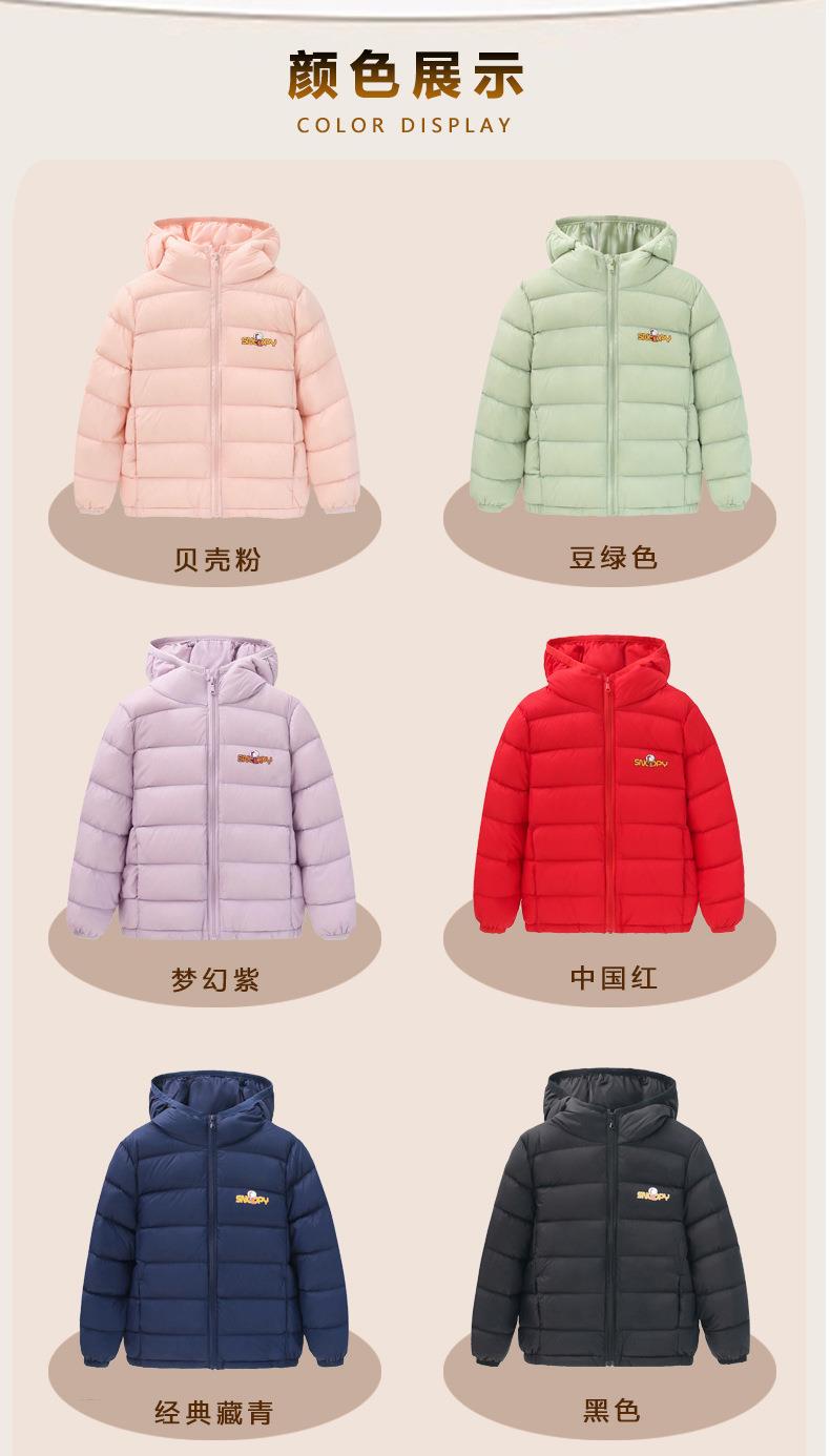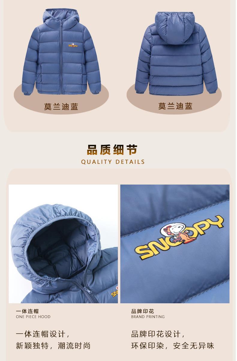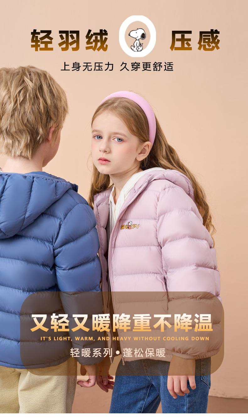 史努比儿童轻薄保暖秋冬羽绒服男女童白鸭绒外套连帽童装羽绒服