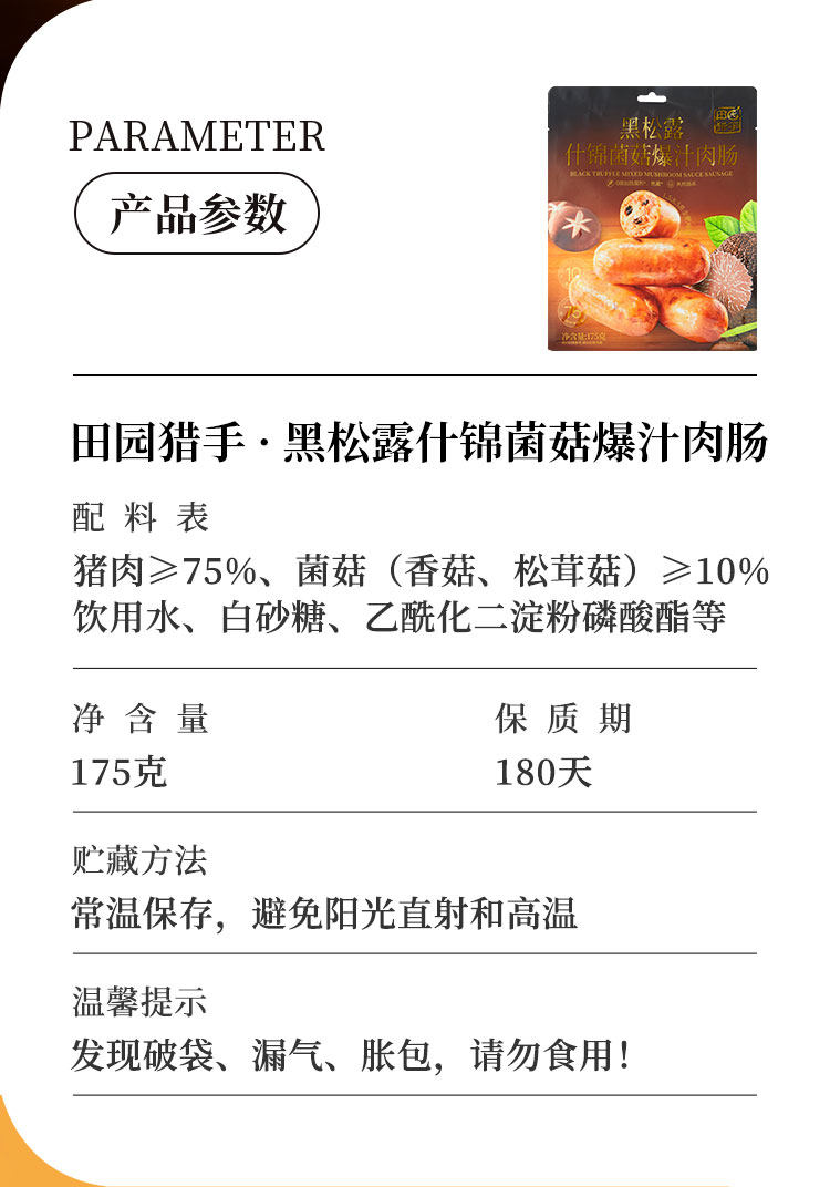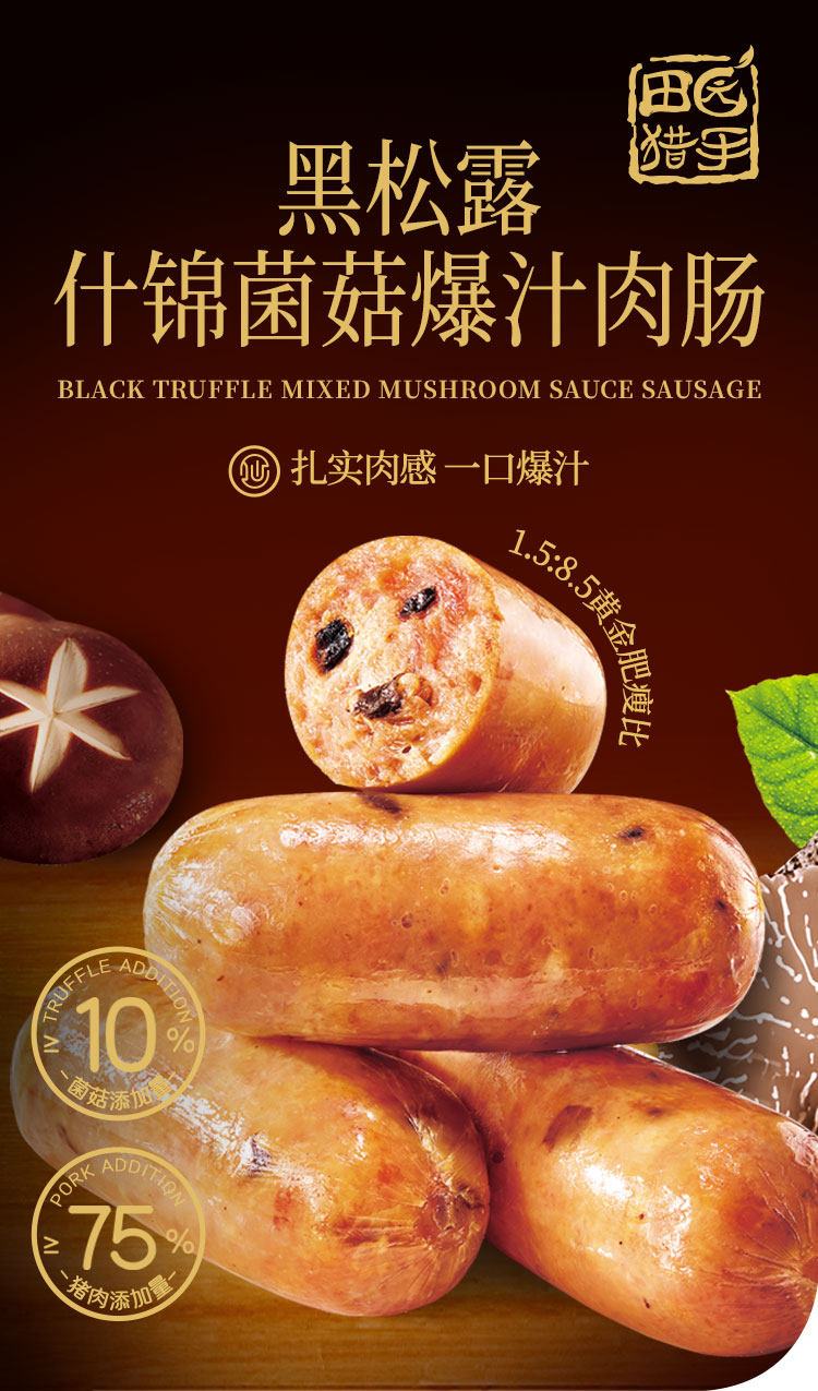 田园猎手 黑松露什锦菌菇爆汁肉肠175g