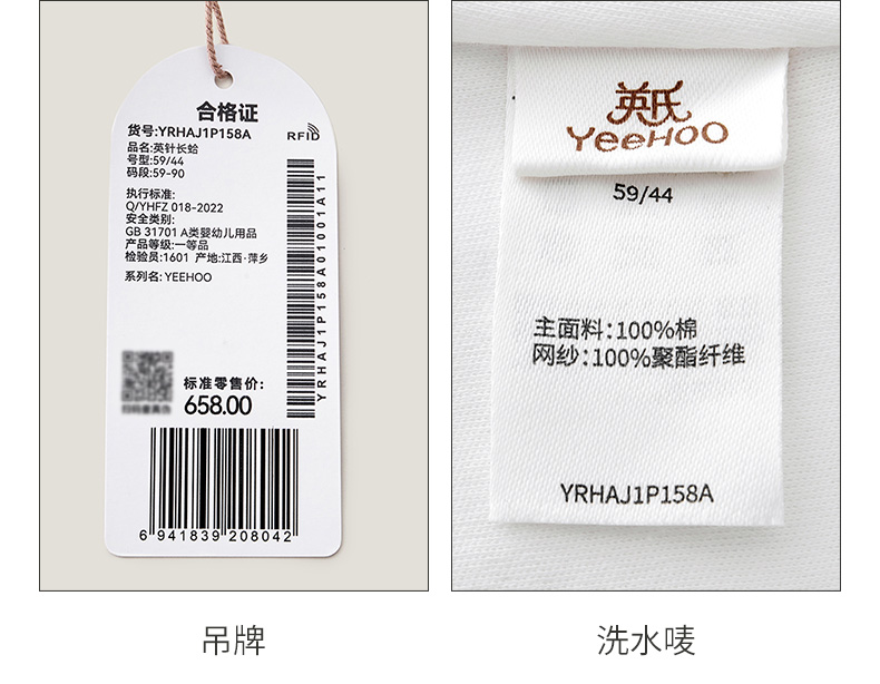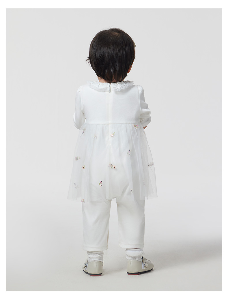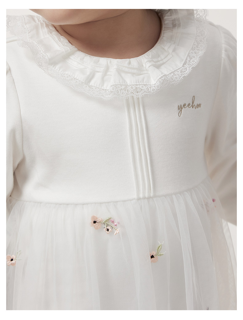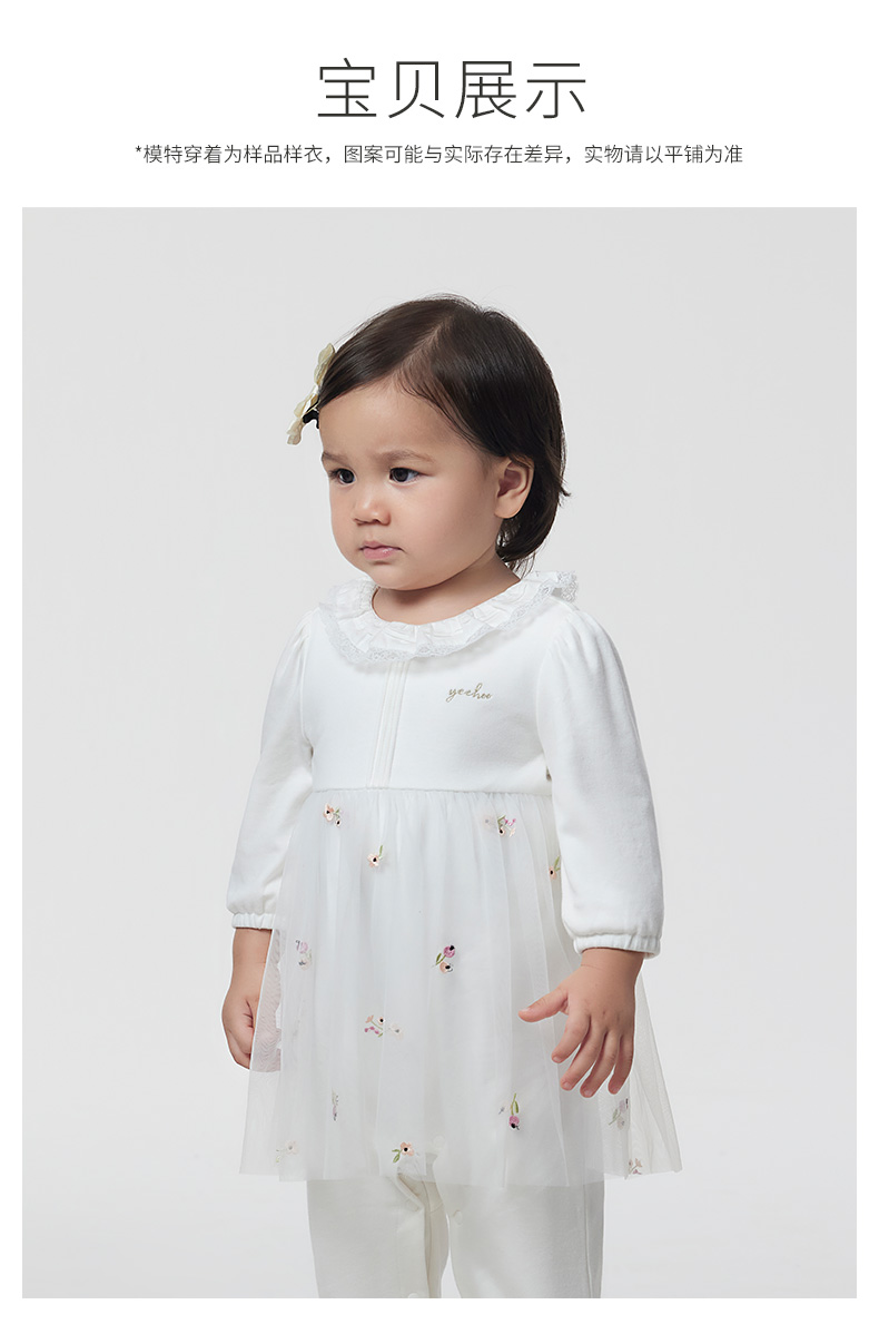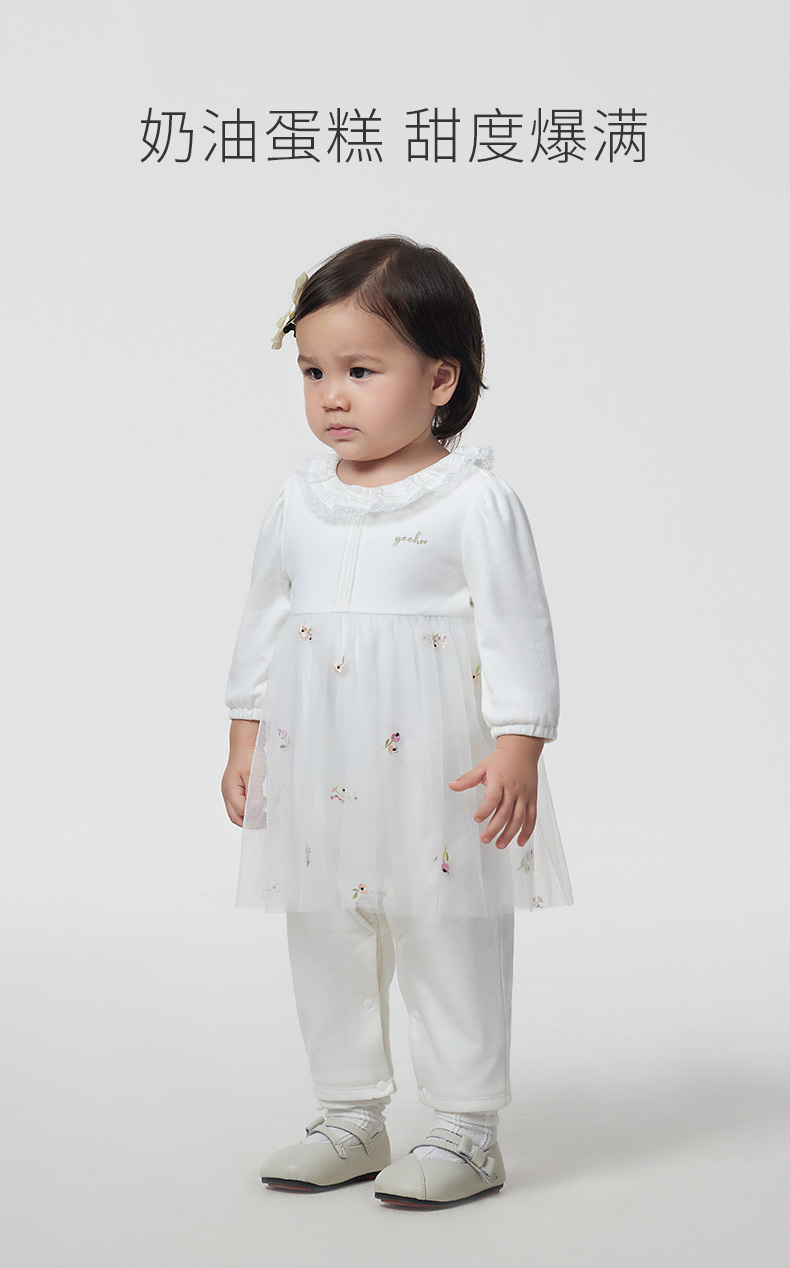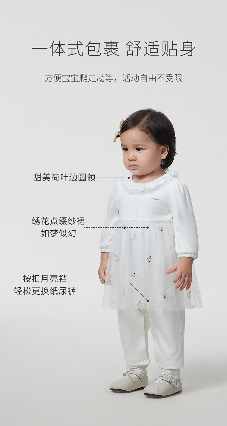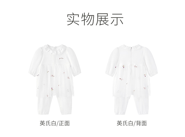 英氏童装婴儿衣服2023春新款女宝纯棉哈衣网纱连体衣YRHAJ1P158A
