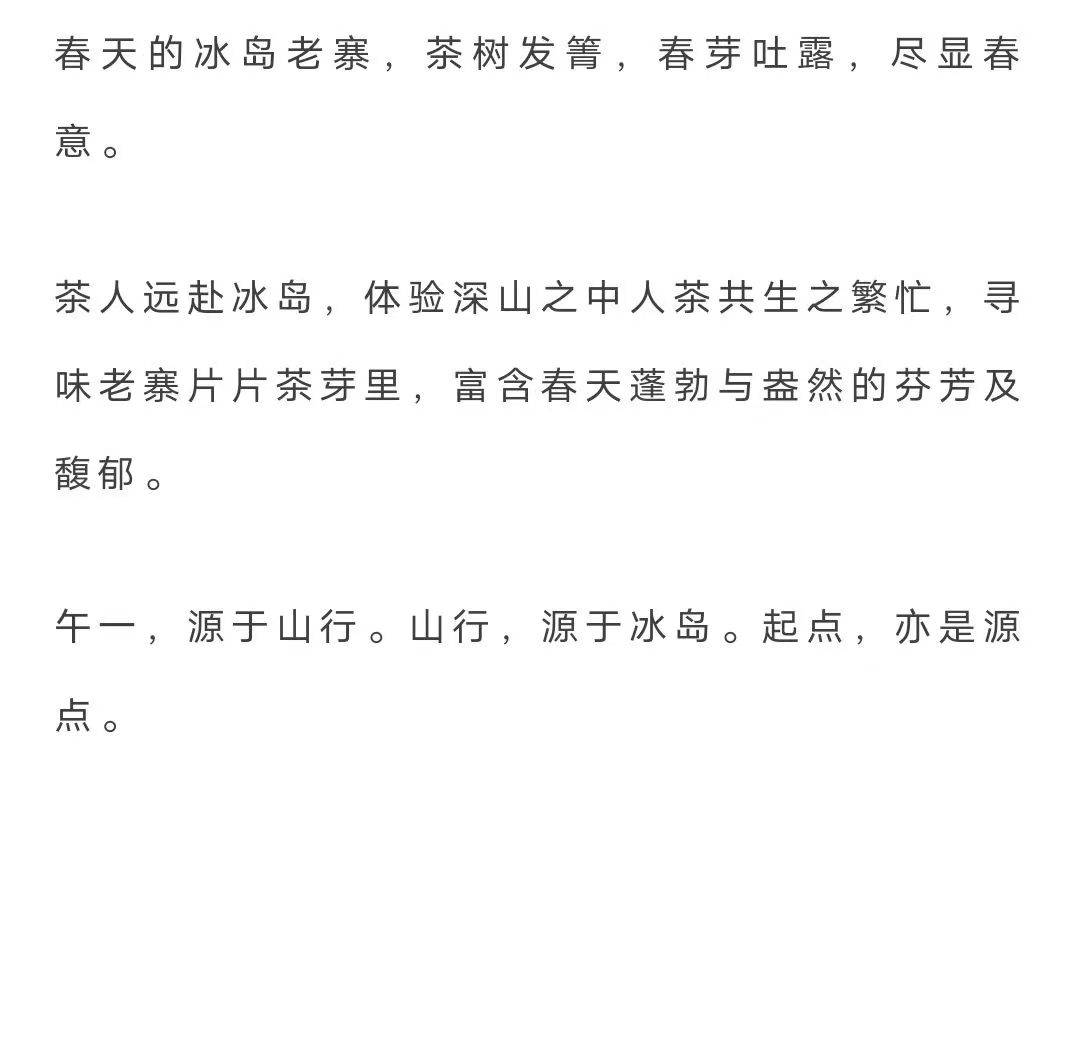 普洱生茶 午一 2022年 叶系列 冰岛 山行(70年左右树龄)80g/套