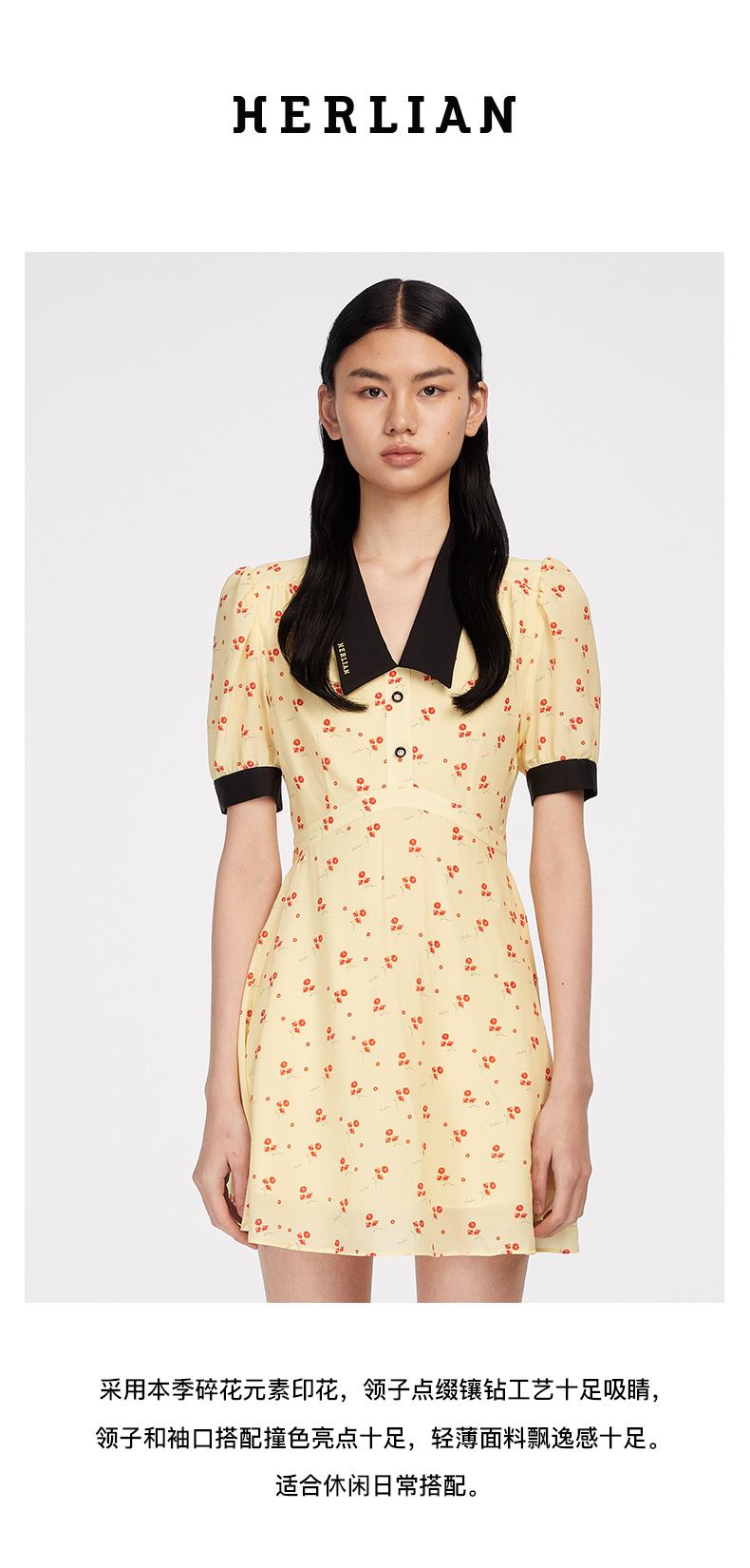 HL2DSSDR1933 小雏菊碎花黄色连衣裙