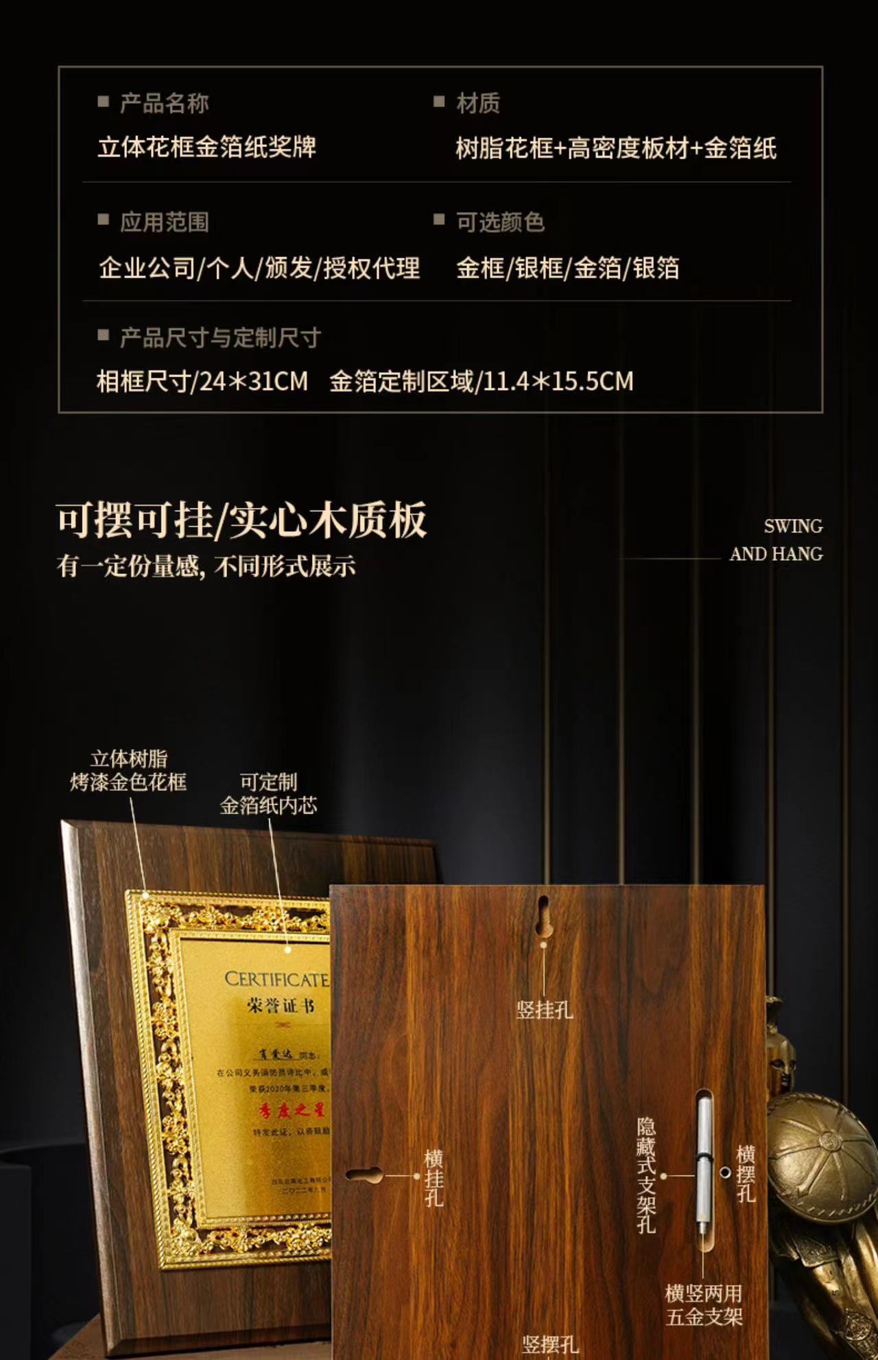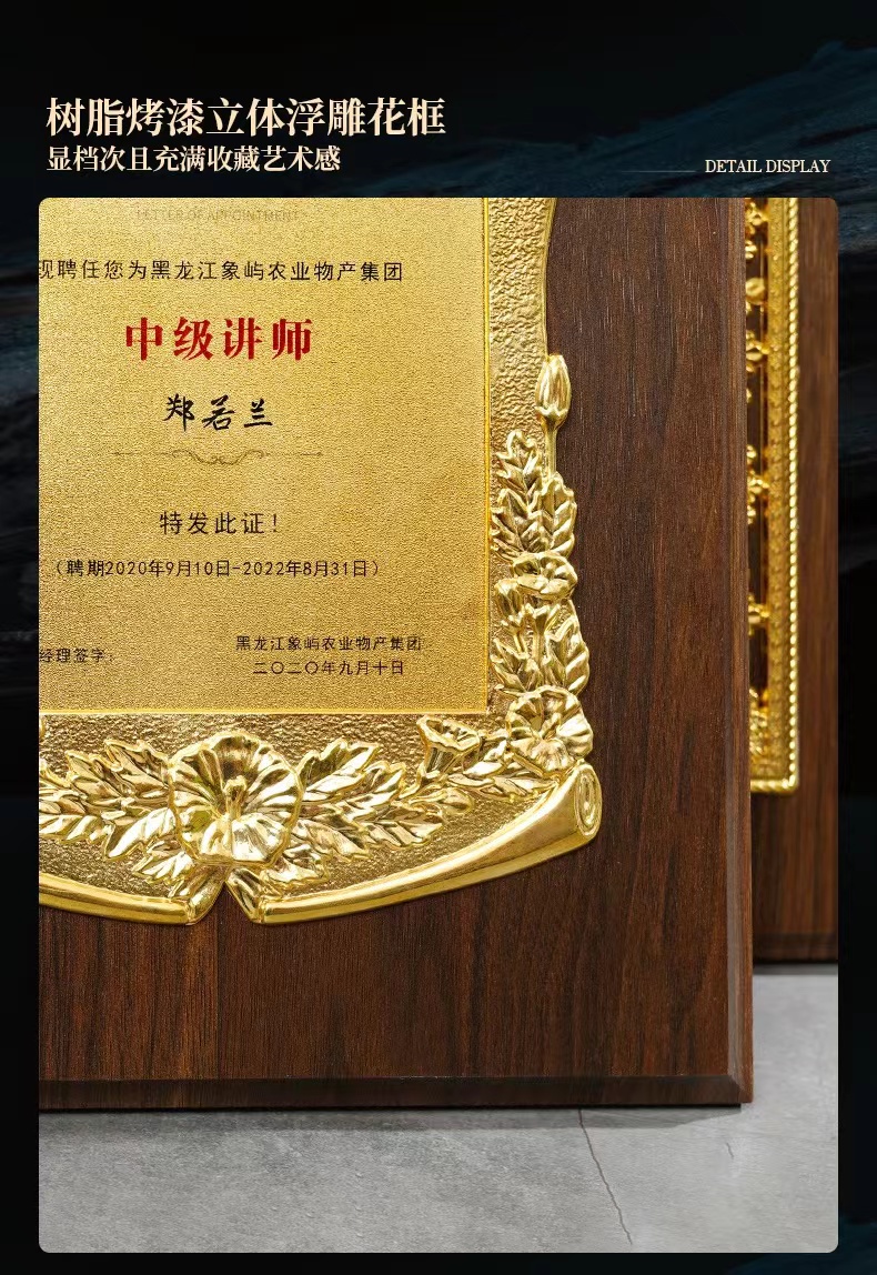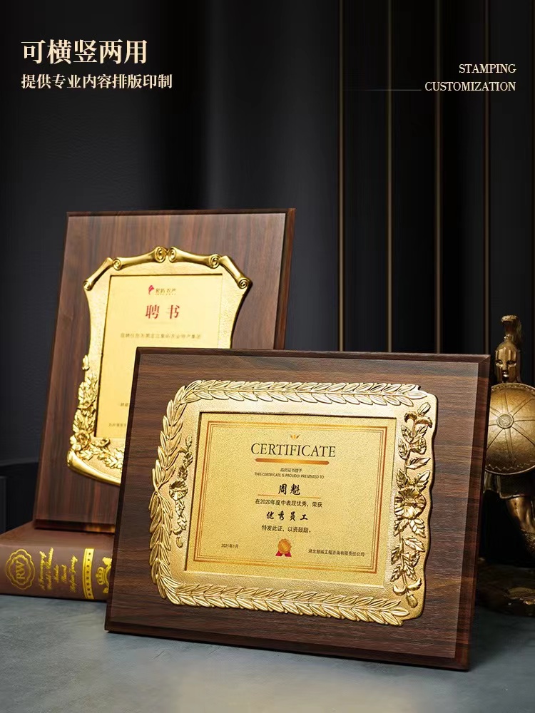 金箔奖牌定制做木制授权牌木托荣誉牌匾书挂牌制作铜牌证书牌