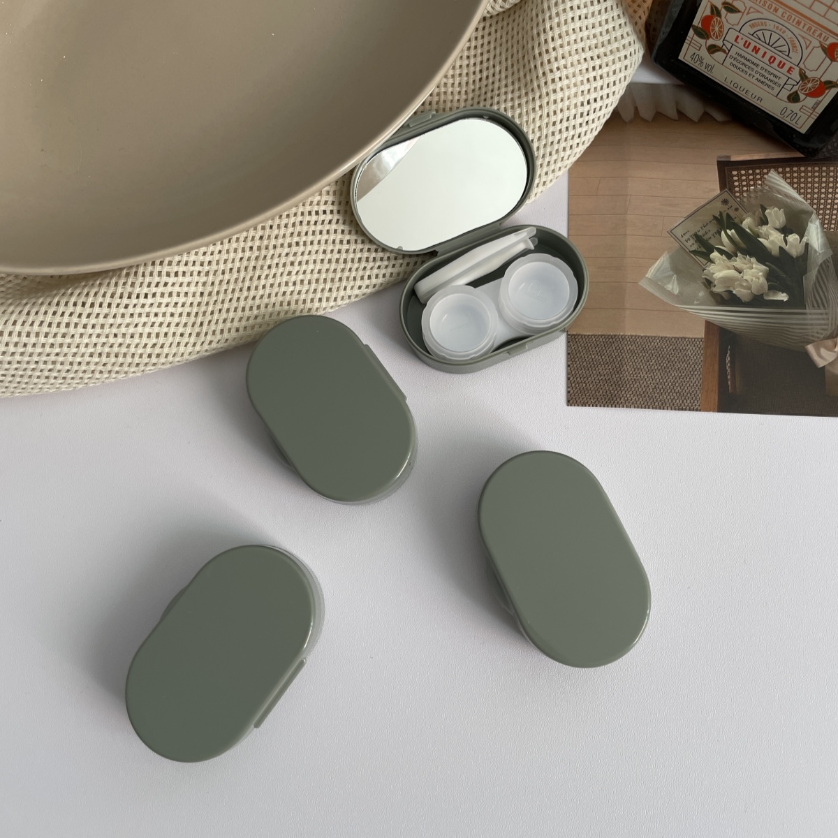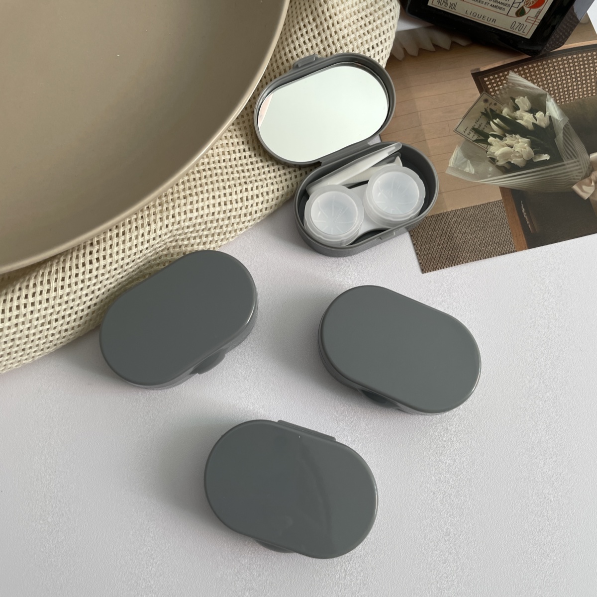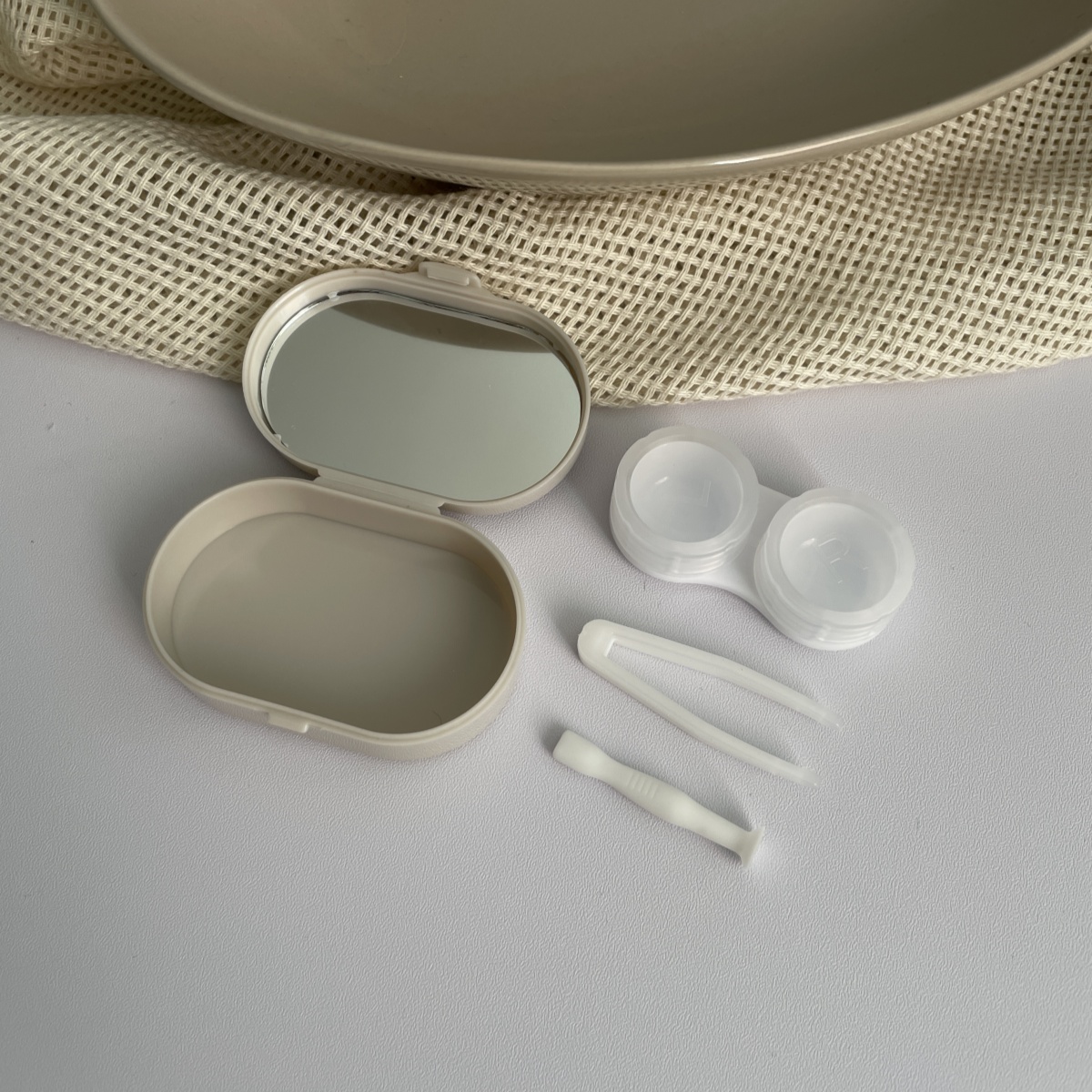 伴侣盒套装组成:双联盒、镊子 ,配戴棒、镜子。