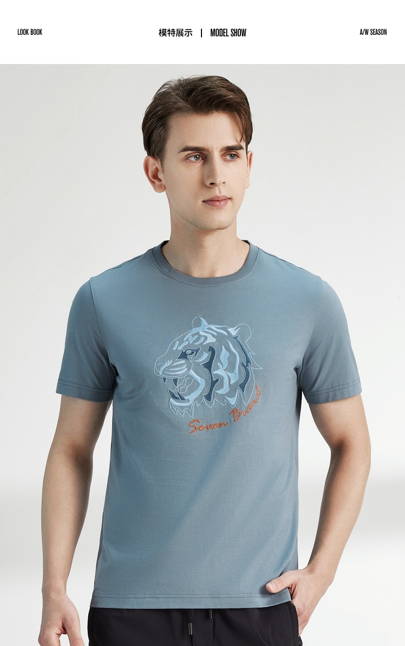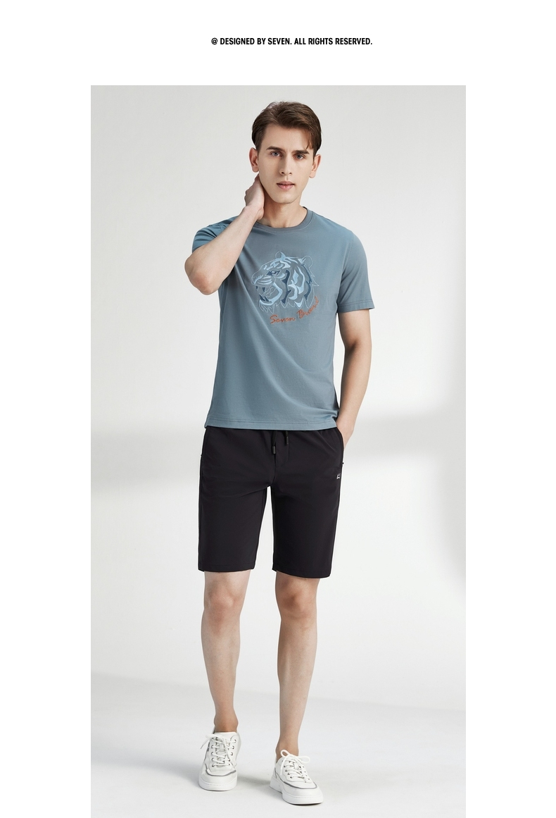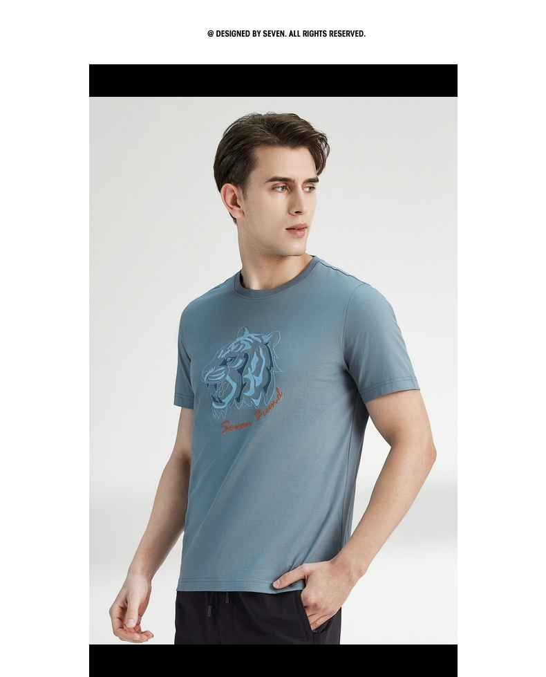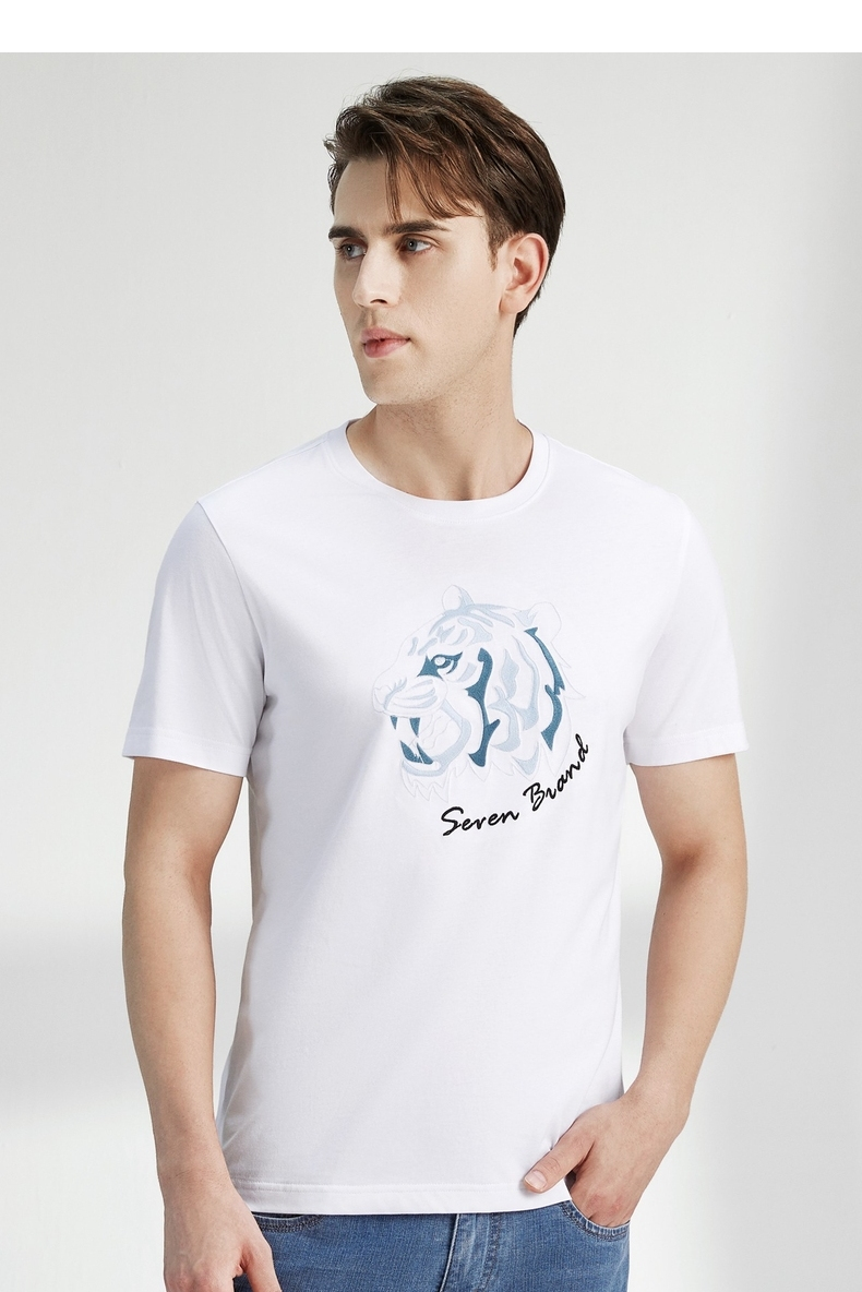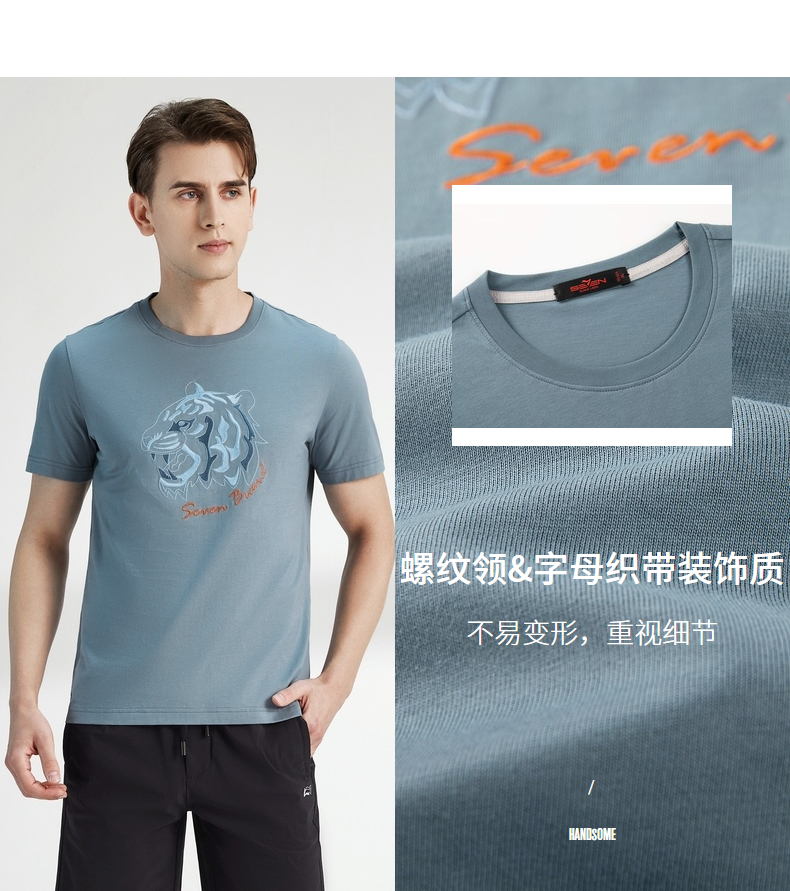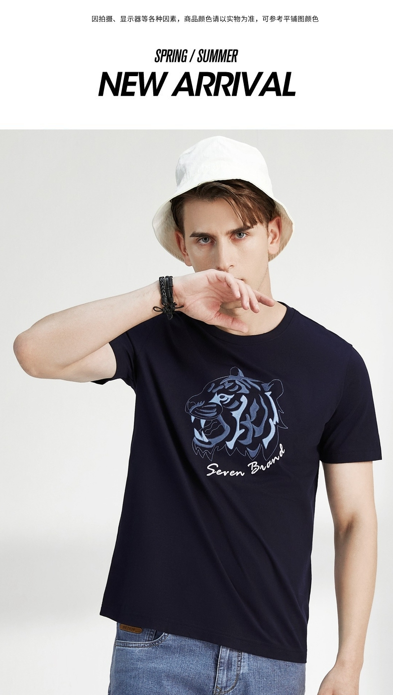 柒牌短袖t恤男时尚休闲夏季薄款纯棉圆领弹力老虎体恤上衣潮122T71180 122T71180