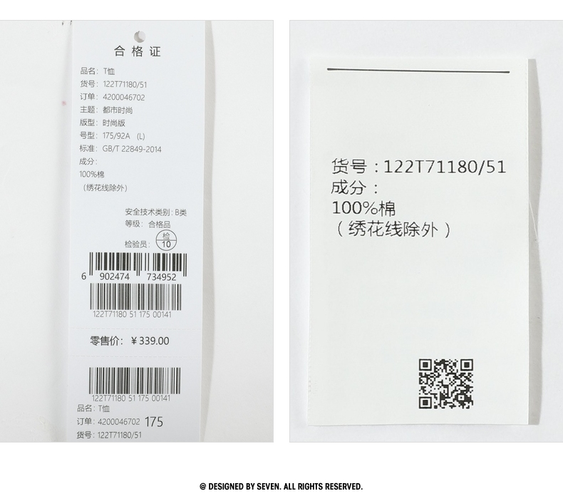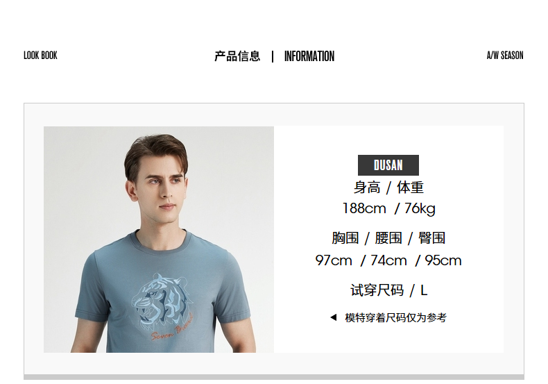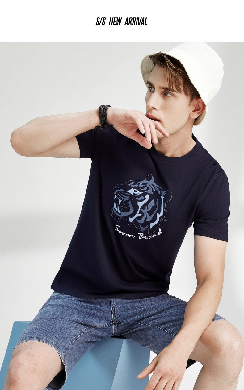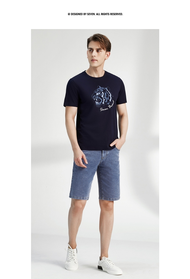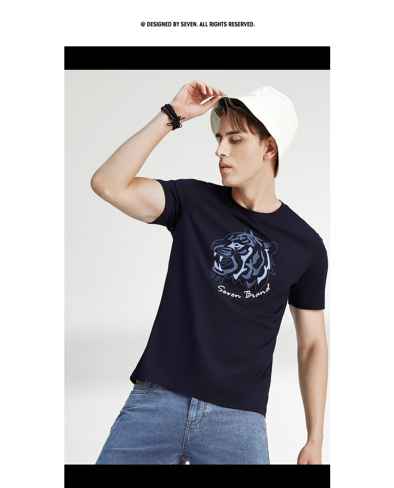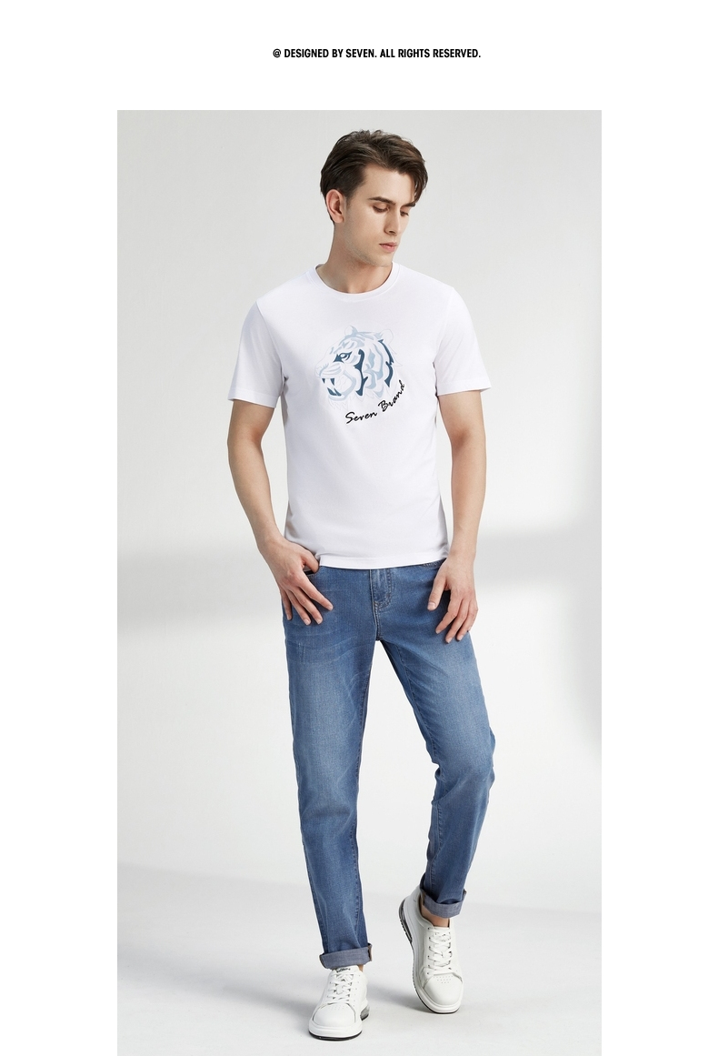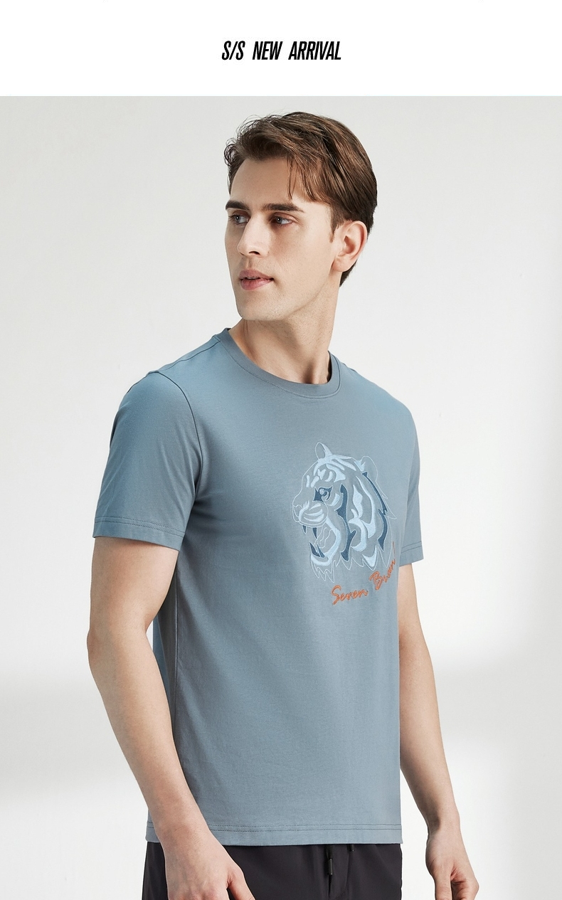 柒牌短袖t恤男时尚休闲夏季薄款纯棉圆领弹力老虎体恤上衣潮122T71180 122T71180