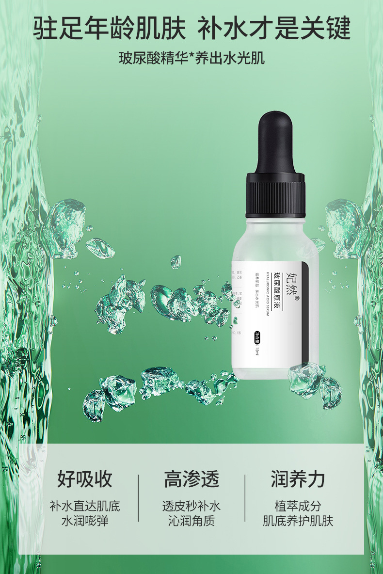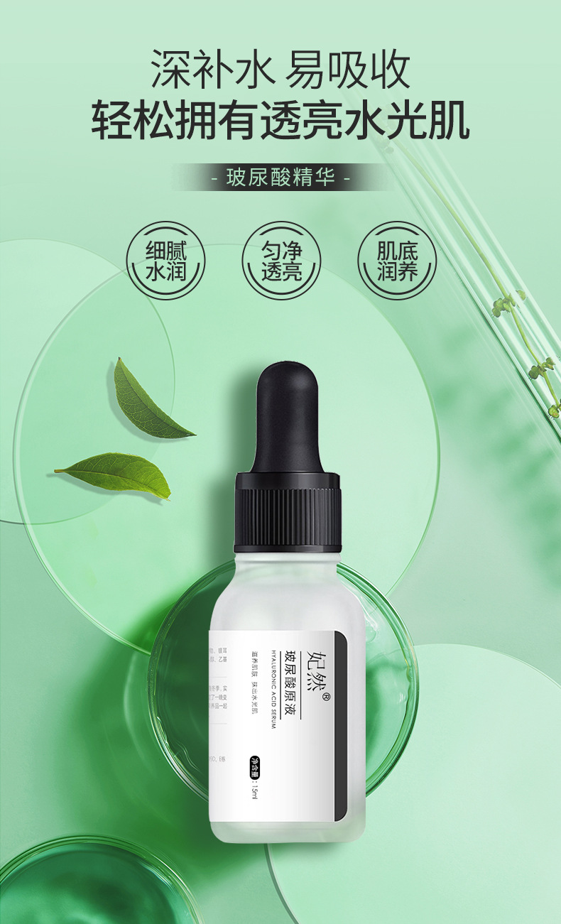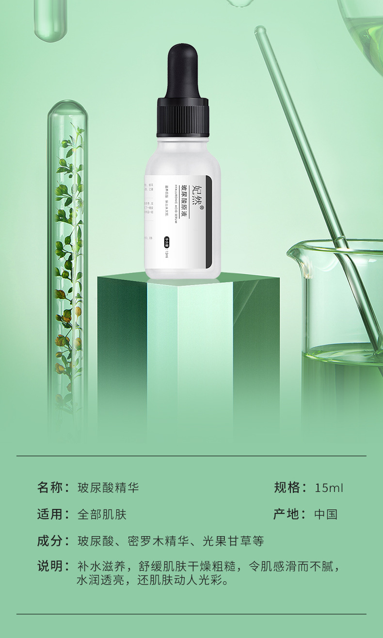 妃然玻尿酸原液 高补水清爽滋润透明质酸 小分子精华液水光肌底液
