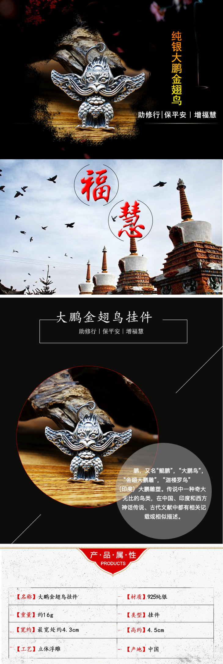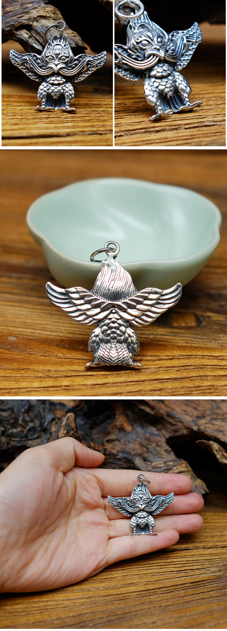 梵音苑藏密法器纯银大鹏金翅鸟吊坠挂件净除障碍趋吉避凶男女款
