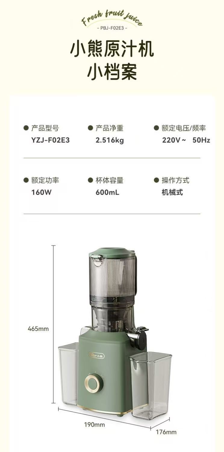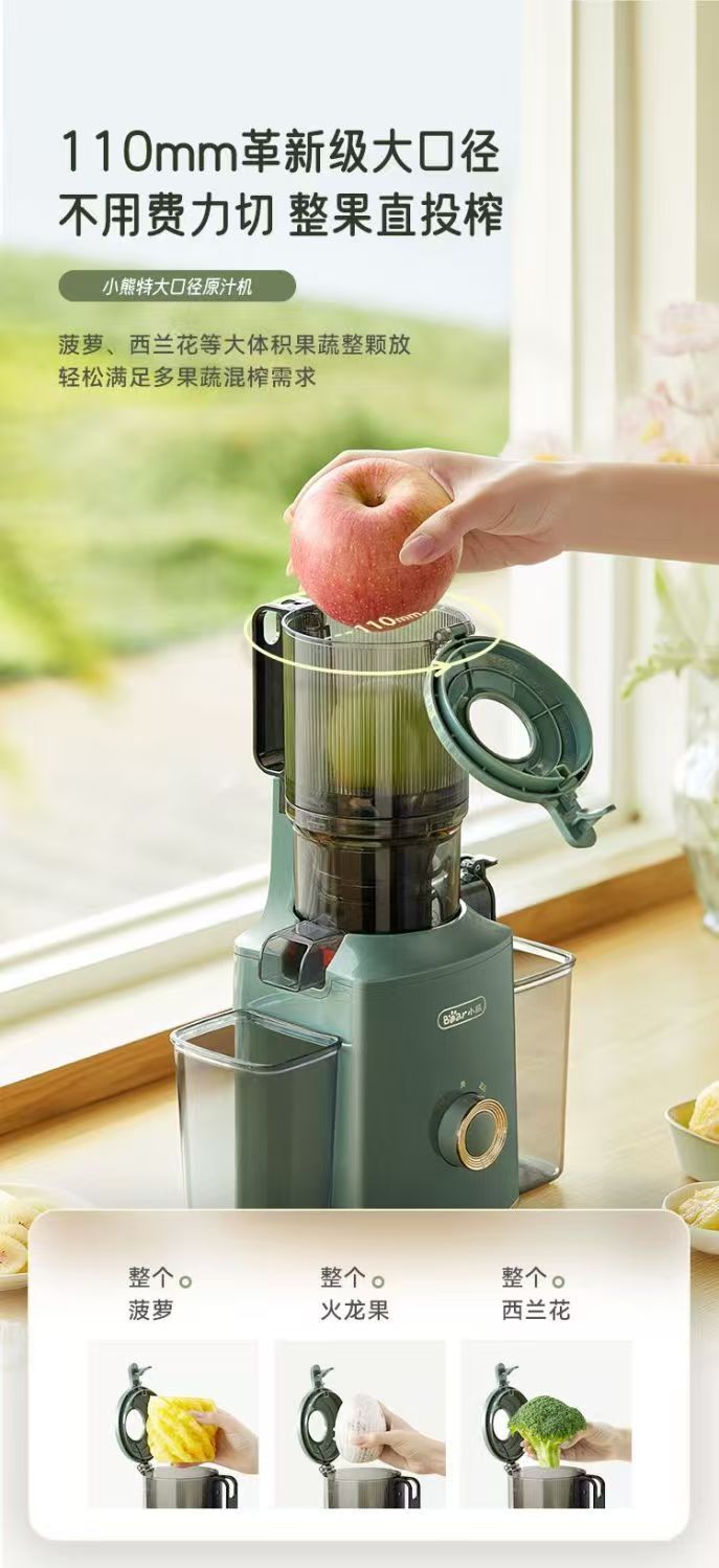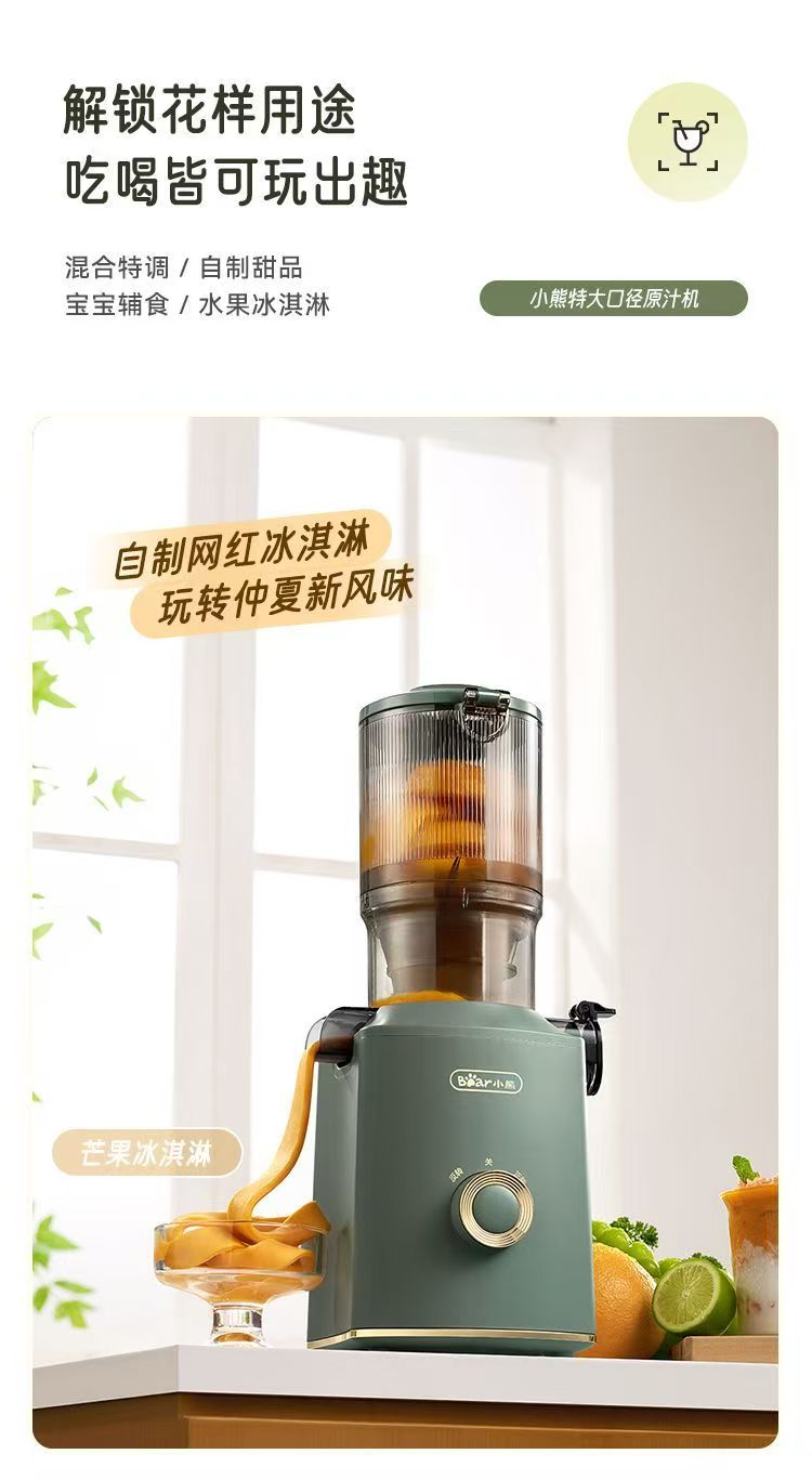 小熊原汁机电动榨汁机汁渣分离家用全自动超大口径榨果汁机果蔬机