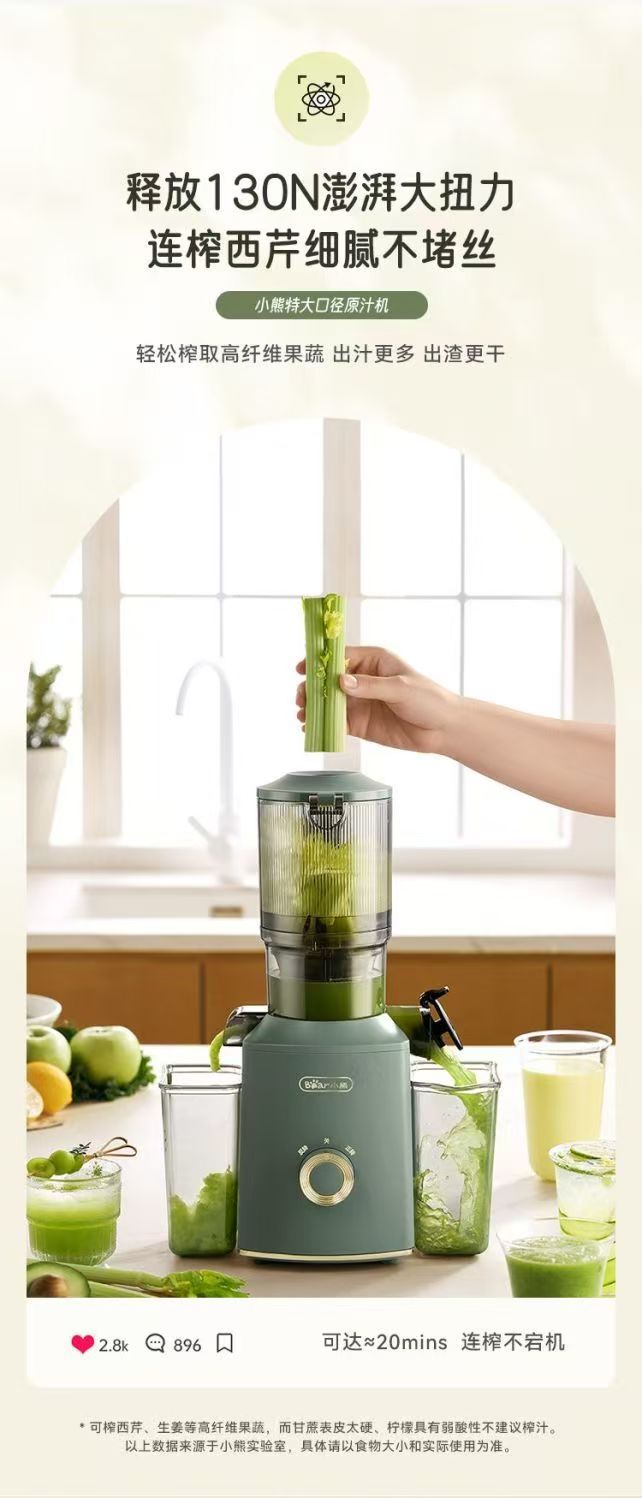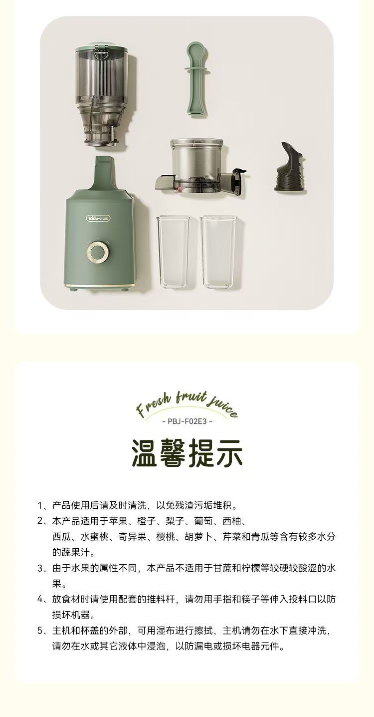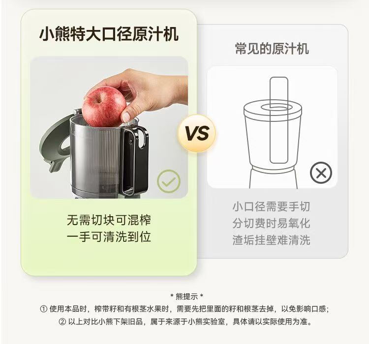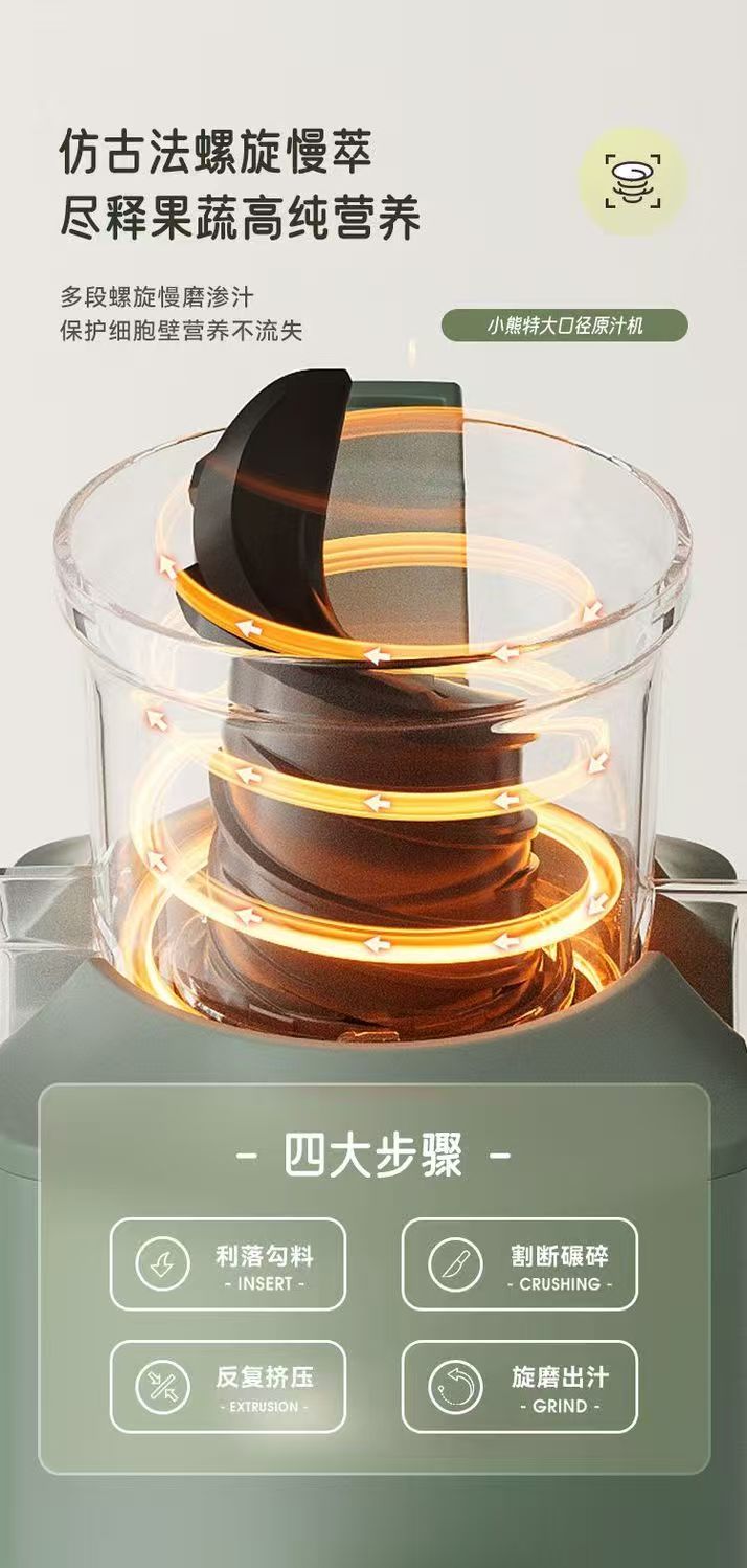 小熊原汁机电动榨汁机汁渣分离家用全自动超大口径榨果汁机果蔬机