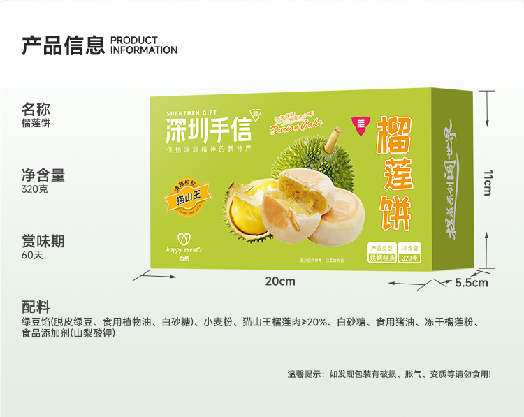 深圳手信 心的猫山王榴莲饼