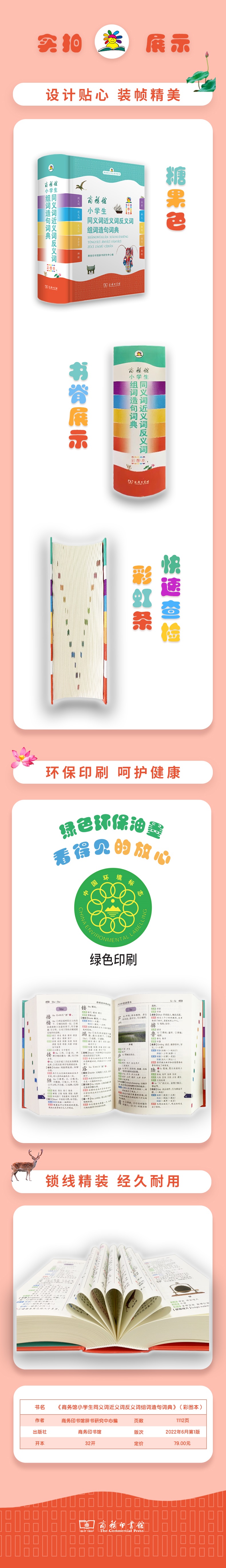 《商务馆小学生同义词近义词反义词组词造句词典》特点: