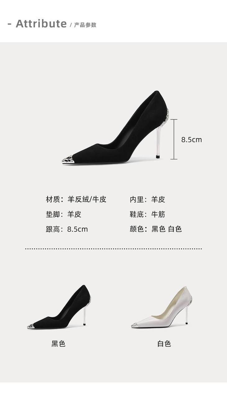 【货号】:SR236【面料】:头层牛皮/羊反绒【内里】:羊皮【垫脚】:羊皮【颜色】: 黑色羊反皮、米白头层牛皮【跟高】:8.5cm【尺码】:34-39
