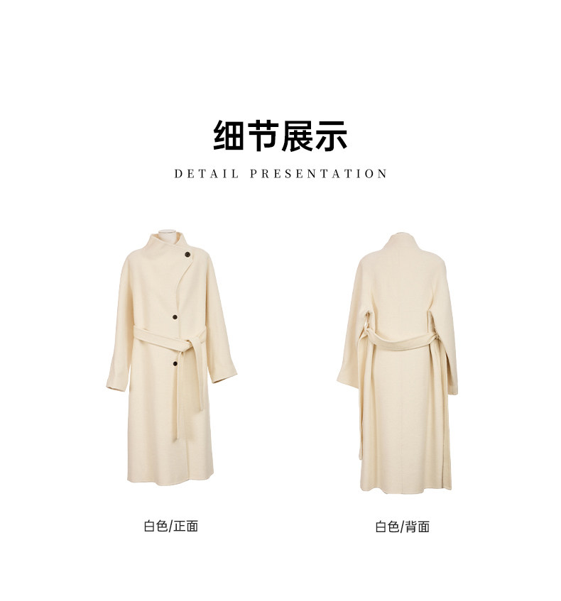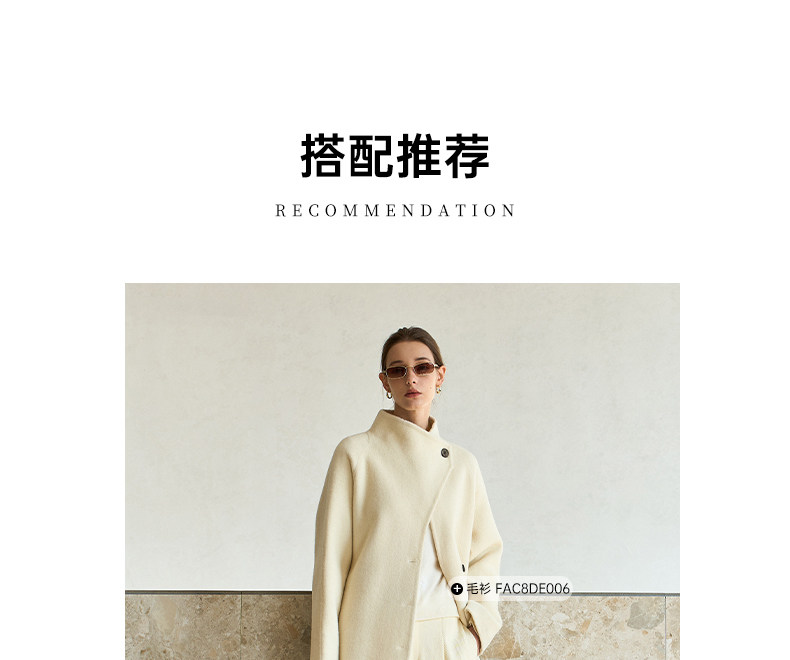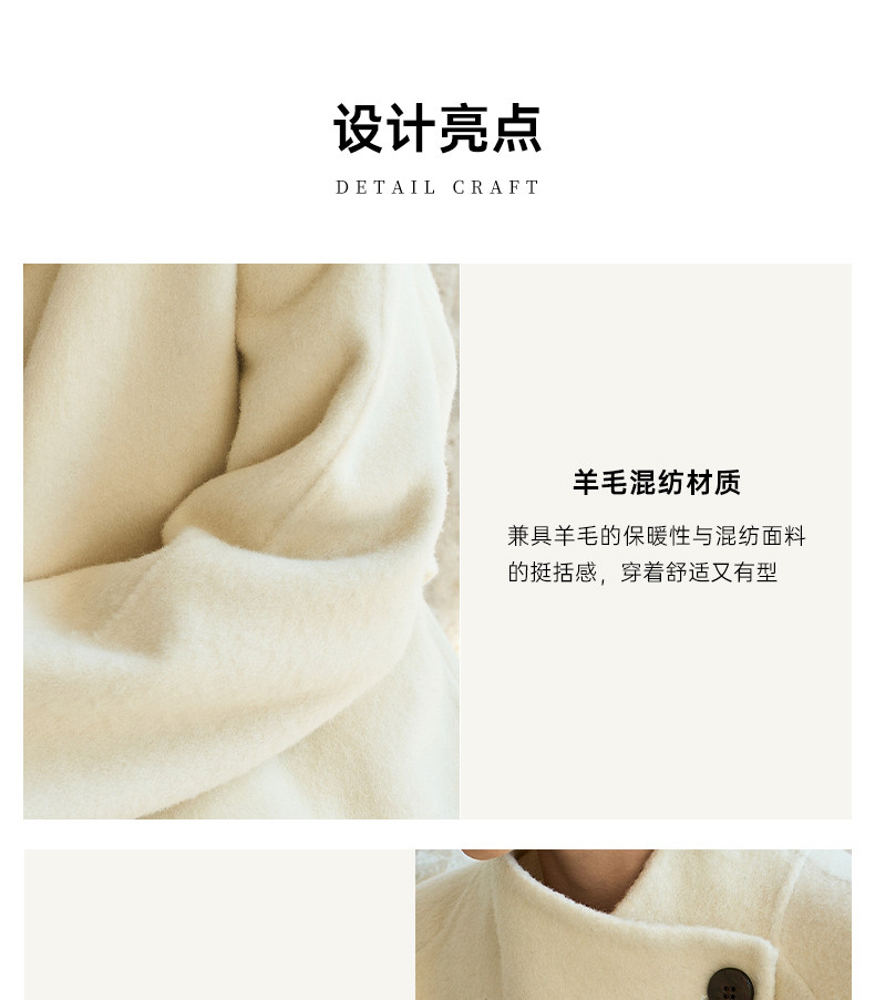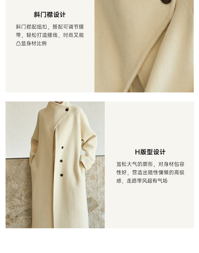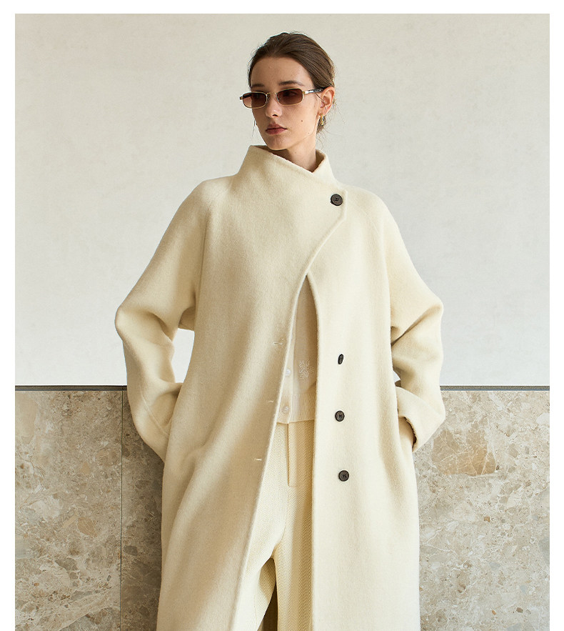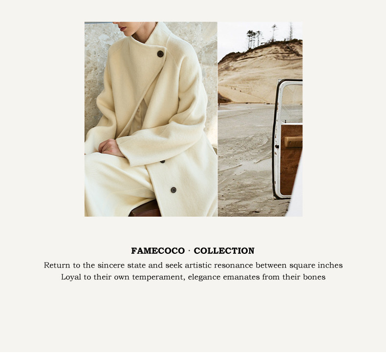 Famecoco范可儿高级大气立领双面尼大衣长款轻盈柔软羊毛外套FAD8AQ115
