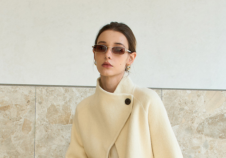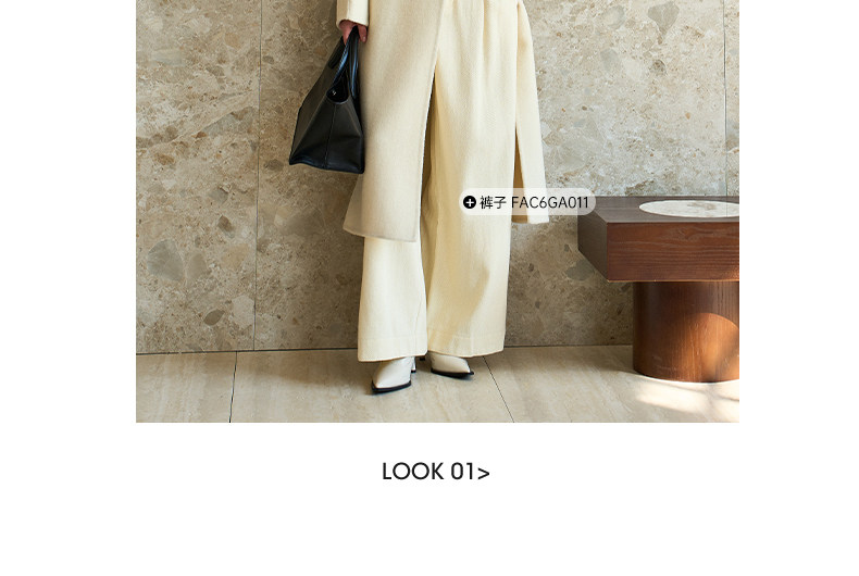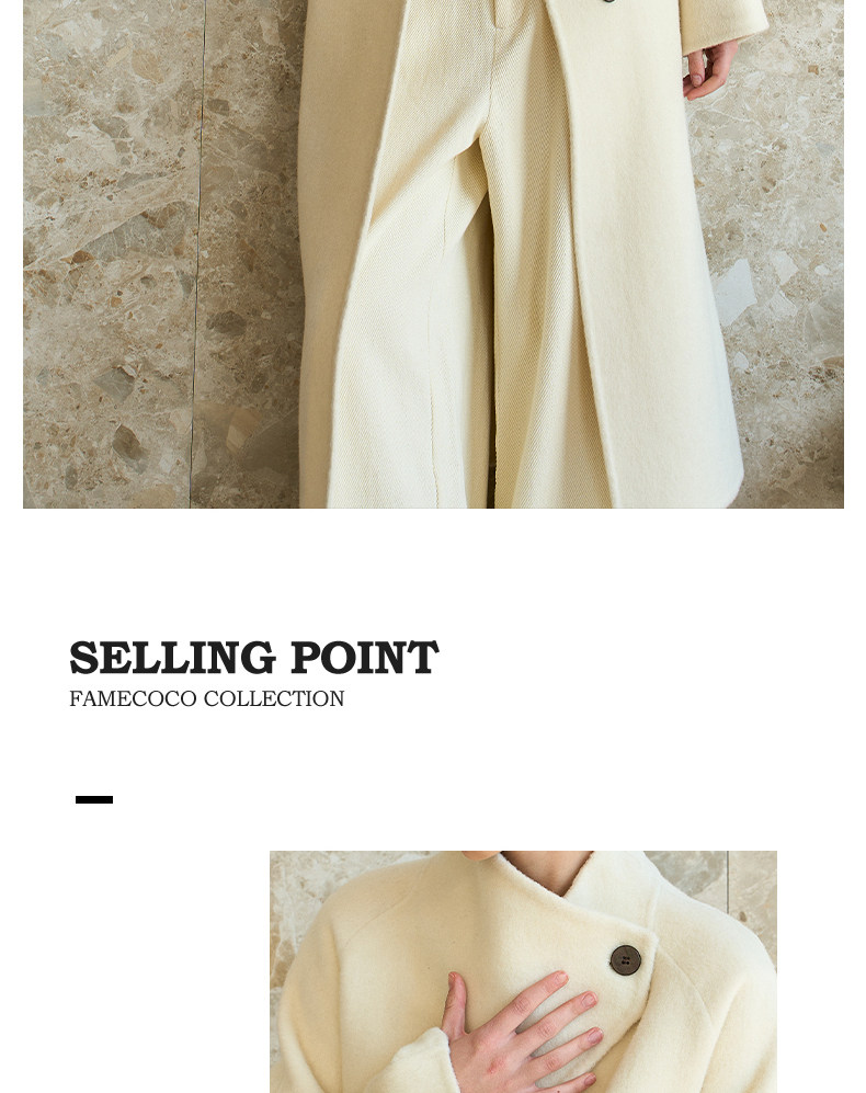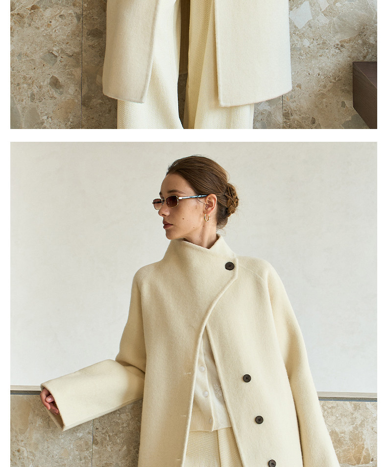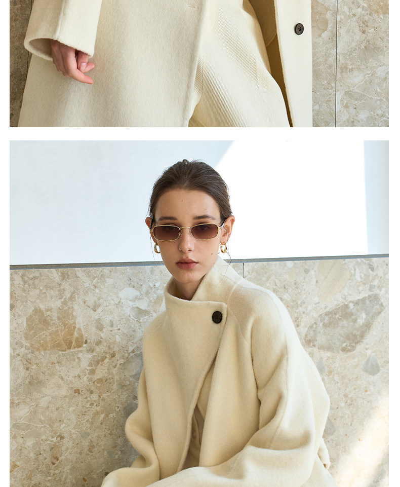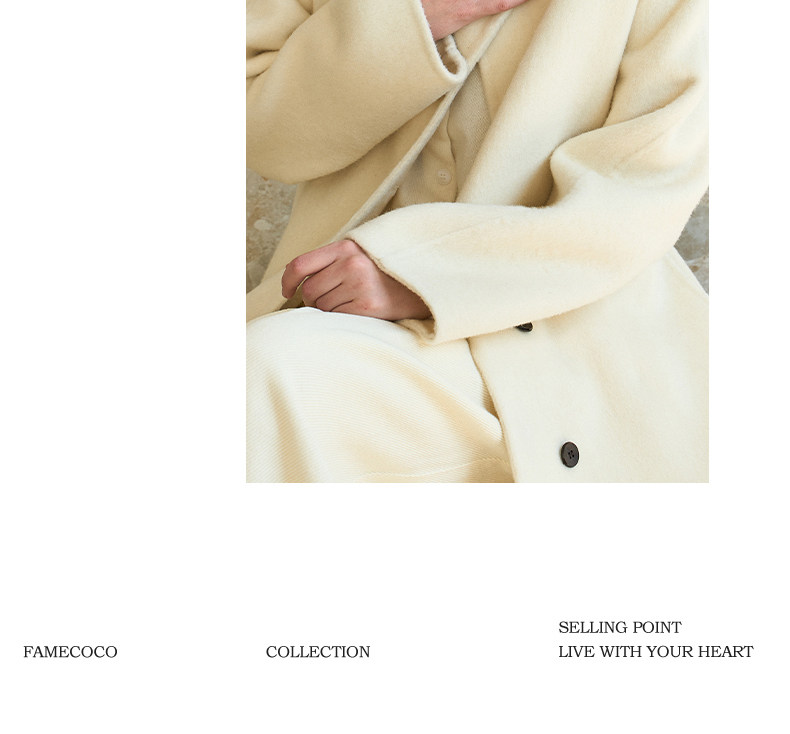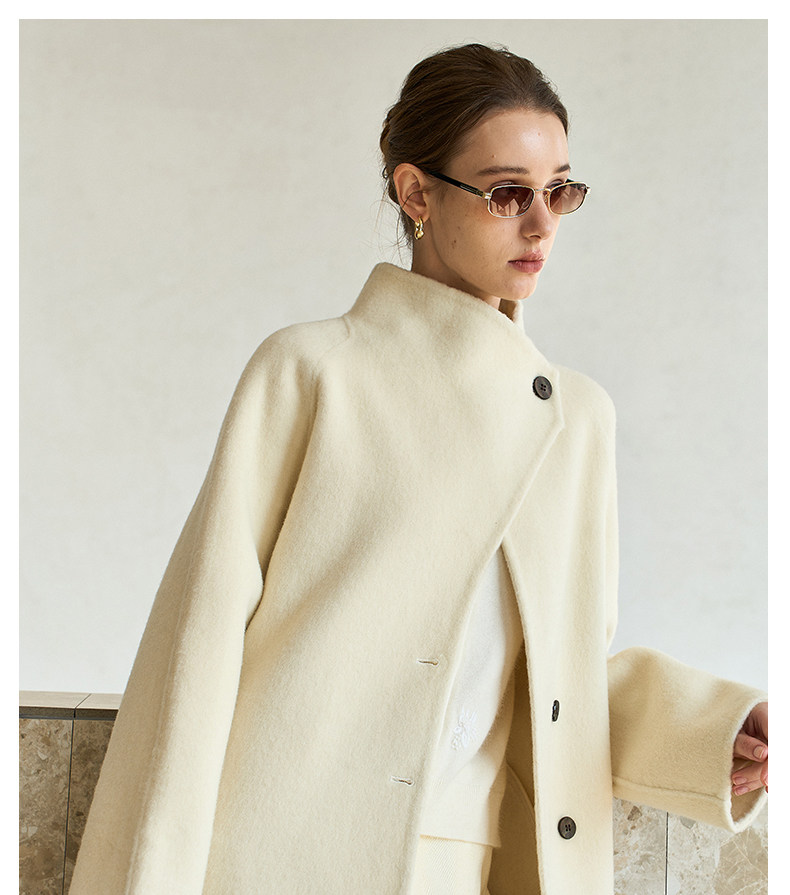 Famecoco范可儿高级大气立领双面尼大衣长款轻盈柔软羊毛外套FAD8AQ115