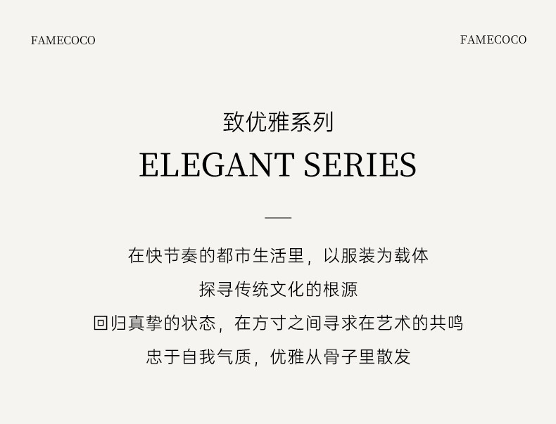- Famecoco作为中国本土设计师品牌之一的她,创建于美丽的时尚花都广州,自2013年创立以来,一直致力于打造优雅、知性、文艺的穿着理念。