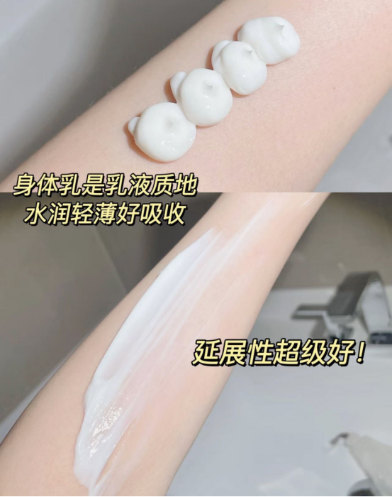肤感简直太搭秋冬嘞 很轻薄的乳液质地 上身像被水润过!好嫩啊! 伪体香也是拿手好戏 涂完一手的桃子香🍑 香香软软的被窝都是甜甜的~ 每寸皮肤都好亮啊!!