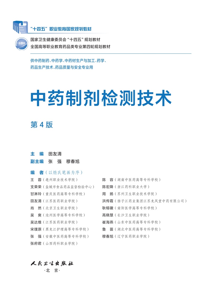 中药制剂检测技术 第4四版 十四五规划教材全国高等职业教育药品类专业第四轮规划教材 田友清 供中药制药等专业用 人民卫生出版社