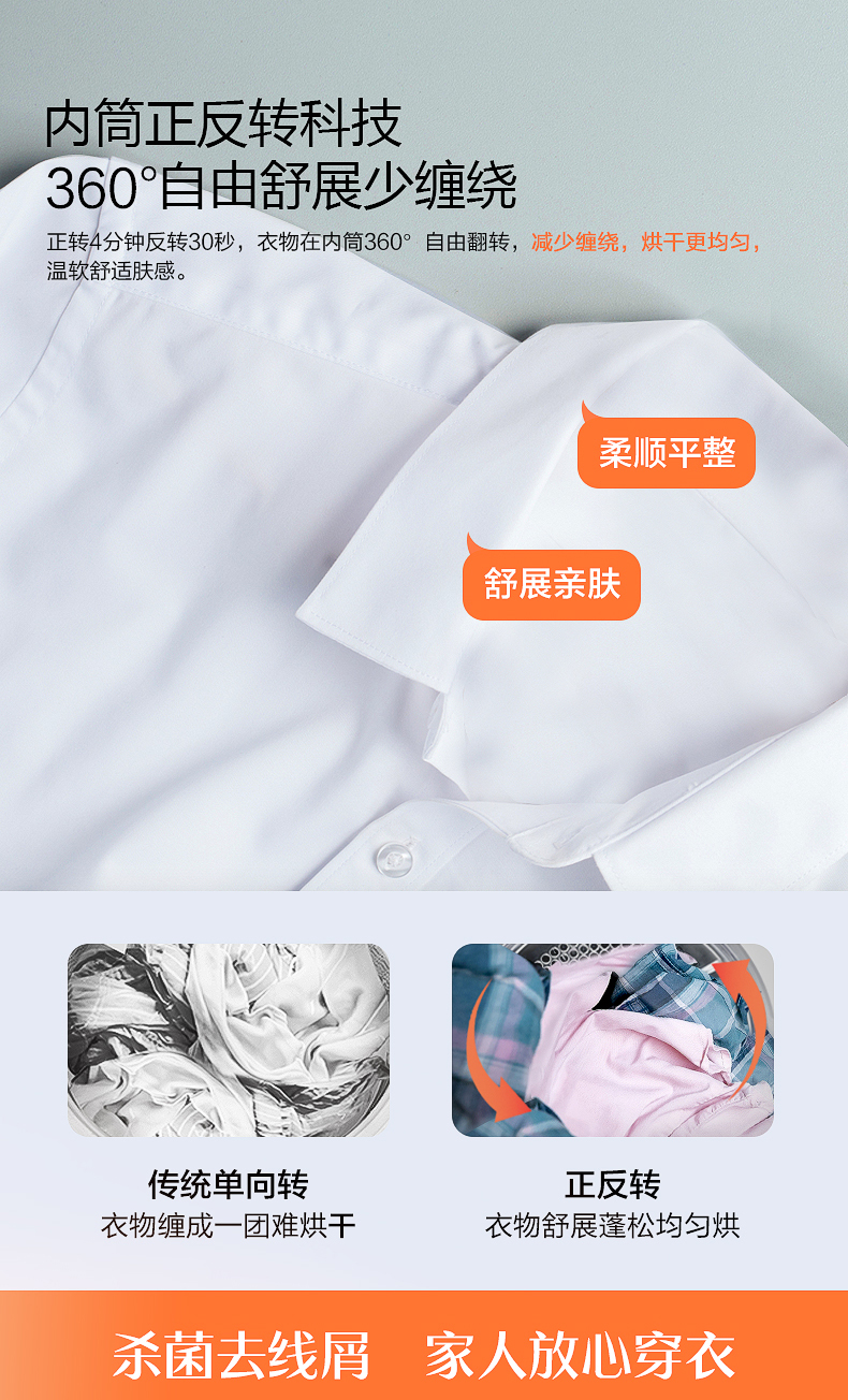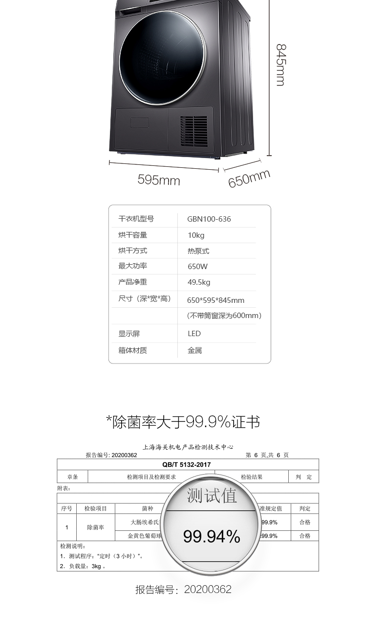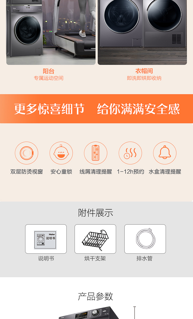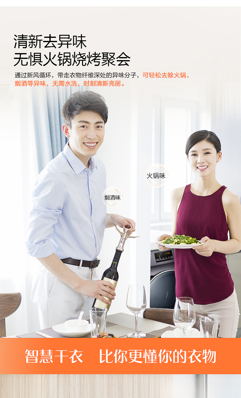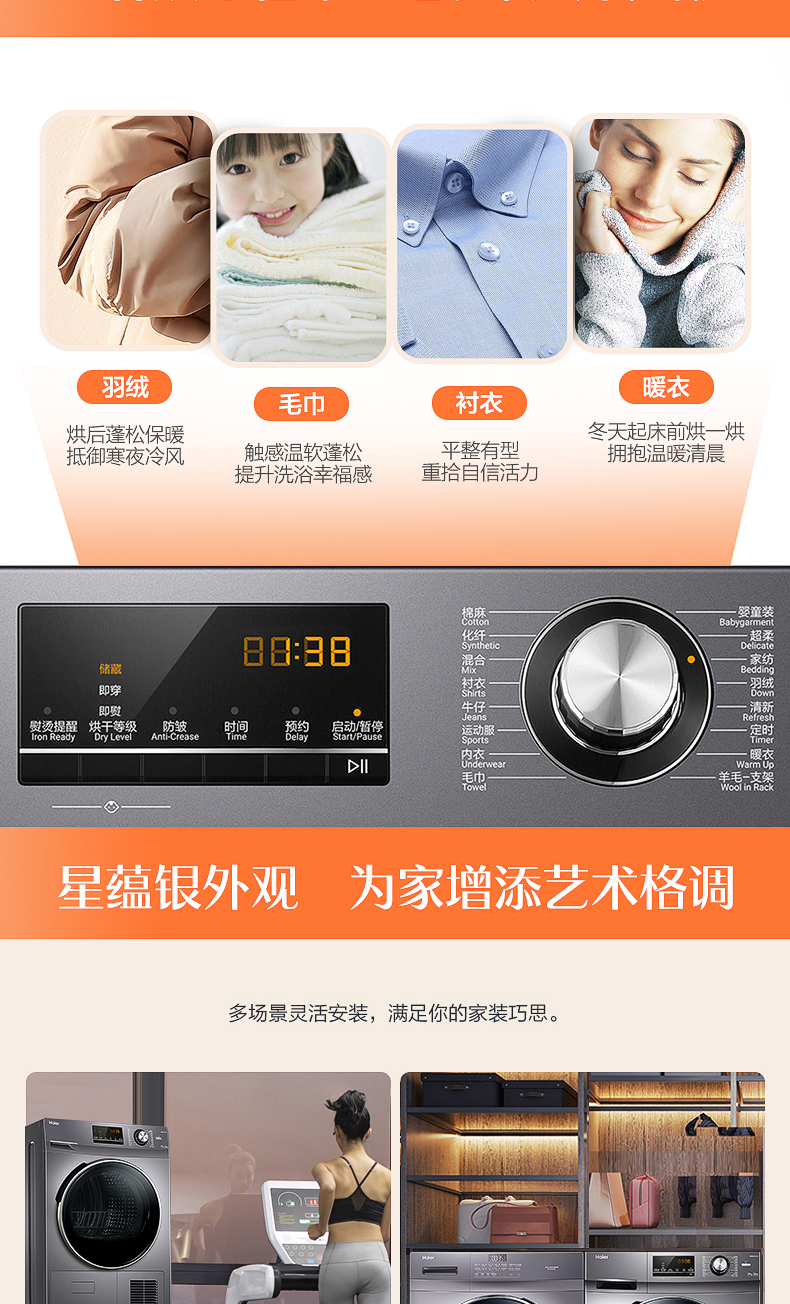 海尔热泵式烘干机 10KG大容量 家用干衣机热泵衣物护理机 除菌 节能 衣干即停 GBN100-636