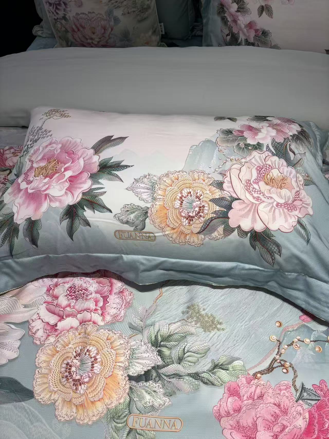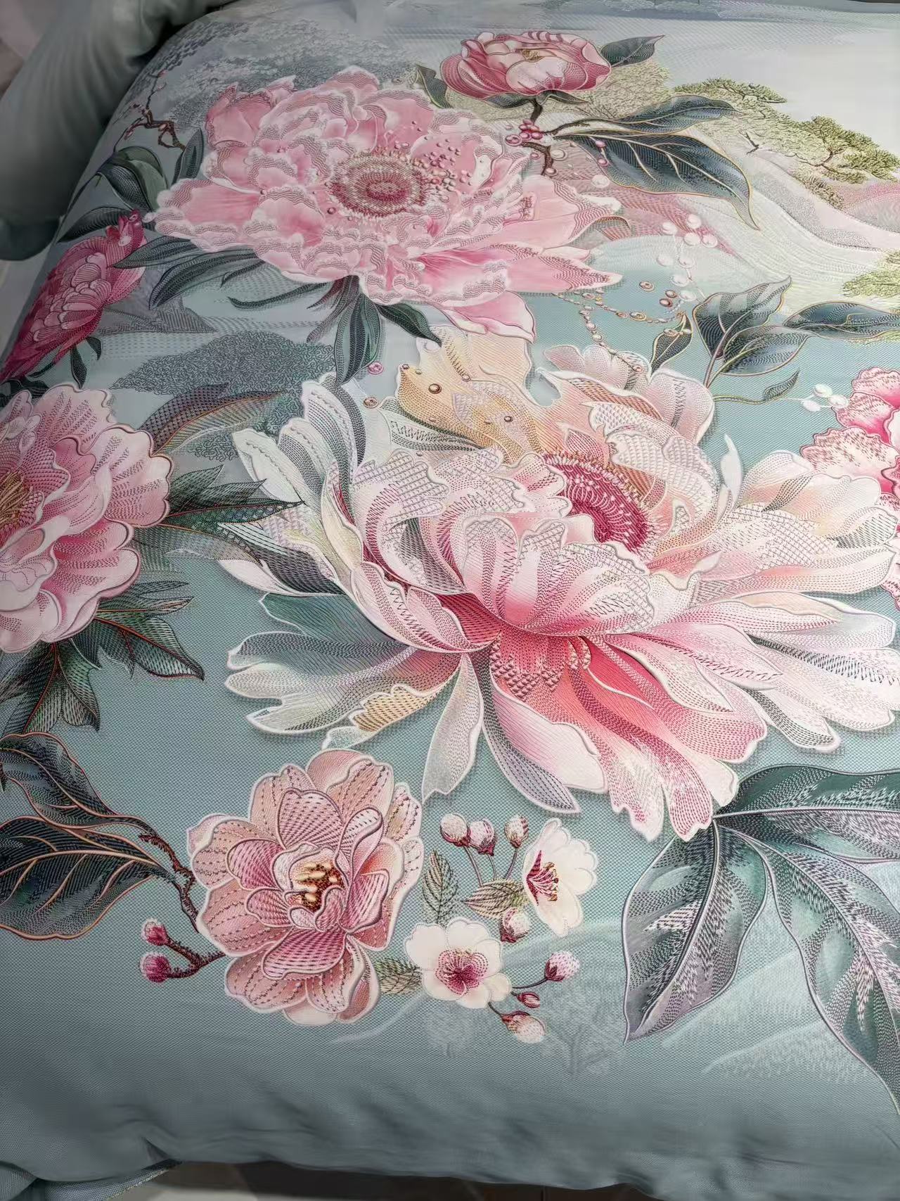 【富安娜】B座7F国绣独幅床单四件国色系列·国色天香