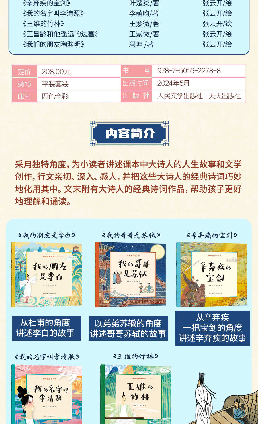 【陈小舒】课本里的诗人们全7册我的朋友是李白写给孩子的历史人物故事绘本
