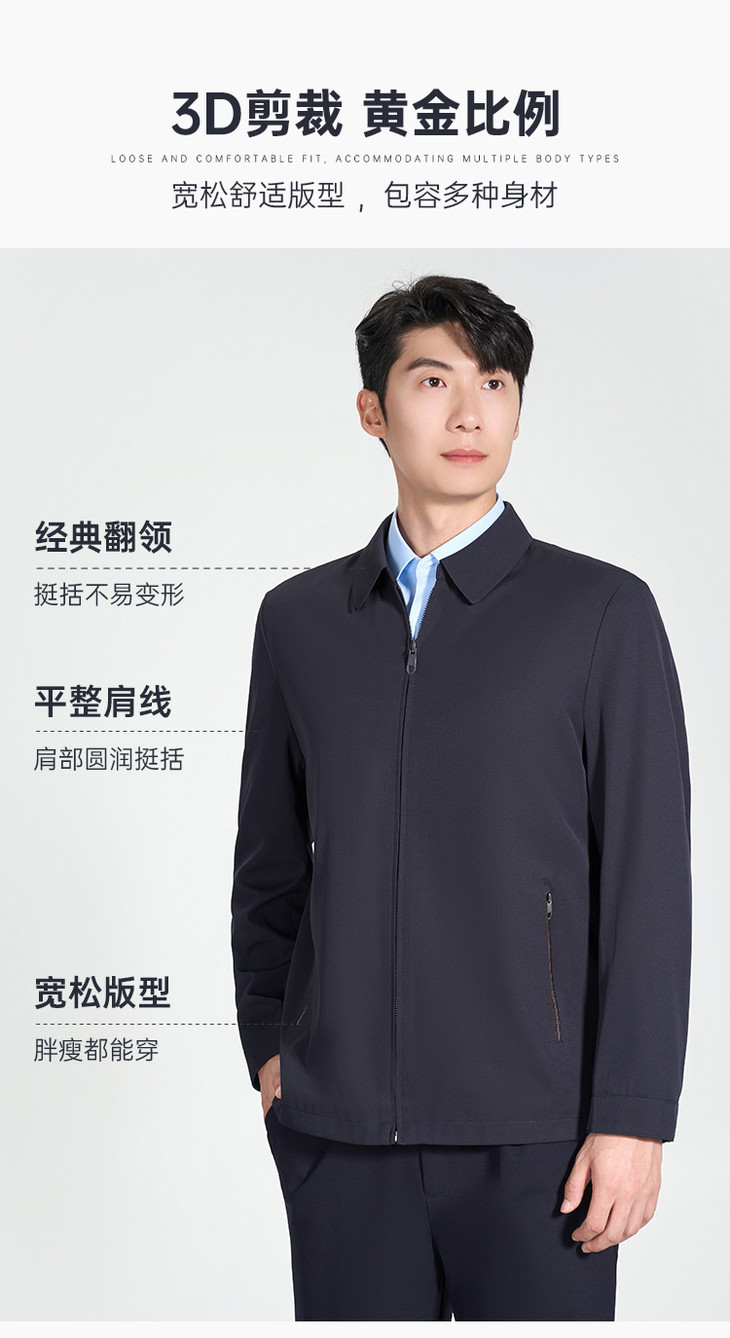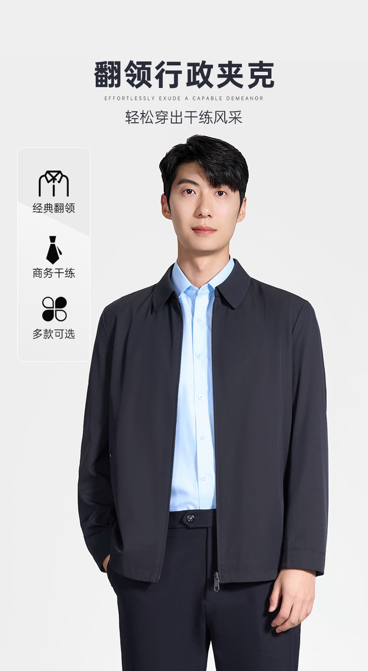 【翻领行政夹克】商务通勤翻领夹克 透气弹力休闲上衣外套J301