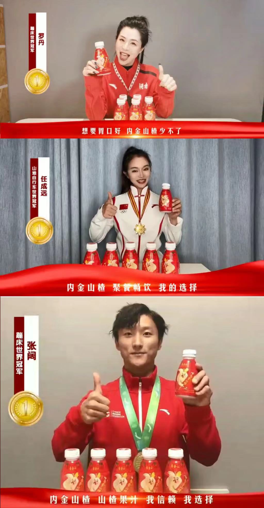 2.3大世界冠军任成远,罗丹,张阔形象代言,get冠军同款推荐山楂汁,实力产品有保障。