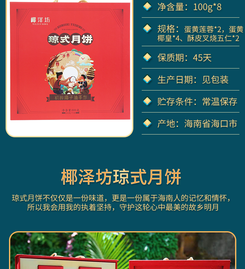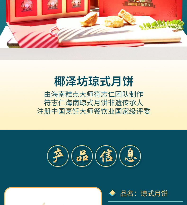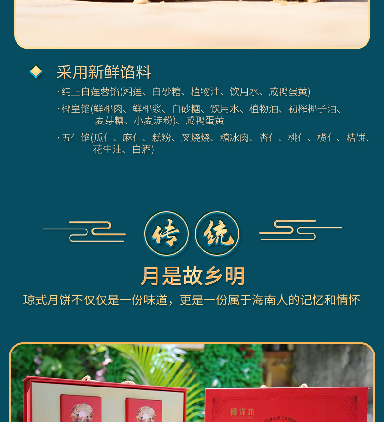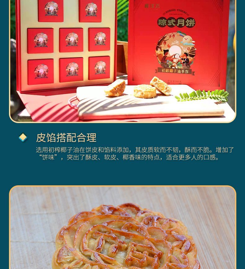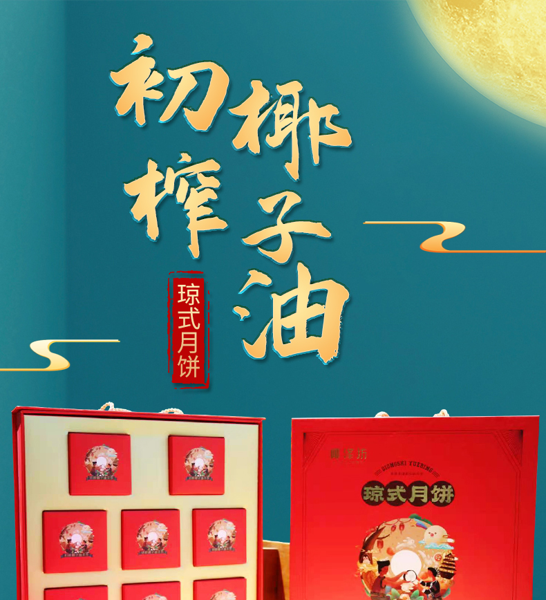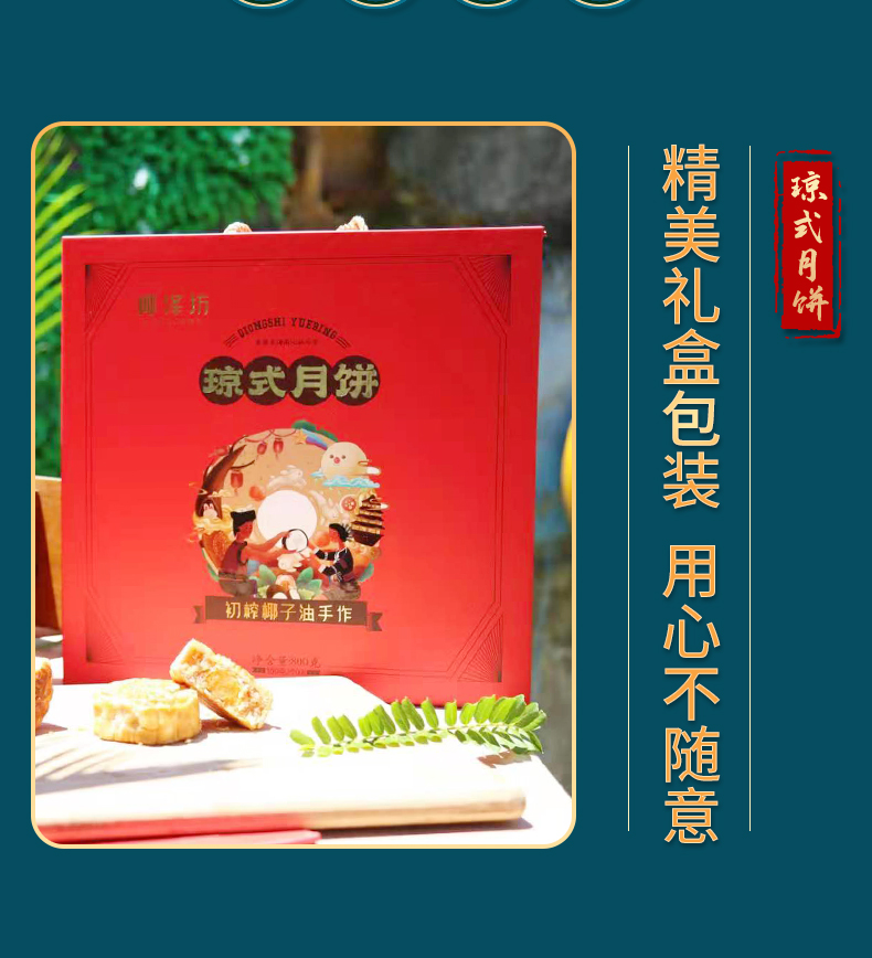 椰泽坊初榨椰子油琼式月饼传统手工艺儿时的味道经典礼盒包装