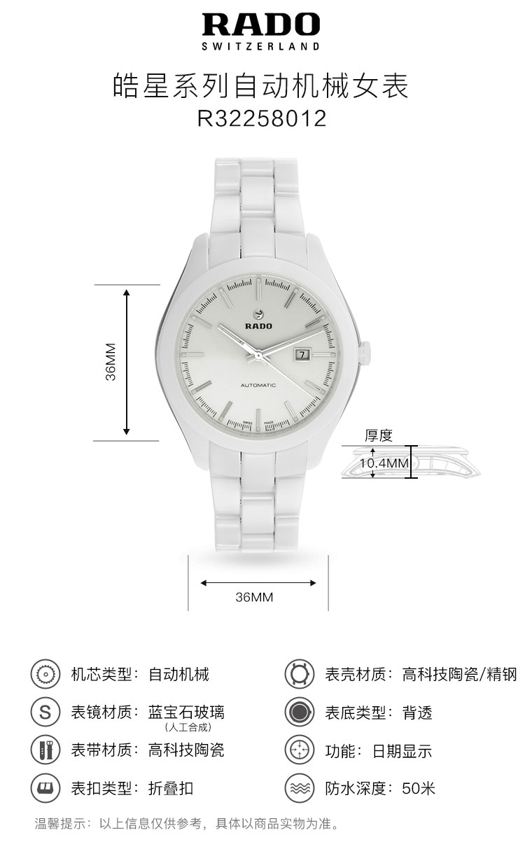 雷达 RADO HYPERCHROME 皓星系列 R32258012 女士自动机械表