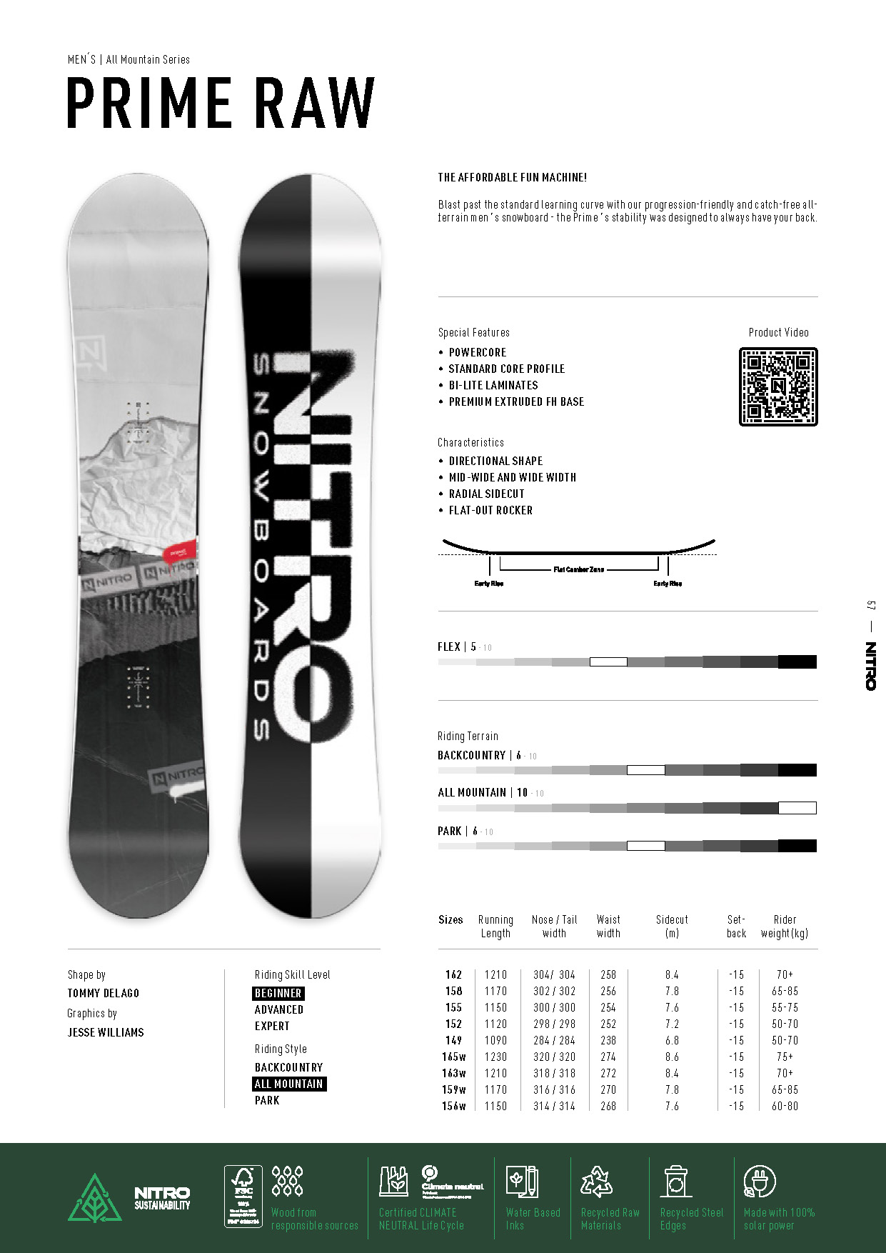 Nitro 23-24 【PRIME RAW】 男款雪板 ALL MOUNTAIN 152 155 158
