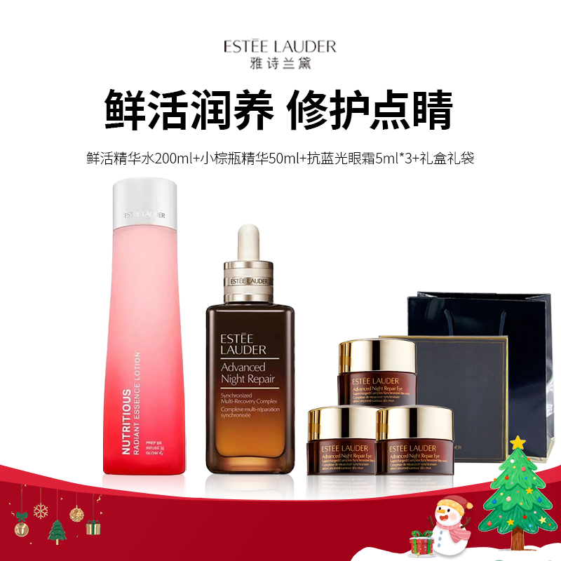 【叮咚~抄底美丽】雅诗兰黛抗老黄金cp 修护抗皱双效合一! 雅诗兰黛雅诗兰黛抗老黄金cp 修护抗皱双效合一! 雅诗兰黛鲜活精华水200ml+小棕瓶精华50ml赠眼霜小样5ml*3,精致礼盒装